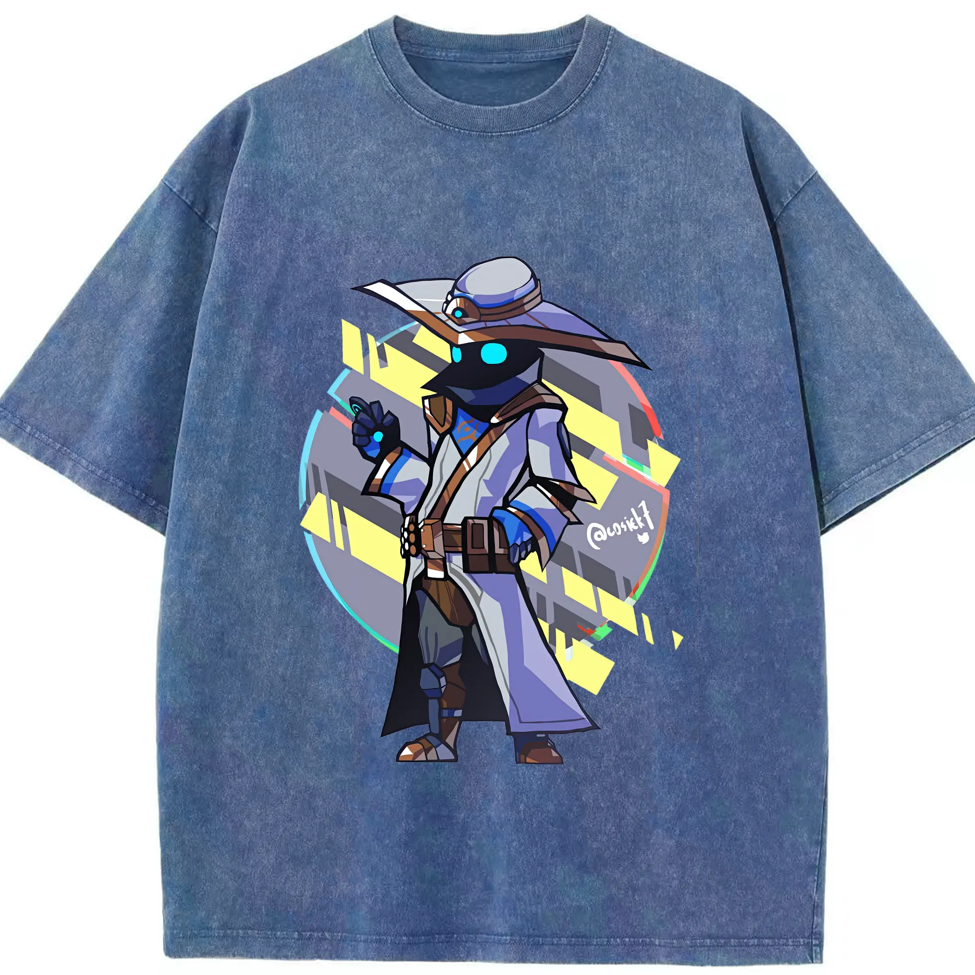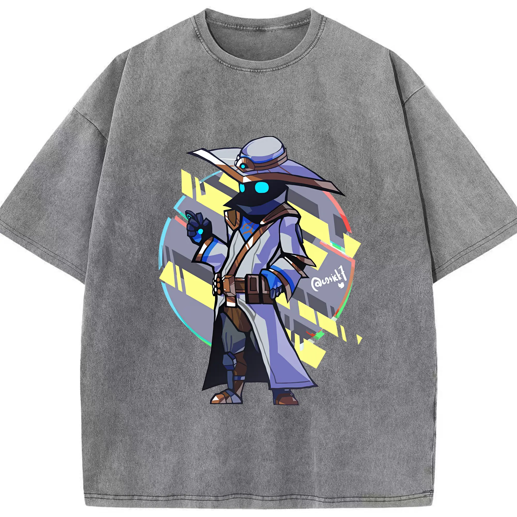 VALORANT グッズ,サイファー - 綿100% ヴィンテージ風 半袖Tシャツ ・ 背面プリント ・ 柔らか肌触り ・ 通気性 快適 ・ スポーツ カジュアル 外出用