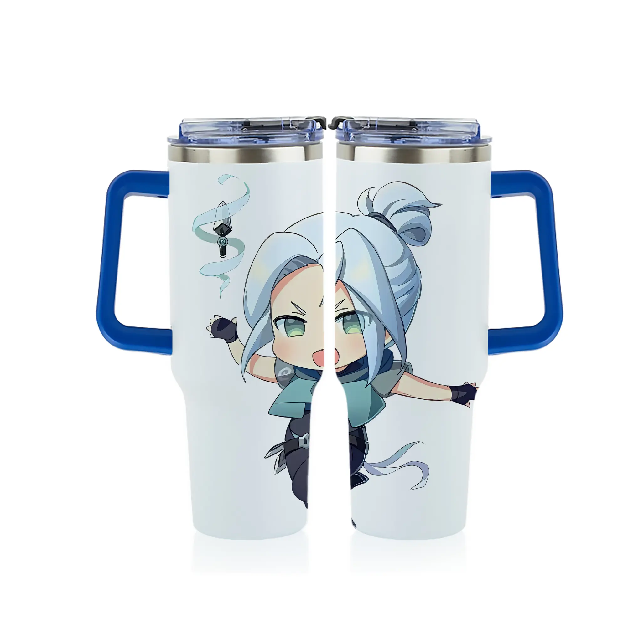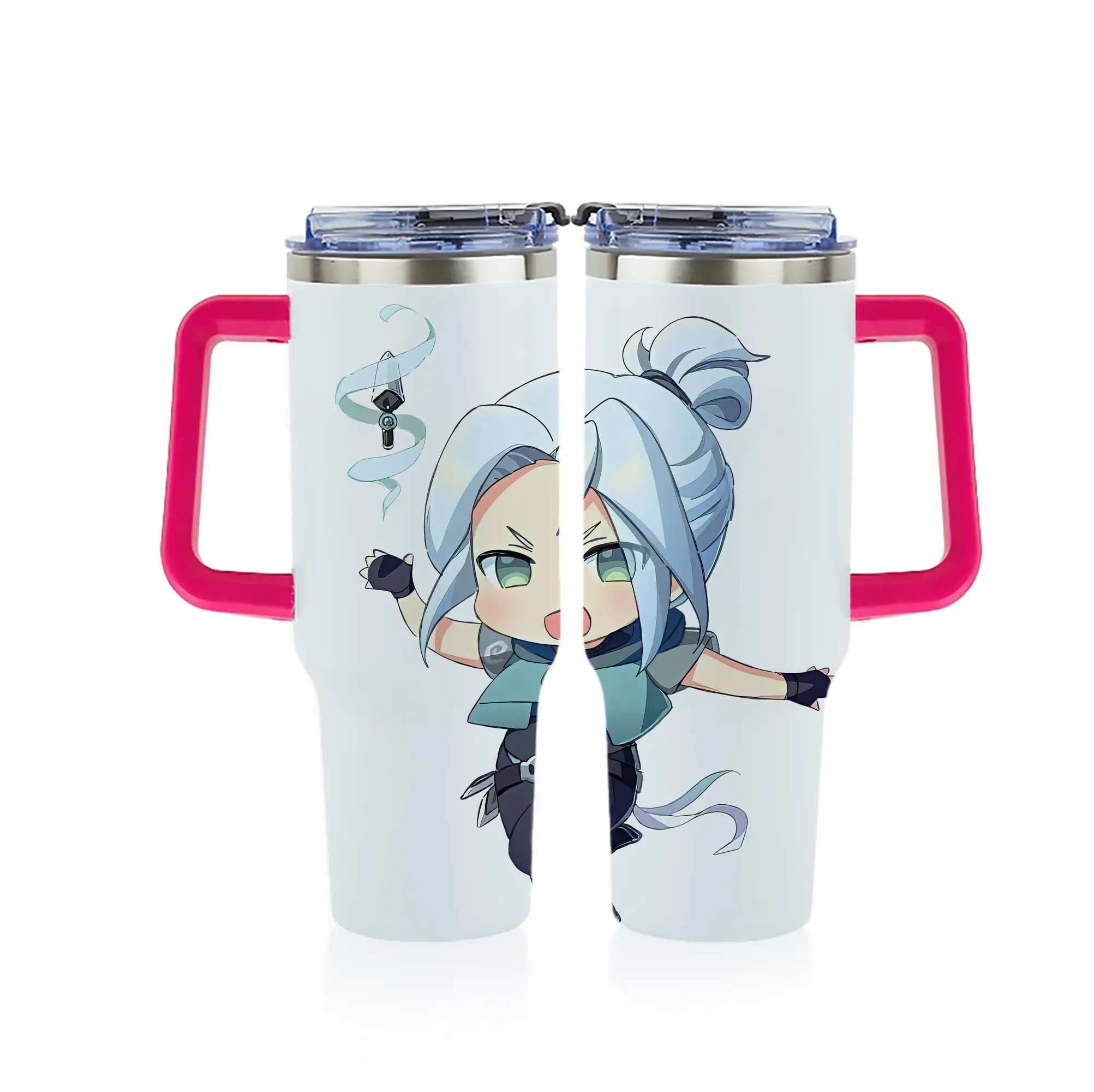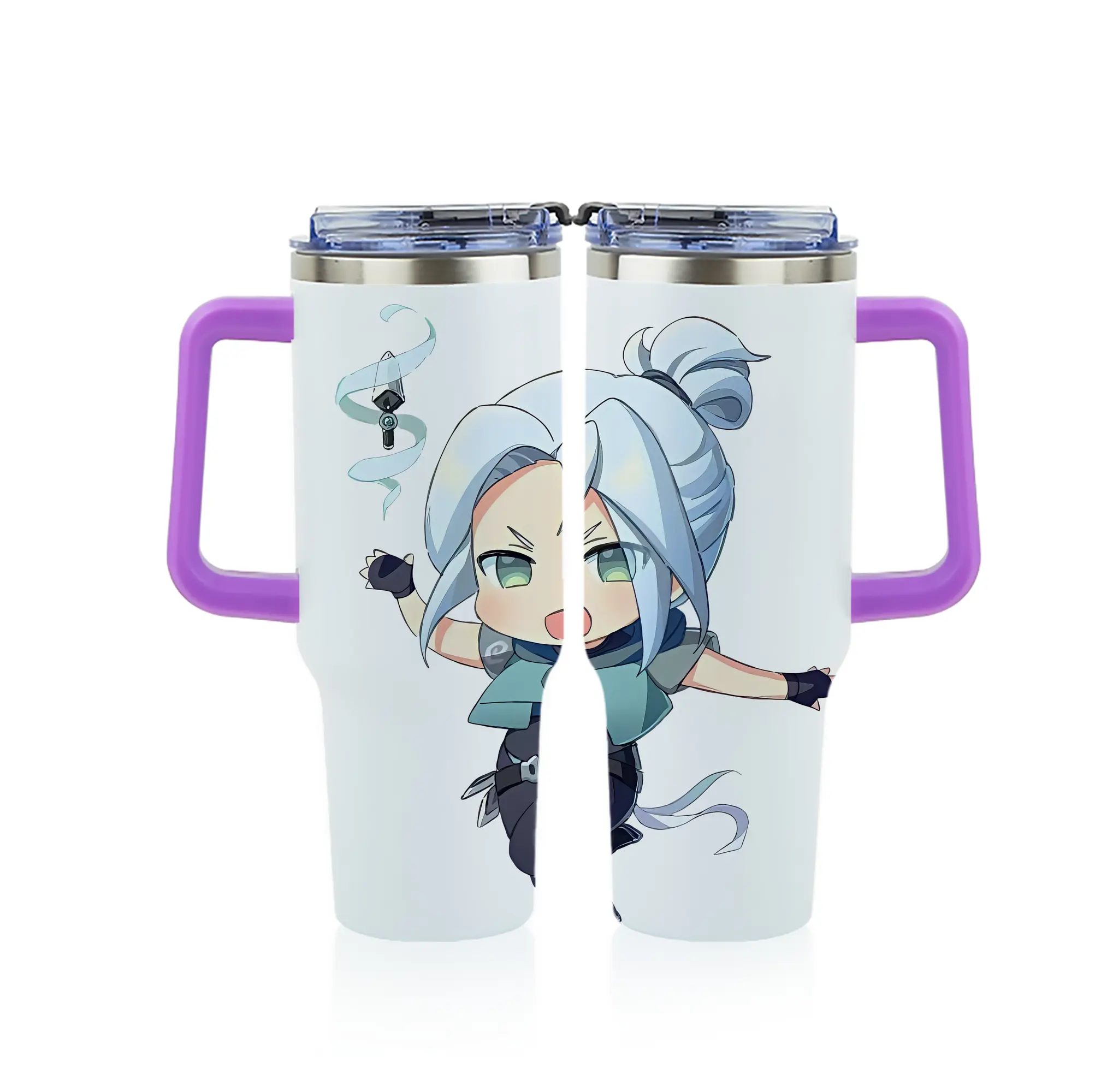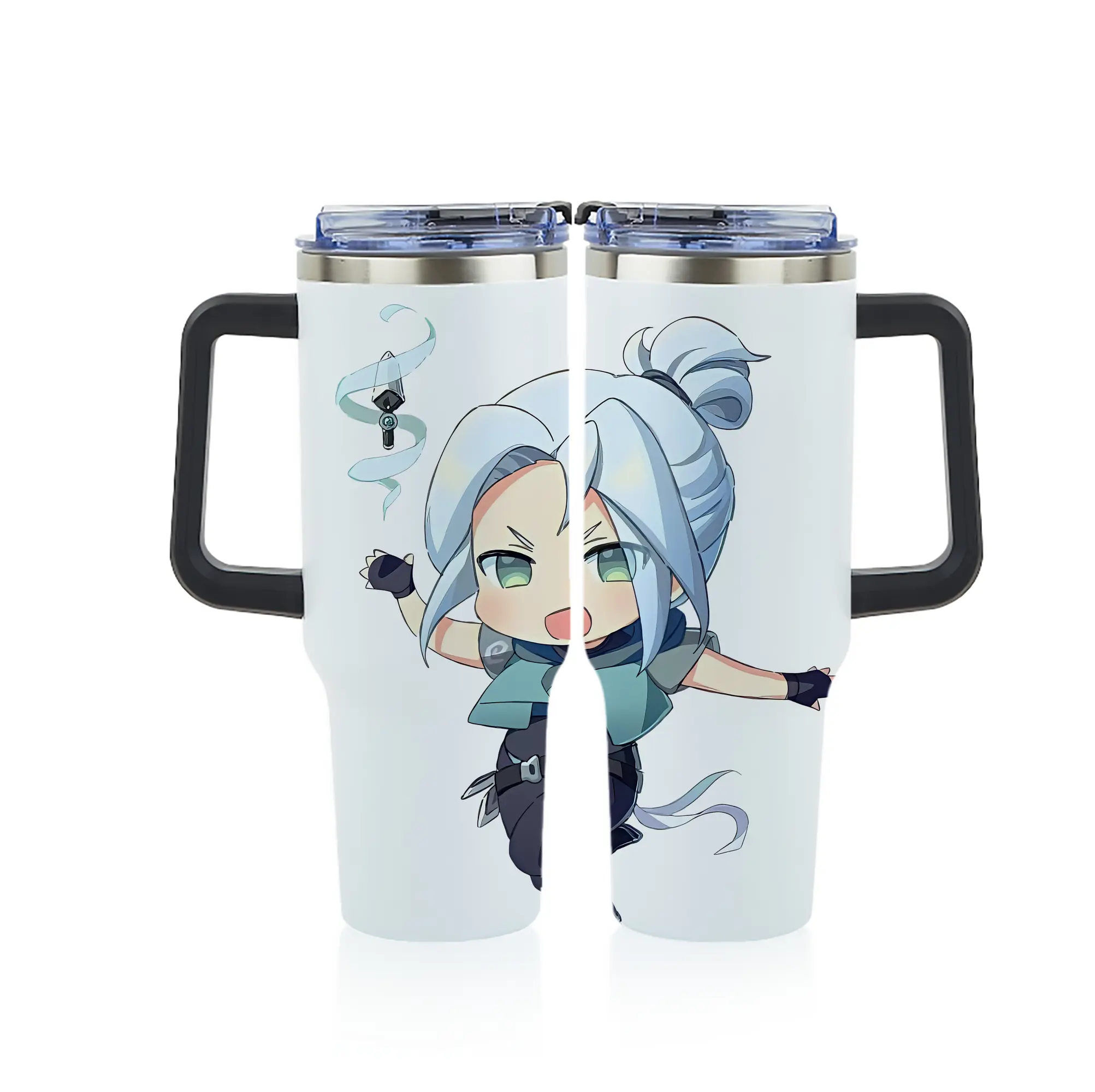 VALORANT グッズ,ジェット - 1200mL フルプリント車用タンブラー ・ 304ステンレス 内側 ・ 201ステンレス 外側 ・ 保温 保冷 ・ 通勤 ドライブ アウトドア用