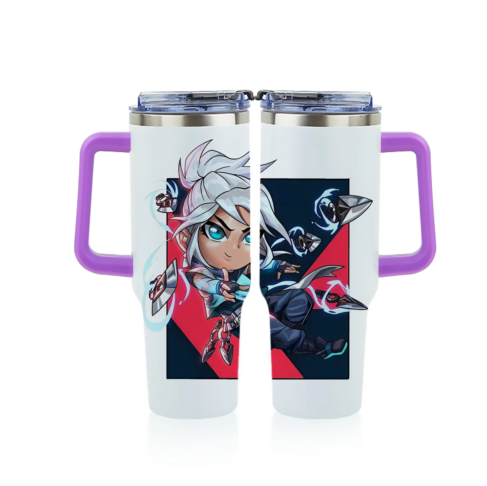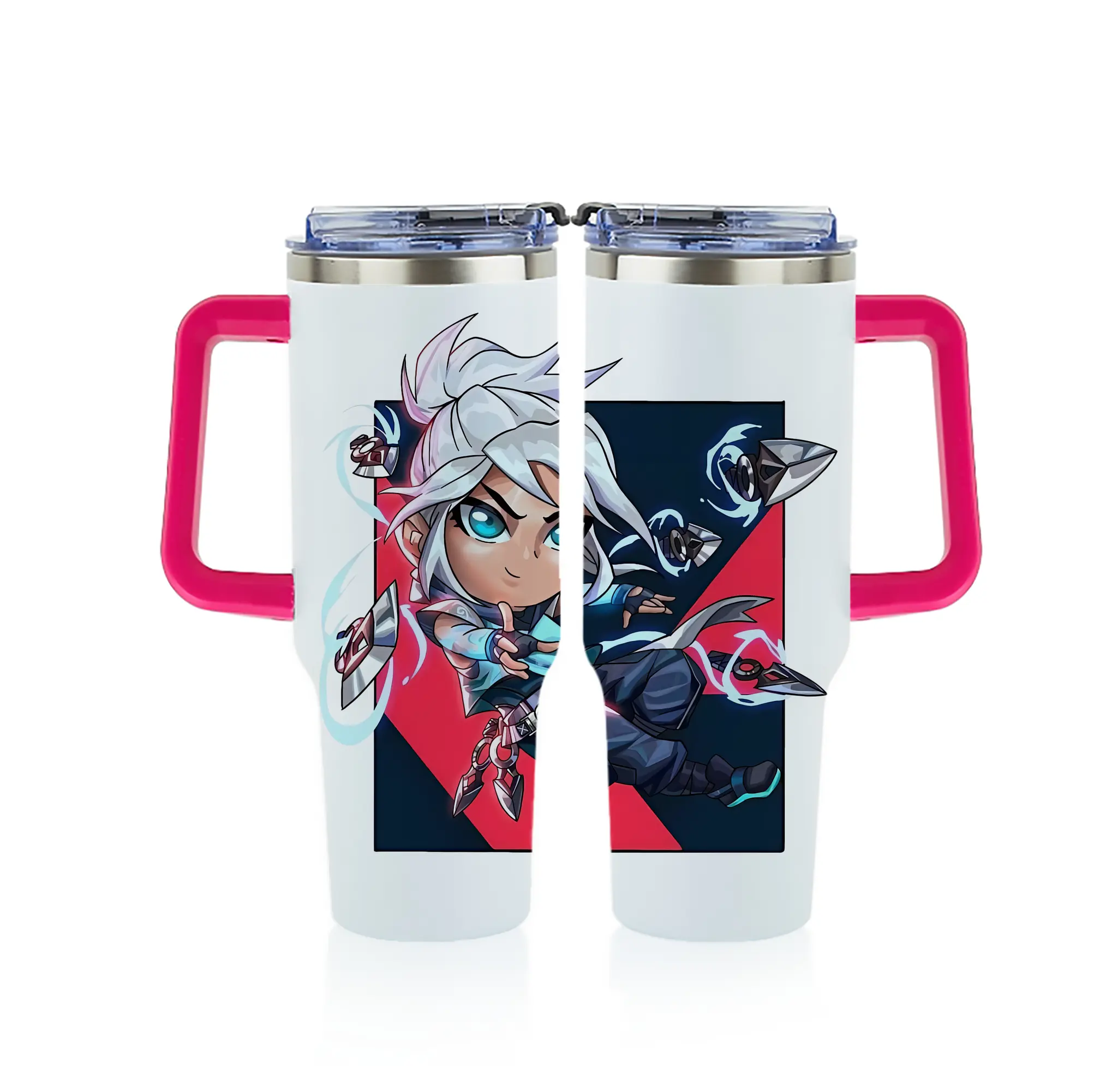 VALORANT グッズ,ジェット - 1200mL フルプリント車用タンブラー ・ 304ステンレス 内側 ・ 201ステンレス 外側 ・ 保温 保冷 ・ 通勤 ドライブ アウトドア用