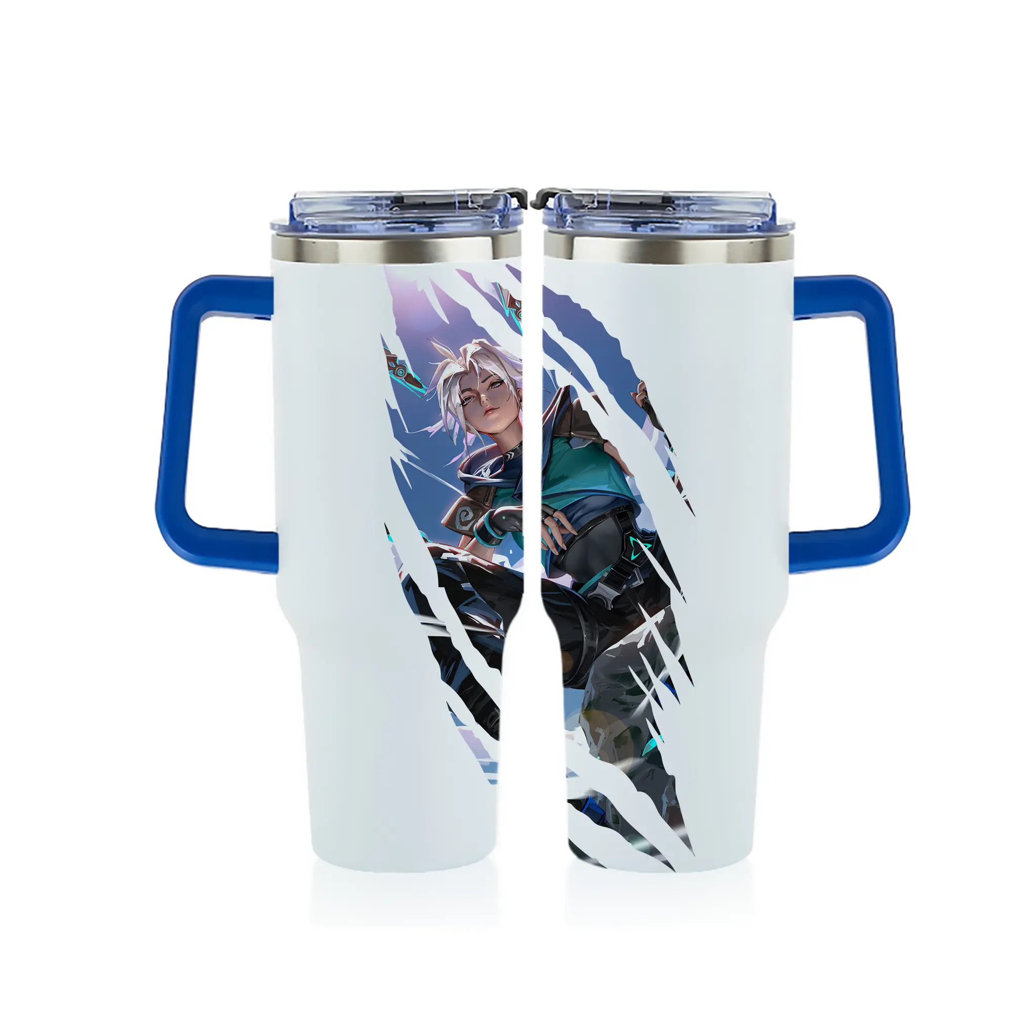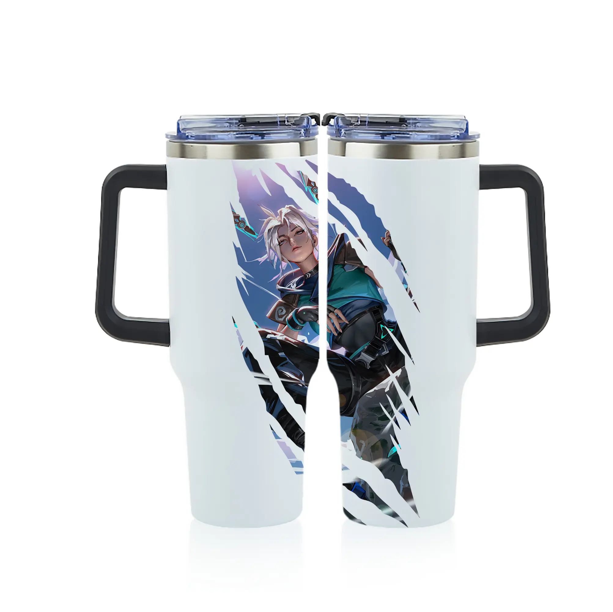 VALORANT グッズ,ジェット - 1200mL フルプリント車用タンブラー ・ 304ステンレス 内側 ・ 201ステンレス 外側 ・ 保温 保冷 ・ 通勤 ドライブ アウトドア用