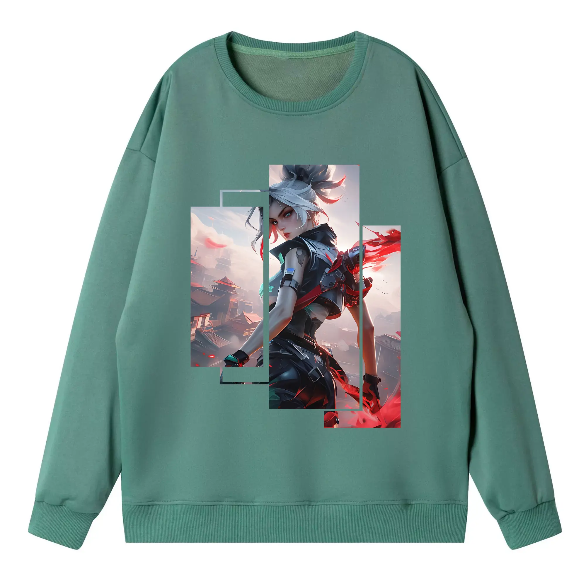 VALORANT グッズ,ジェット - 高品質 クルーネック スウェット ・ コットン59% ポリエステル41% ・ ユニセックス 長袖 トレーナー ・ カジュアル デイリー スポーツ 散歩用