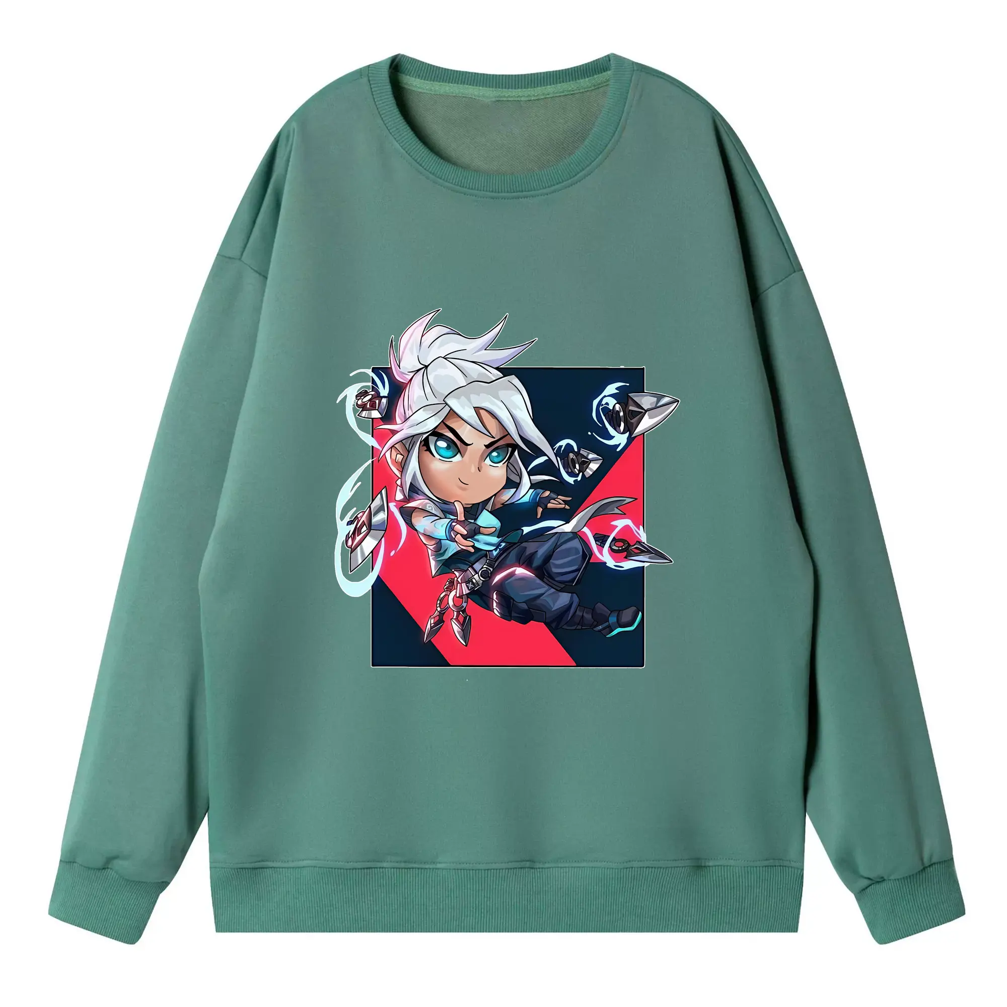 VALORANT グッズ,ジェット - 高品質 クルーネック スウェット ・ コットン59% ポリエステル41% ・ ユニセックス 長袖 トレーナー ・ カジュアル デイリー スポーツ 散歩用