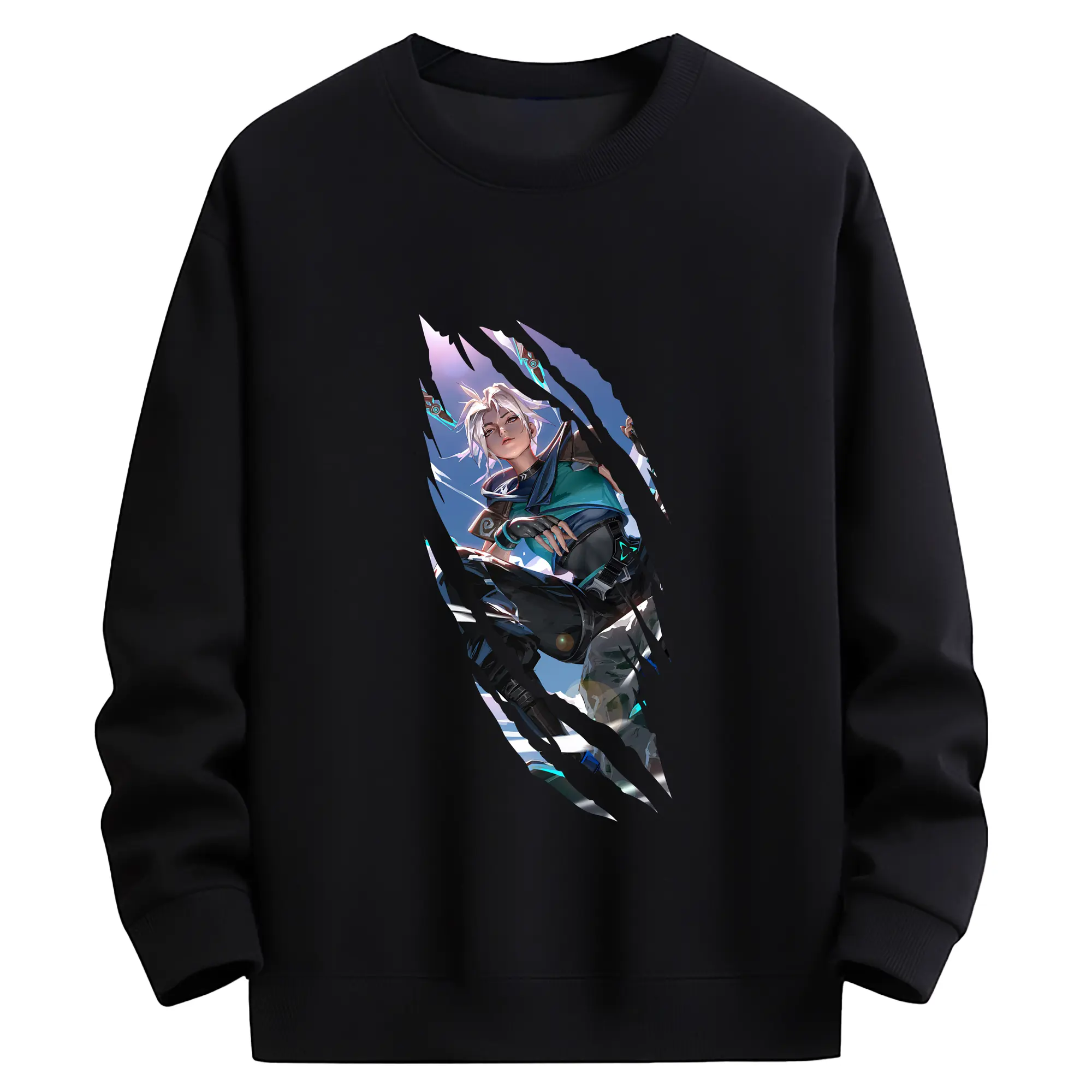 VALORANT グッズ,ジェット - 高品質 クルーネック スウェット ・ コットン59% ポリエステル41% ・ ユニセックス 長袖 トレーナー ・ カジュアル デイリー スポーツ 散歩用