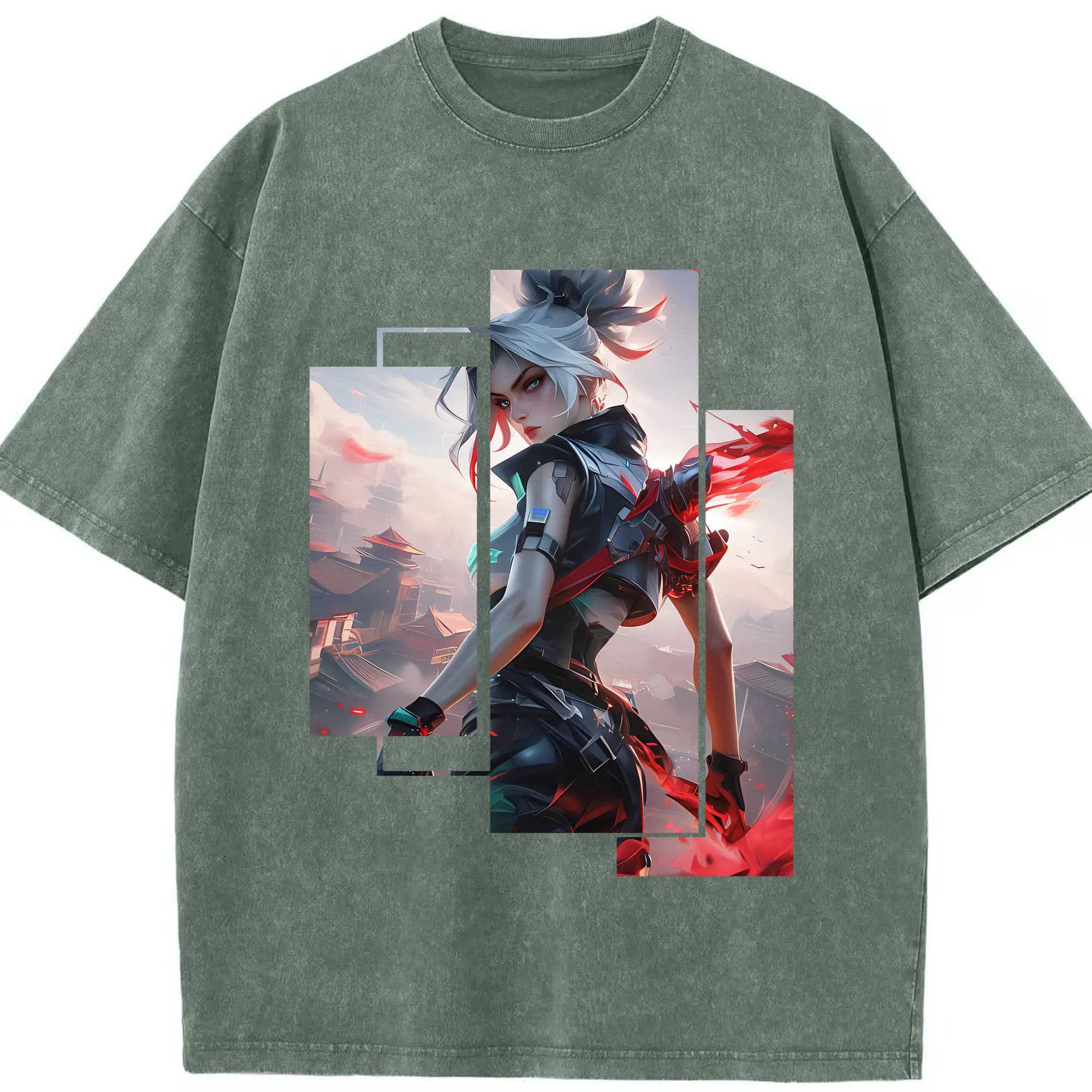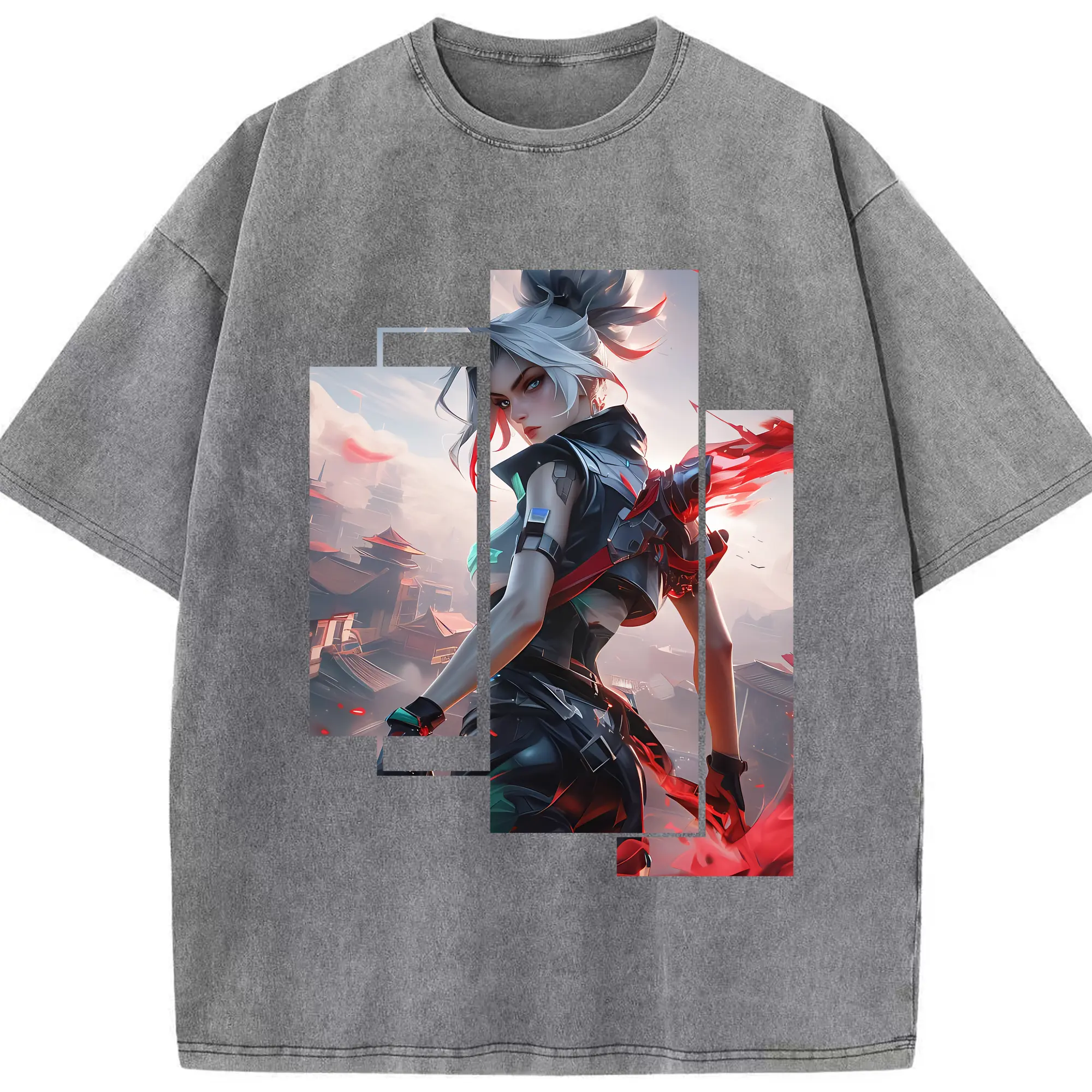 VALORANT グッズ,ヨル - 綿100% ヴィンテージ風 半袖Tシャツ ・ フロントプリント ・ 柔らか肌触り ・ 通気性 快適 ・ スポーツ カジュアル 外出用