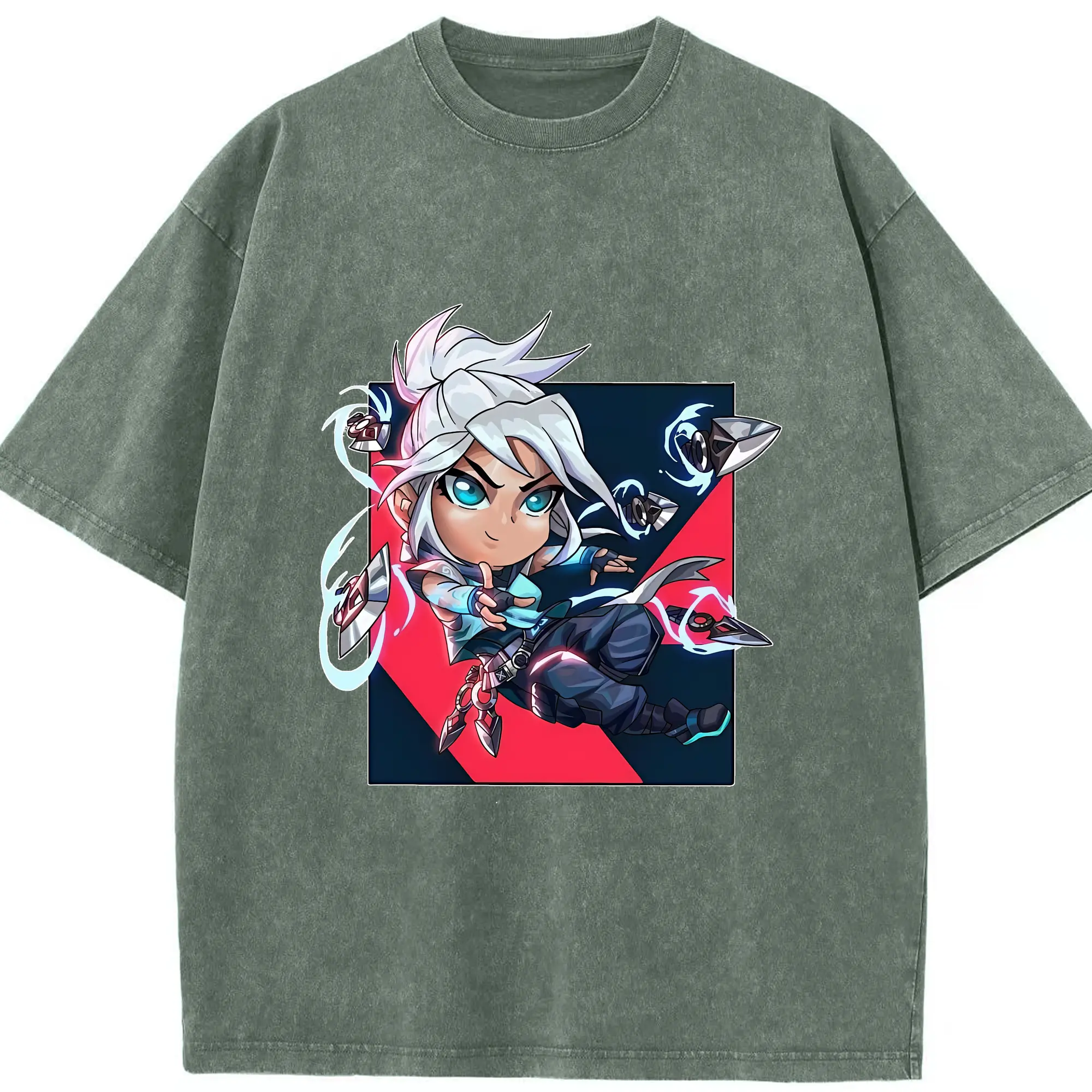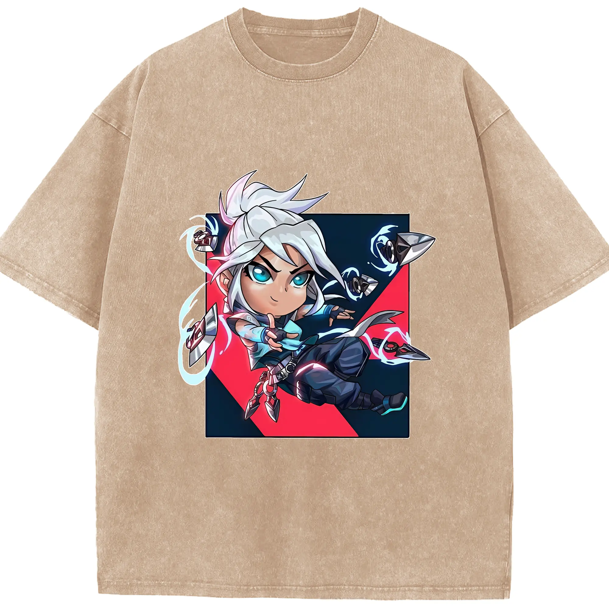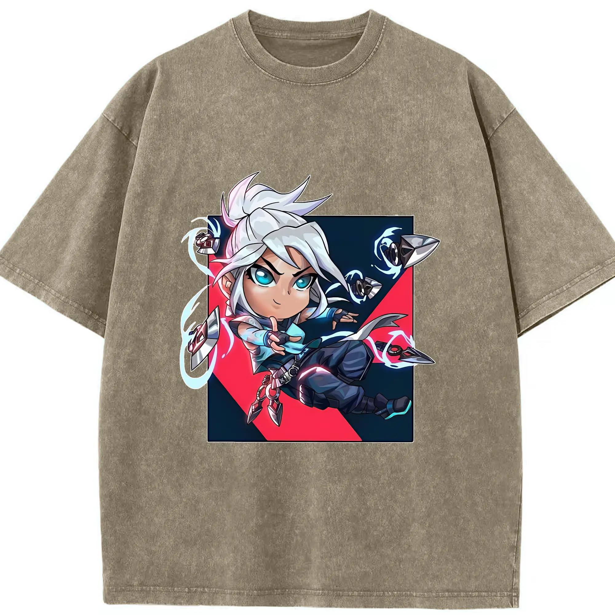 VALORANT グッズ,ジェット - 綿100% ヴィンテージ風 半袖Tシャツ ・ 背面プリント ・ 柔らか肌触り ・ 通気性 快適 ・ スポーツ カジュアル 外出用