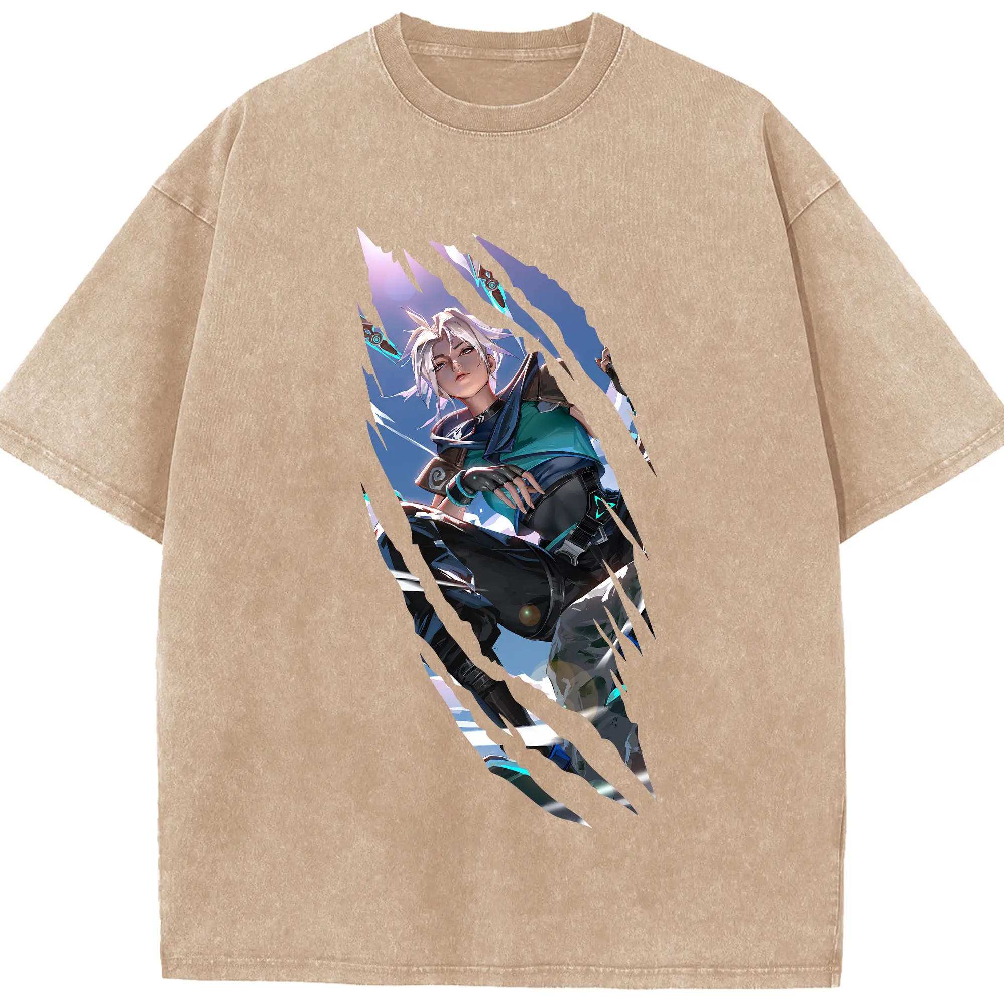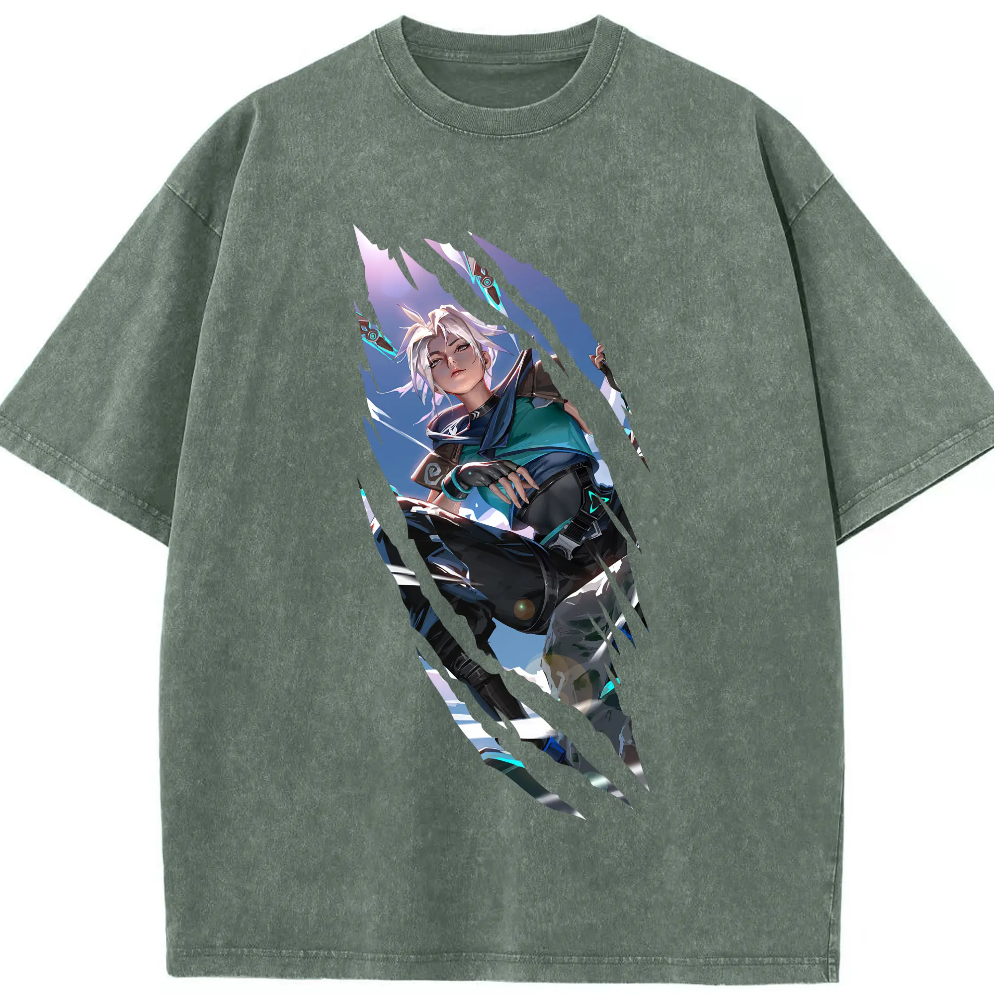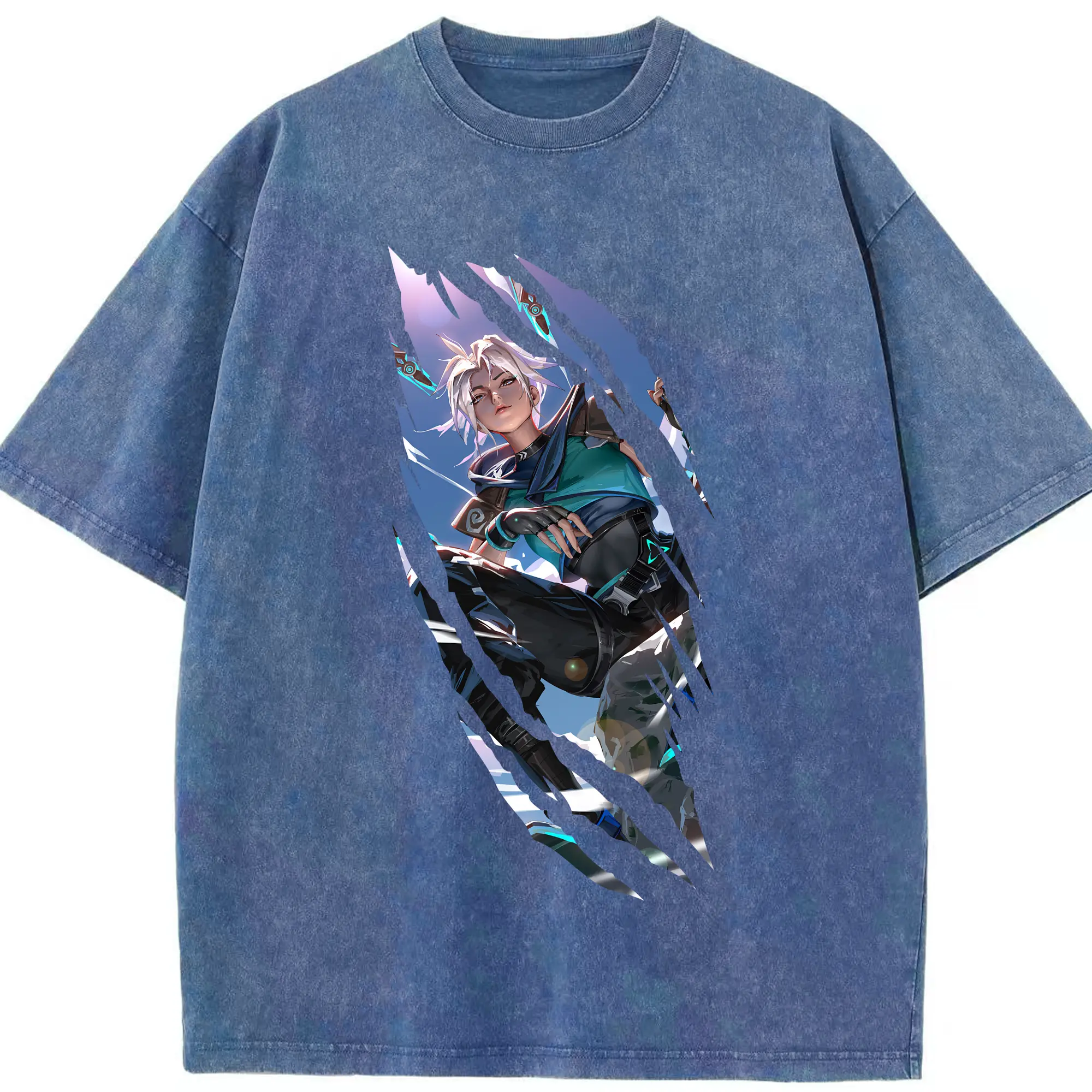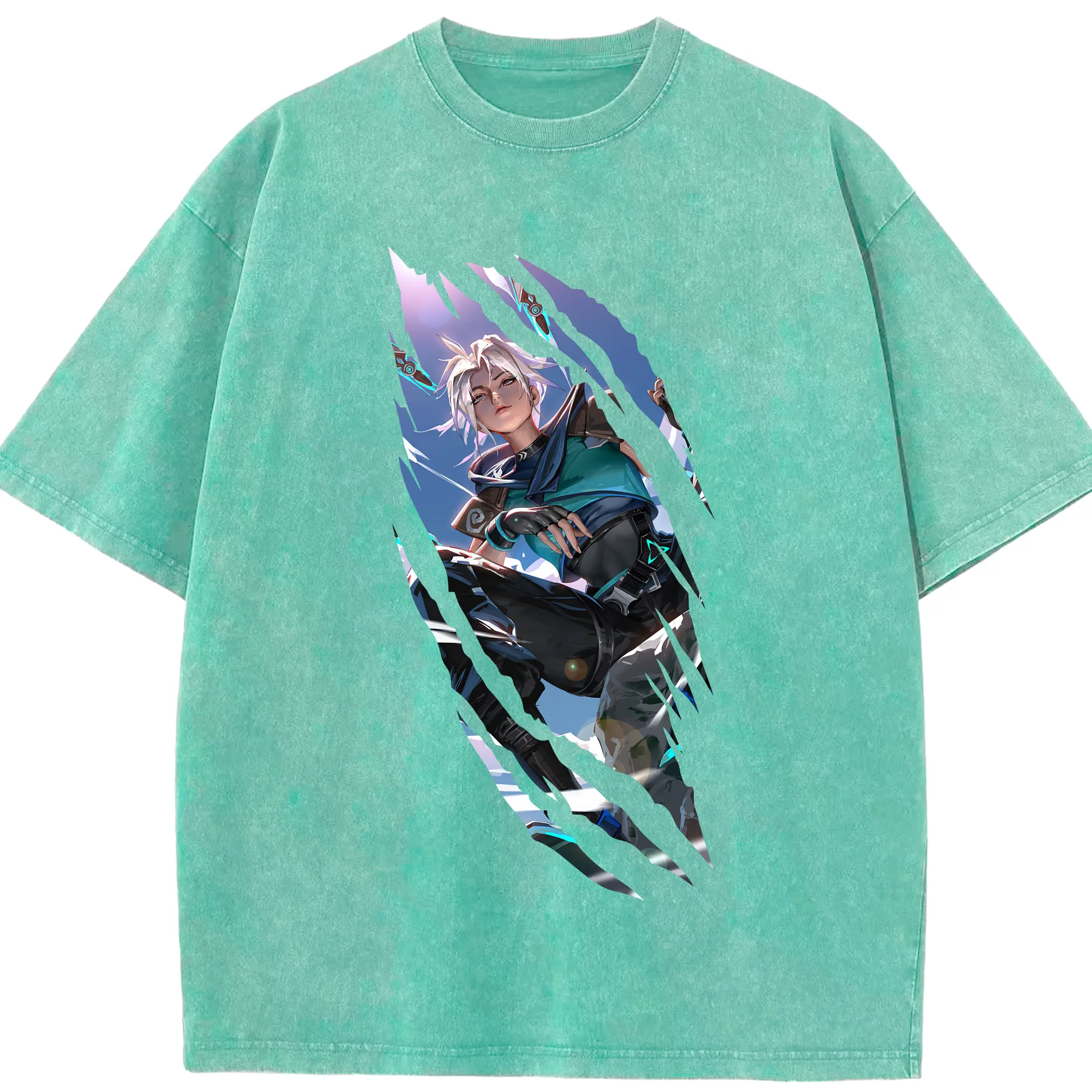 VALORANT グッズ,ジェット - 綿100% ヴィンテージ風 半袖Tシャツ ・ 背面プリント ・ 柔らか肌触り ・ 通気性 快適 ・ スポーツ カジュアル 外出用