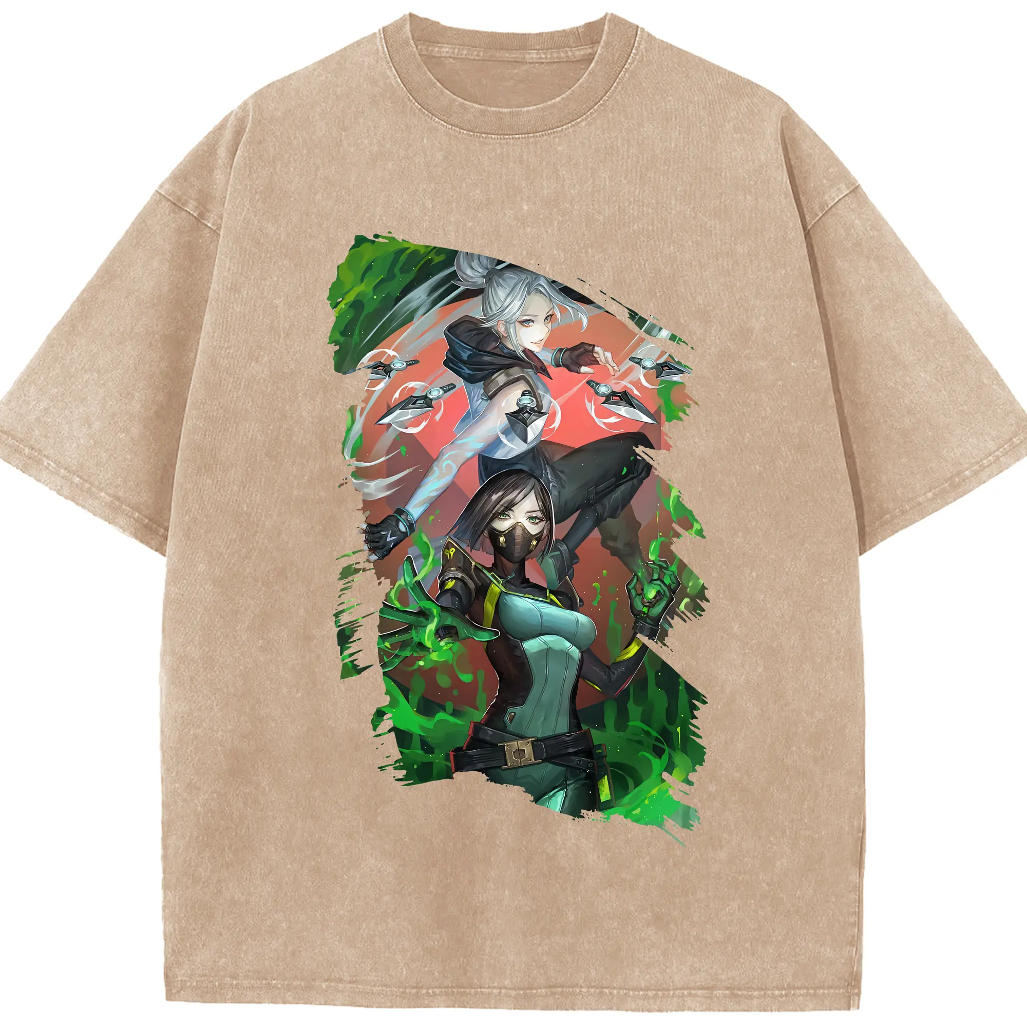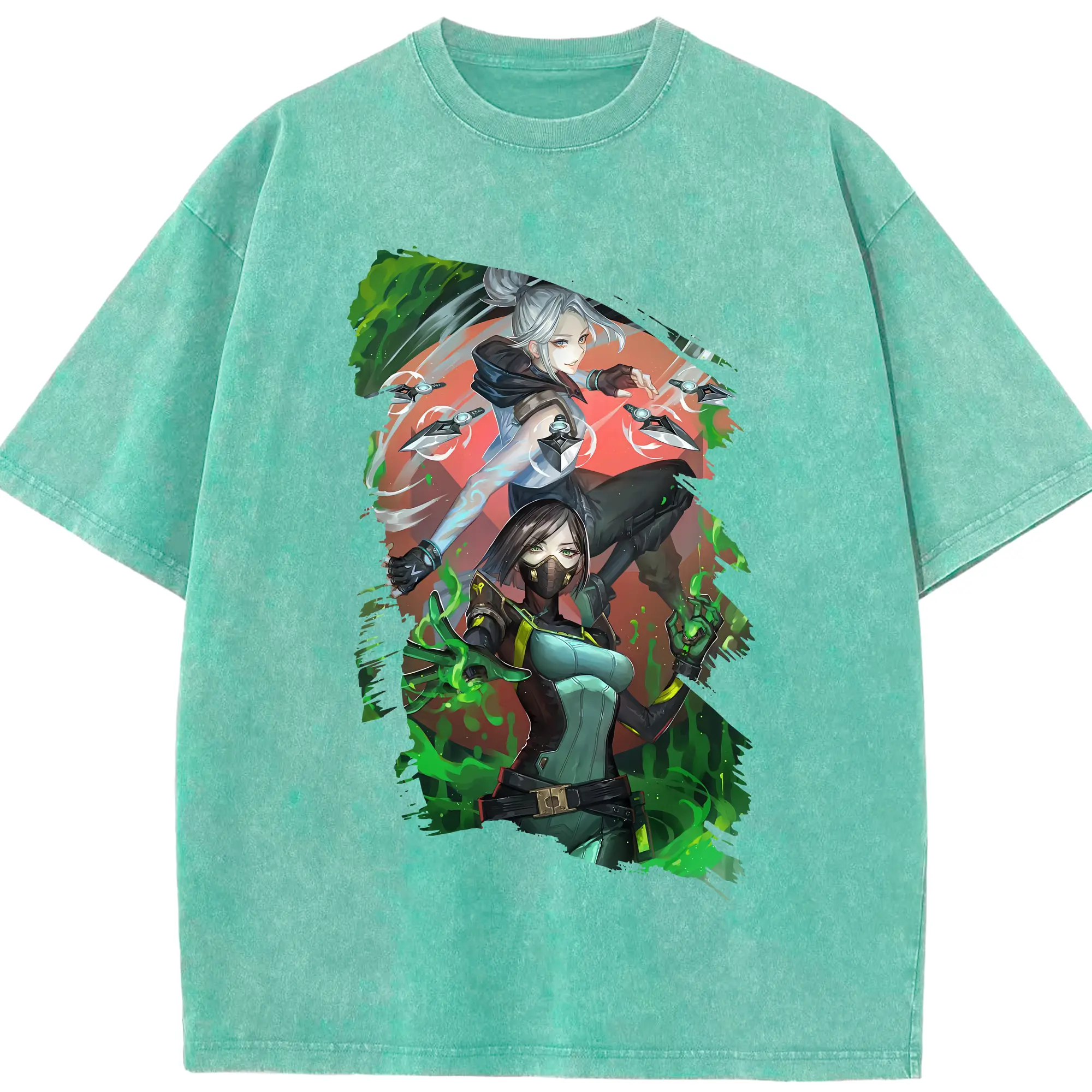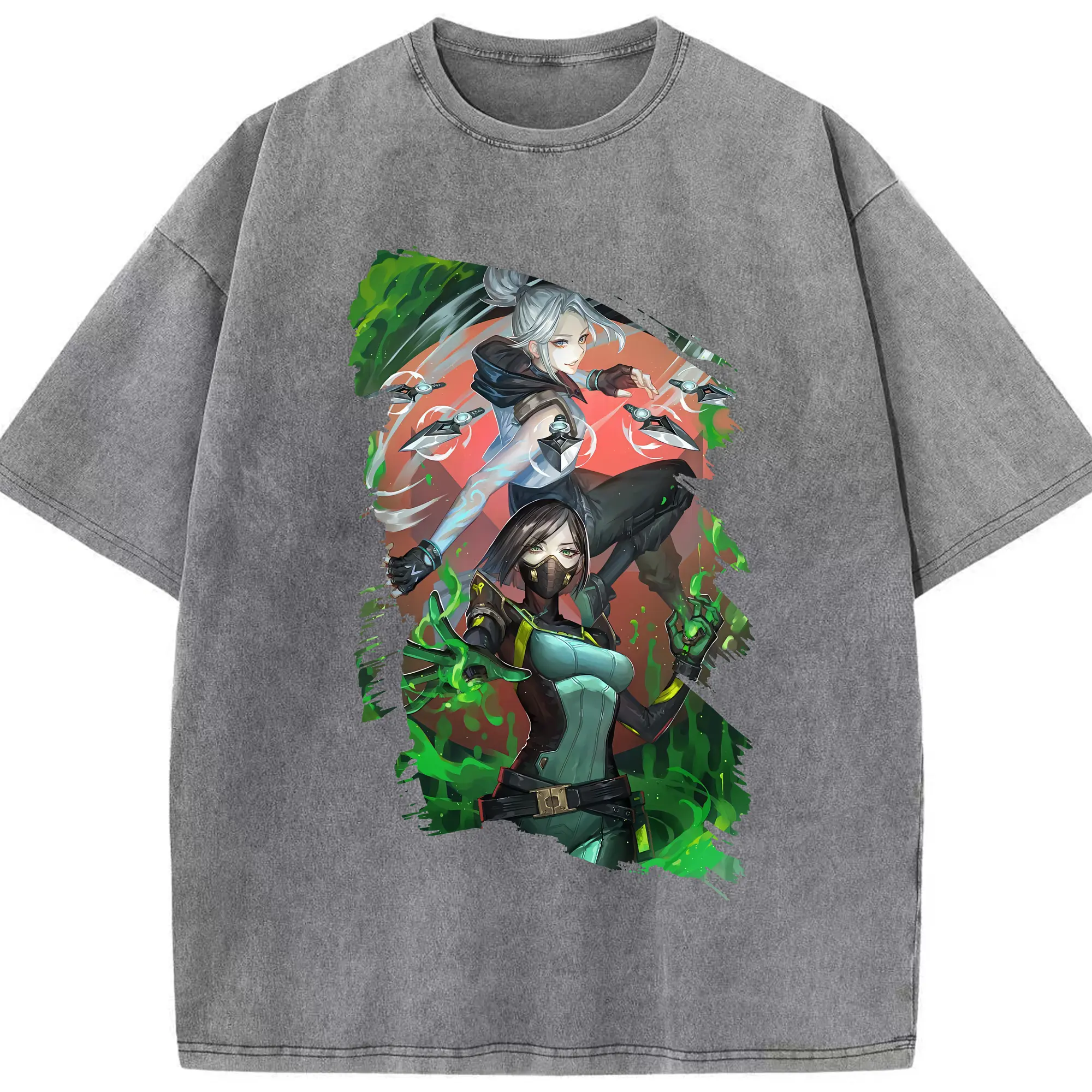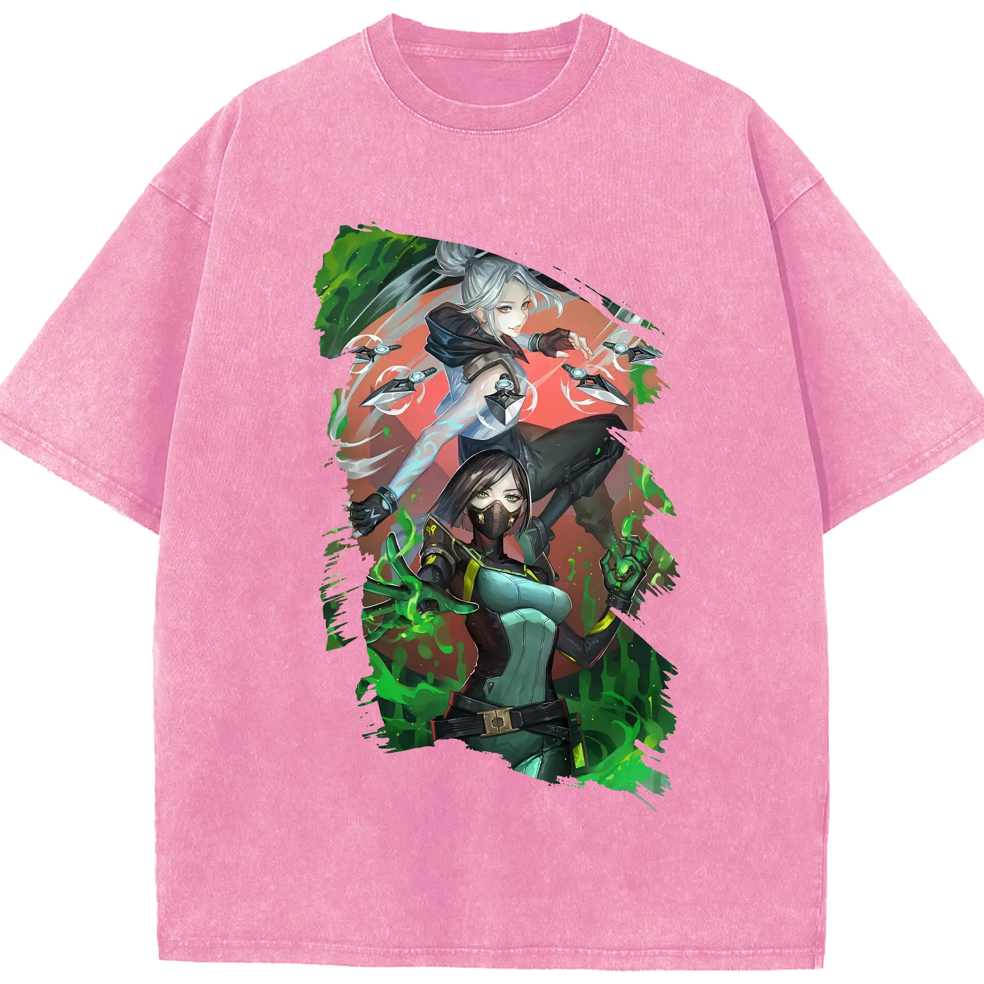 VALORANT グッズ,ジェット - 綿100% ヴィンテージ風 半袖Tシャツ ・ 背面プリント ・ 柔らか肌触り ・ 通気性 快適 ・ スポーツ カジュアル 外出用