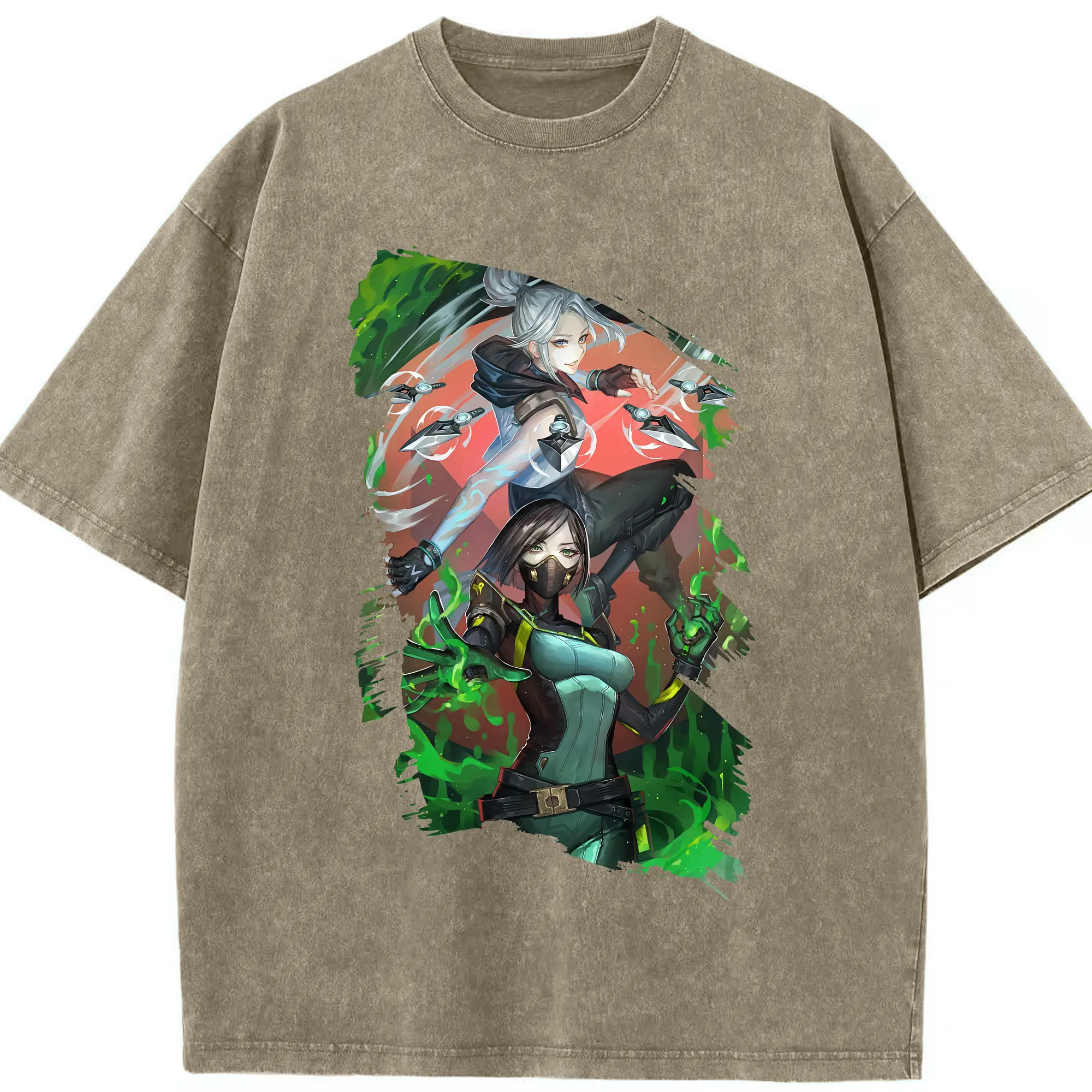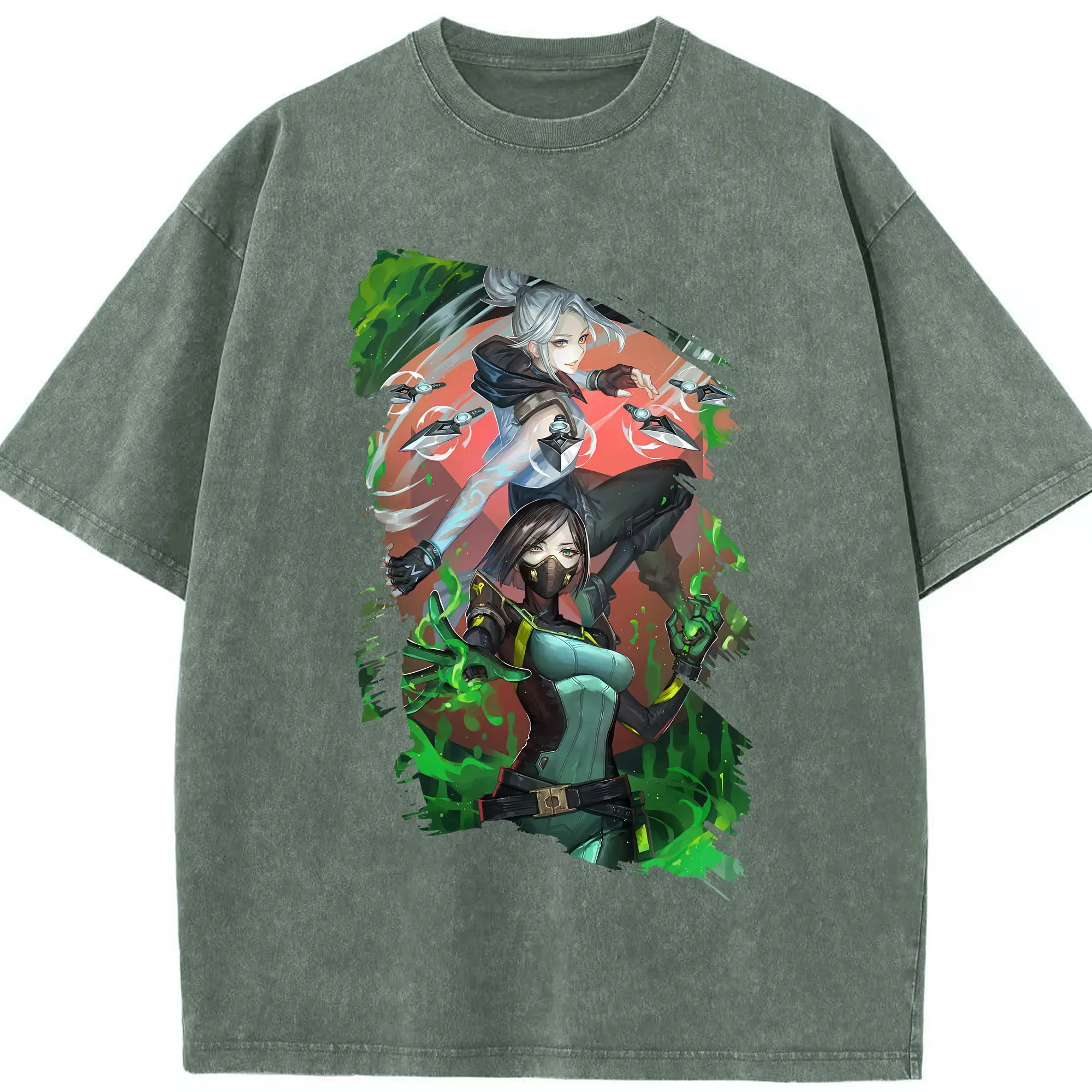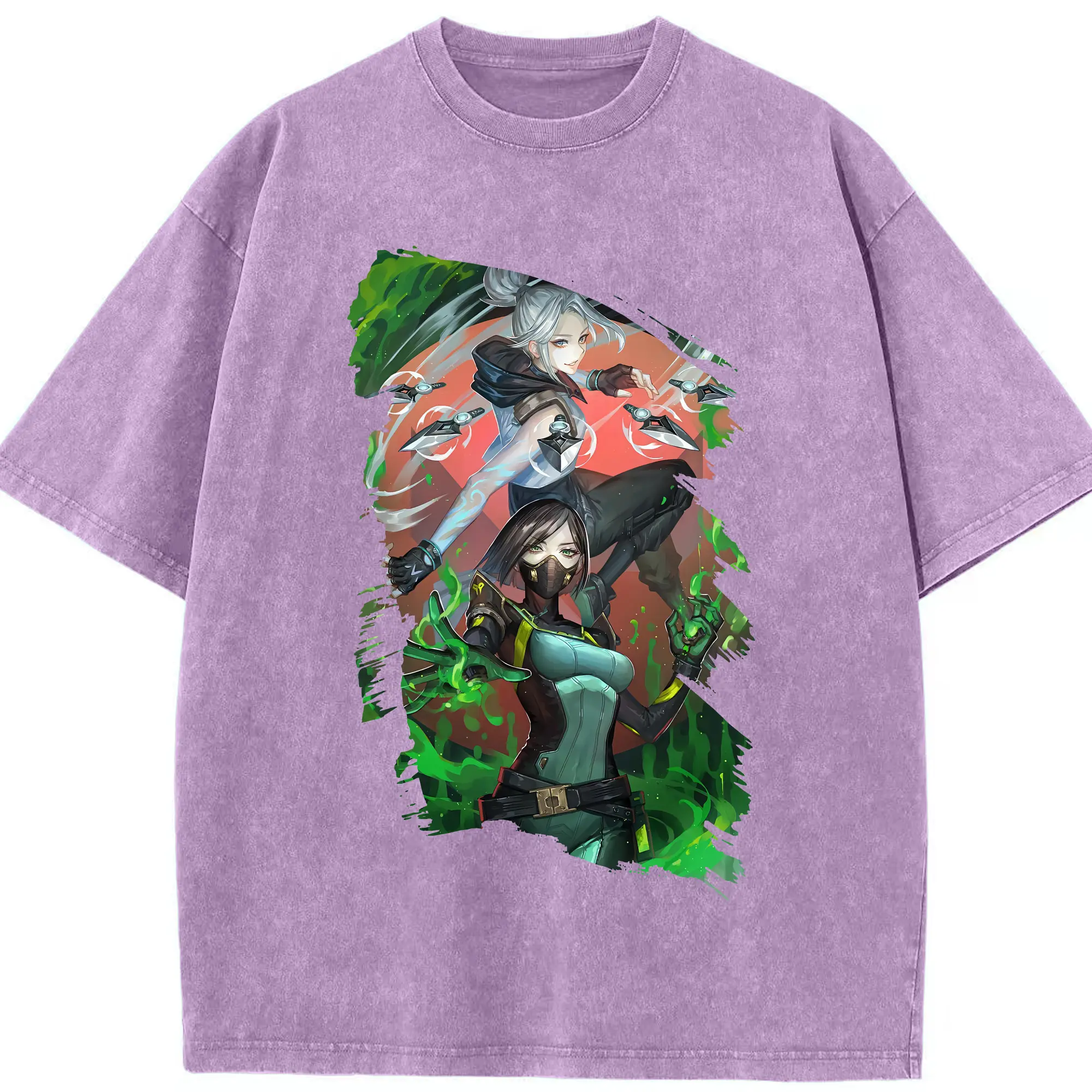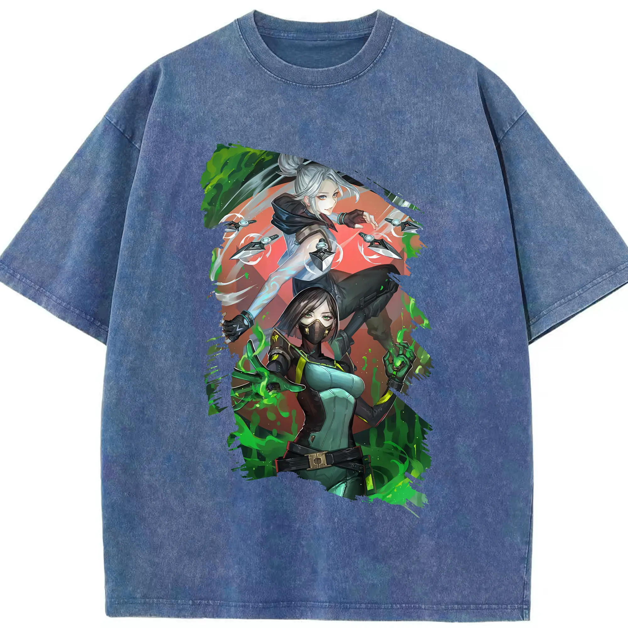 VALORANT グッズ,ジェット - 綿100% ヴィンテージ風 半袖Tシャツ ・ 背面プリント ・ 柔らか肌触り ・ 通気性 快適 ・ スポーツ カジュアル 外出用