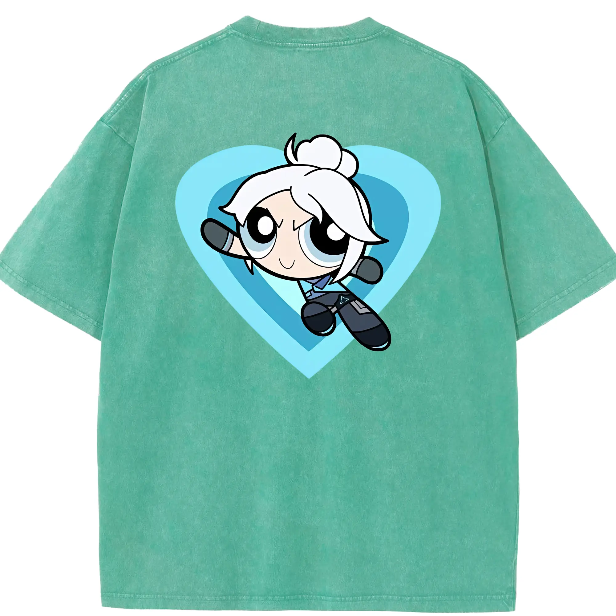 ワンパンマン グッズ ジェノス - 綿100% ヴィンテージ風 半袖Tシャツ ・ 背面プリント ・ 柔らか肌触り ・ 通気性 快適 ・ スポーツ カジュアル 外出用