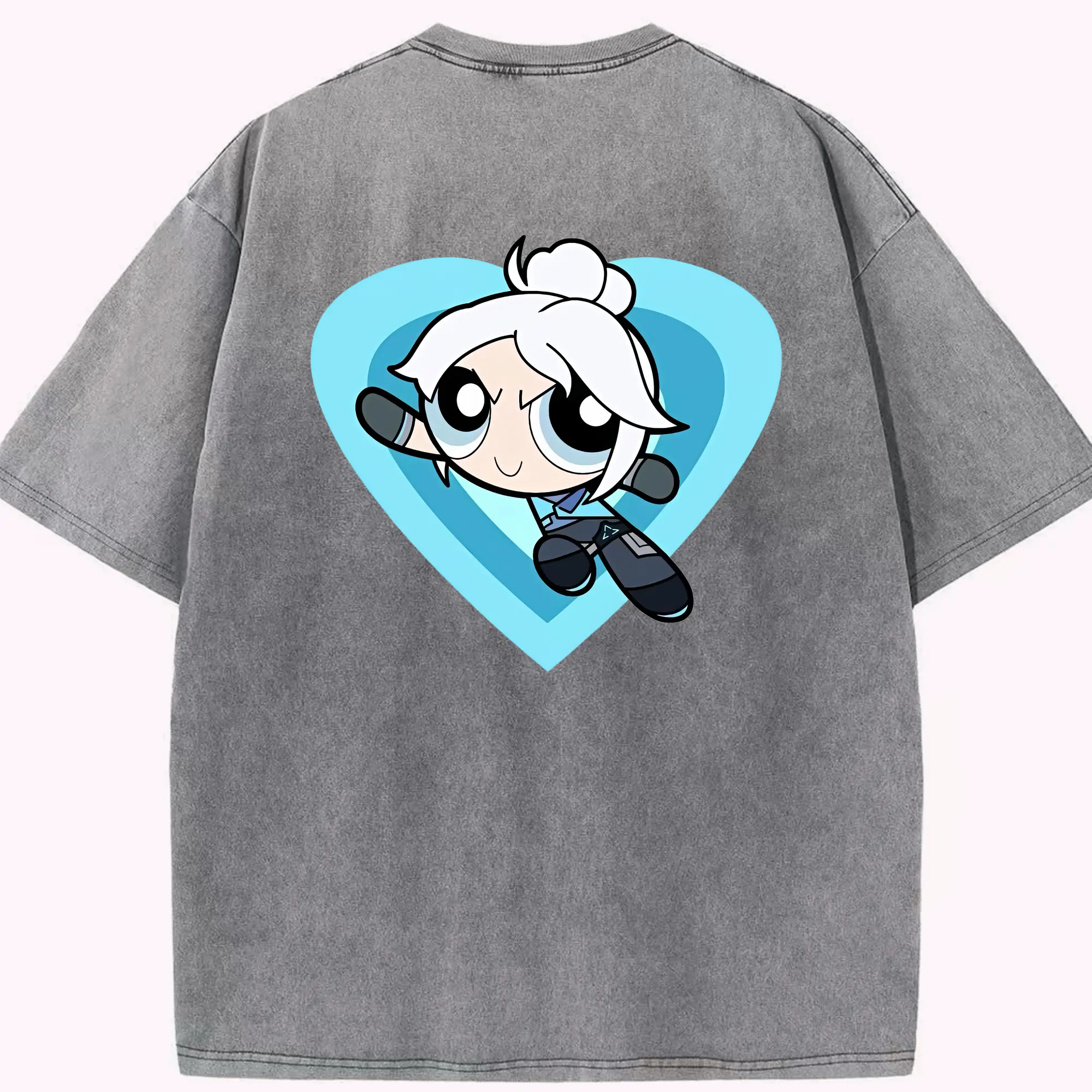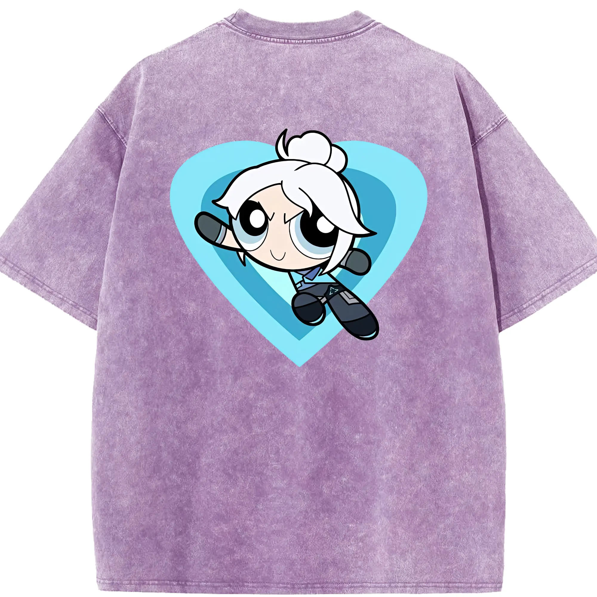銀魂 グッズ 神楽 - 綿100% ヴィンテージ風 半袖Tシャツ ・ 背面プリント ・ 柔らか肌触り ・ 通気性 快適 ・ スポーツ カジュアル 外出用