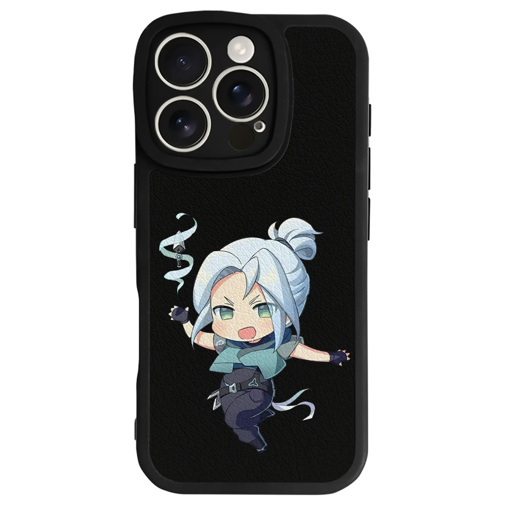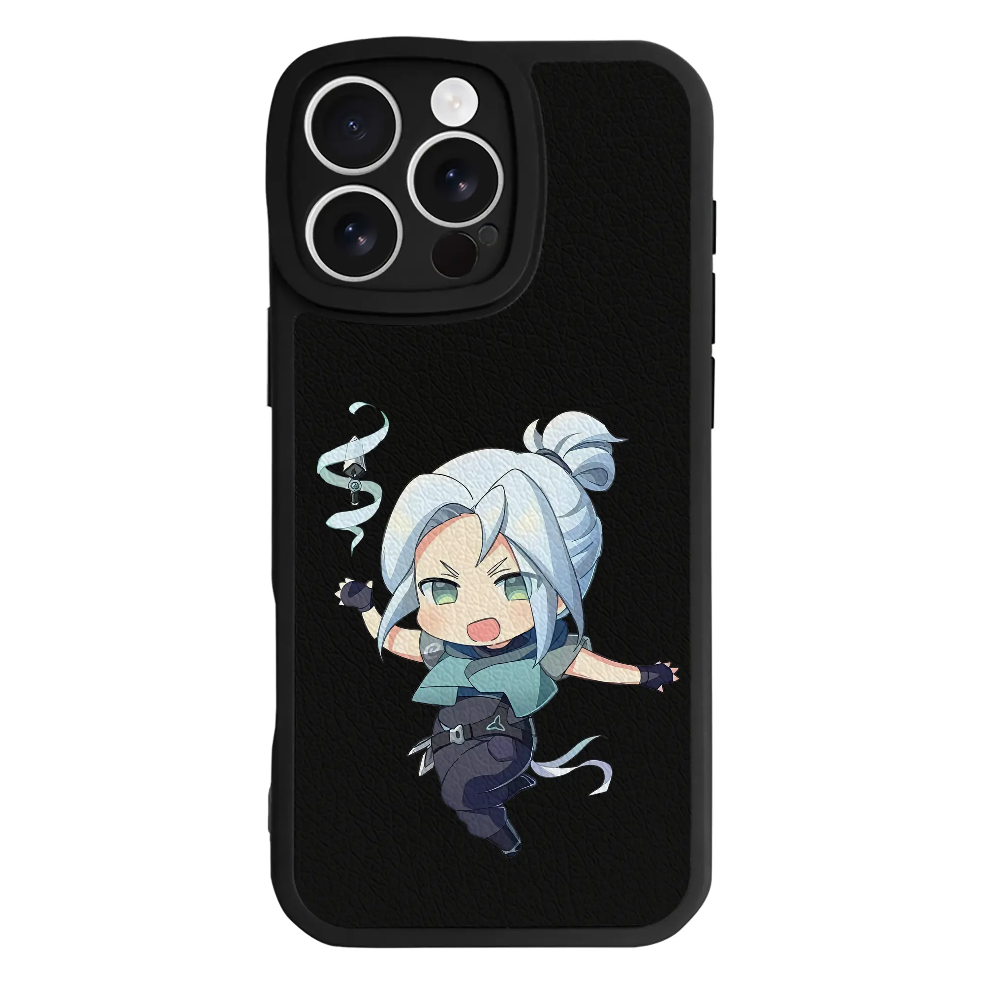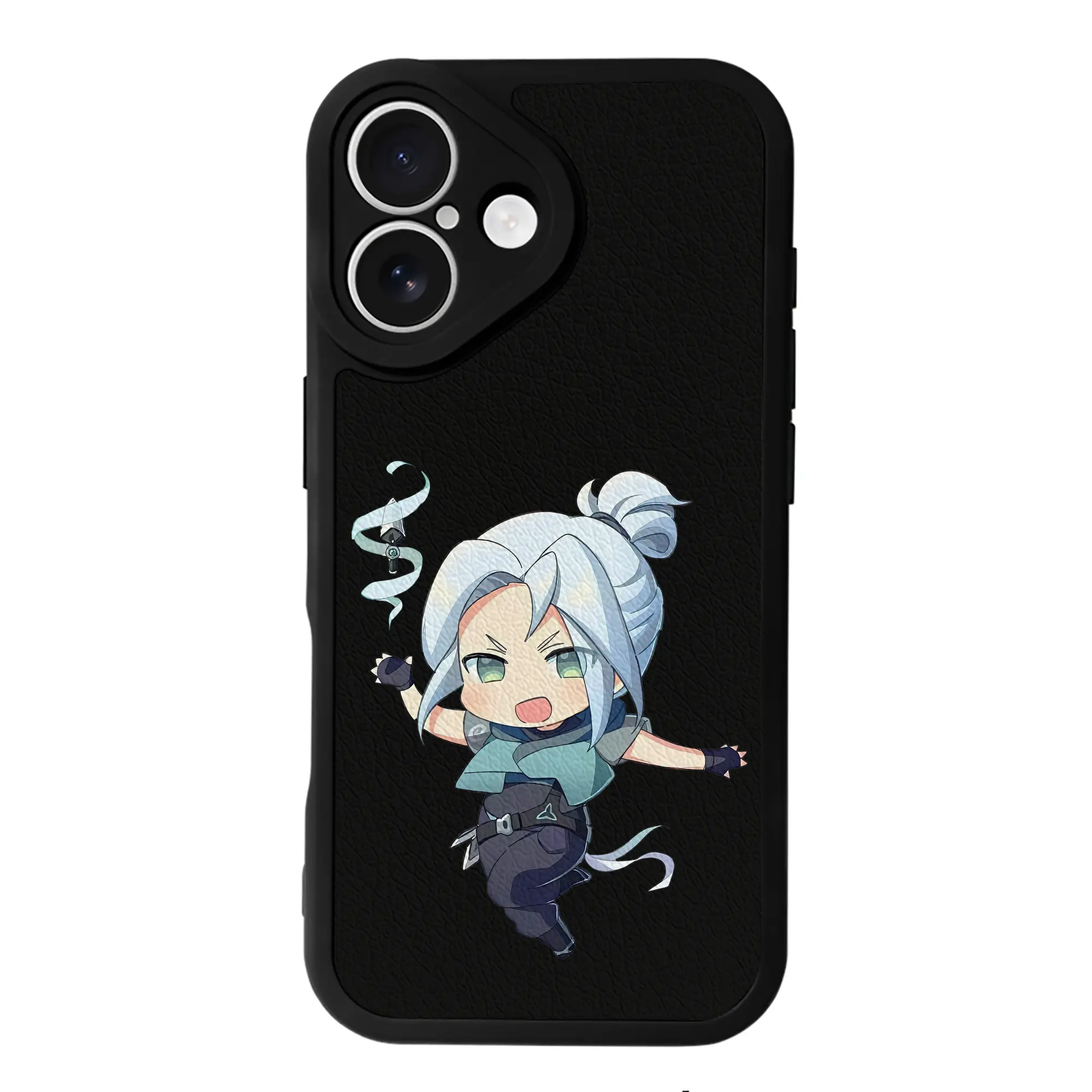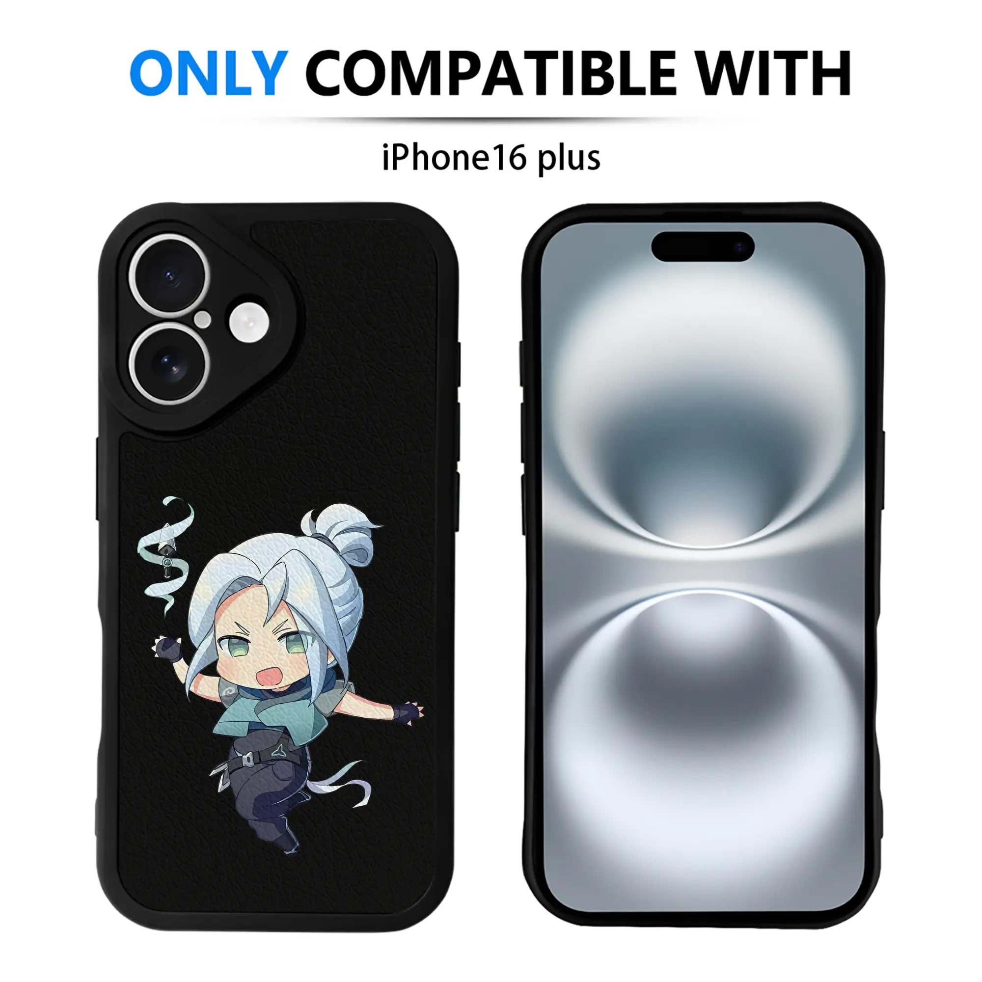 VALORANT グッズ,ジェット - IPhone 16シリーズ対応 ・ シリコンスマホケース ・ レザー調 ・ 高精度フィット ・ 耐衝撃 ・ ワイヤレス充電対応 ・ 精密カット