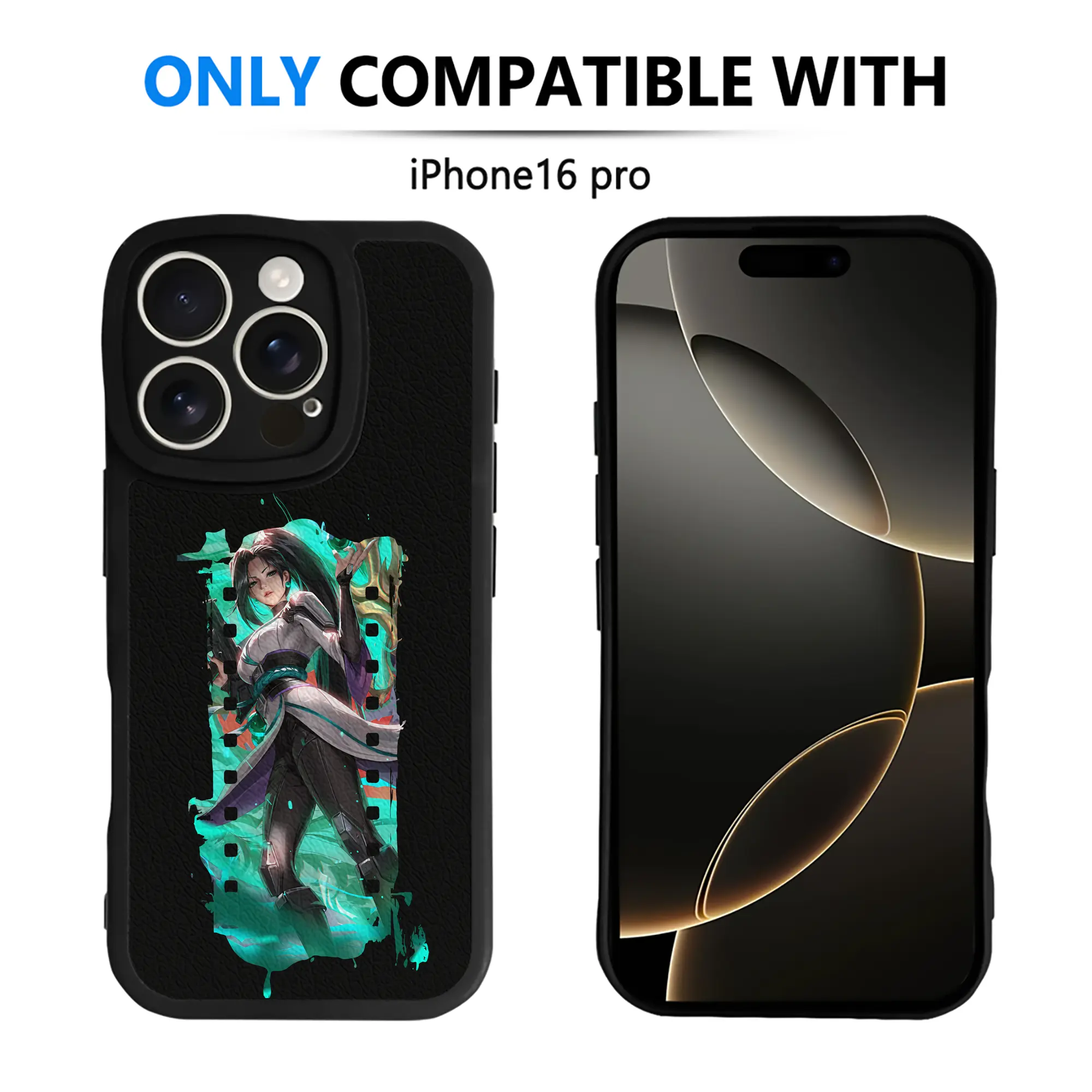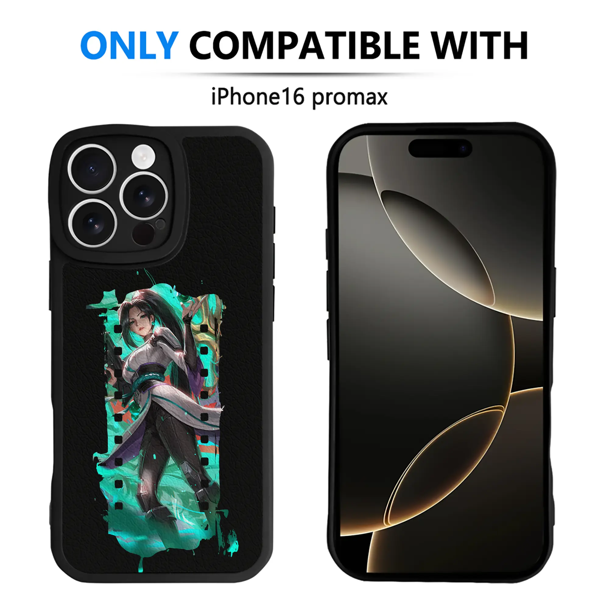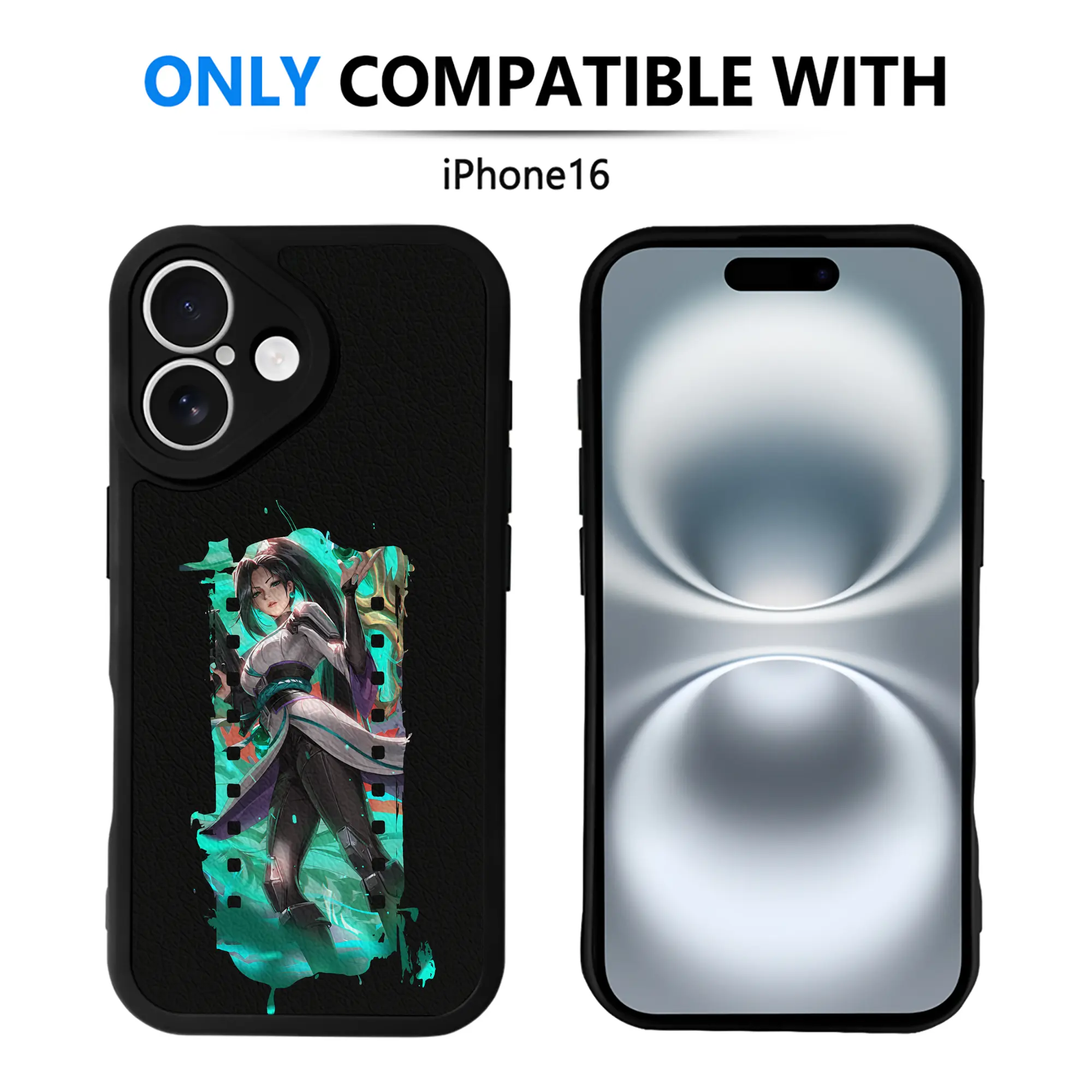 VALORANT グッズ,セージ - IPhone 16シリーズ対応 ・ シリコンスマホケース ・ レザー調 ・ 高精度フィット ・ 耐衝撃 ・ ワイヤレス充電対応 ・ 精密カット