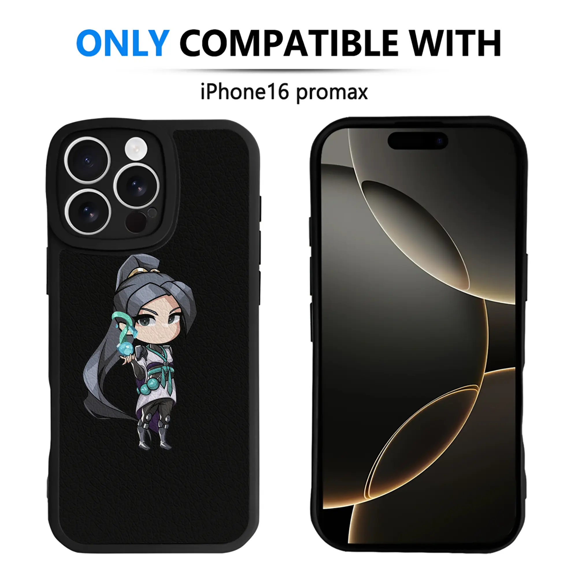 VALORANT グッズ,セージ - IPhone 16シリーズ対応 ・ シリコンスマホケース ・ レザー調 ・ 高精度フィット ・ 耐衝撃 ・ ワイヤレス充電対応 ・ 精密カット