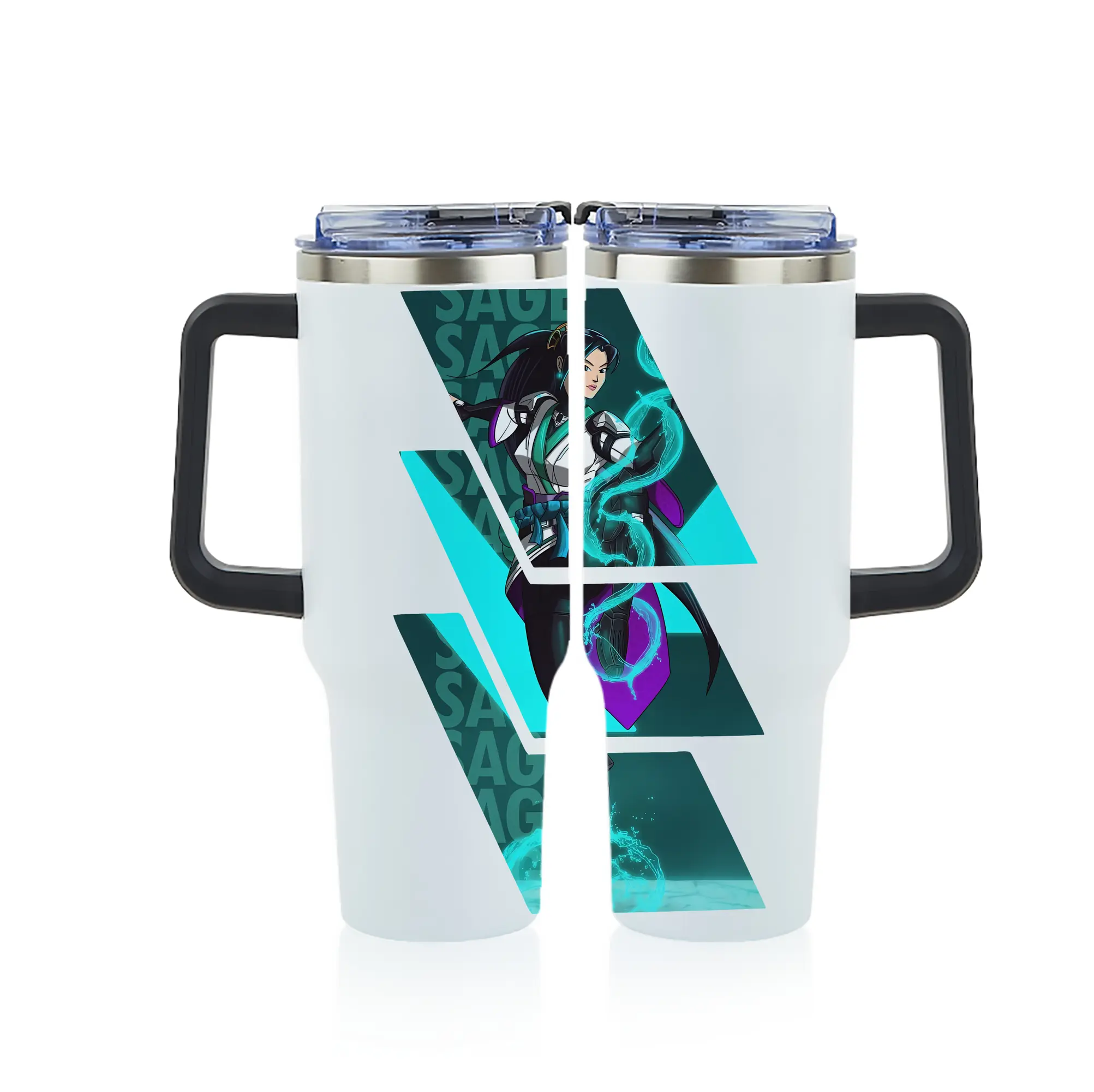 VALORANT グッズ,セージ - 1200mL フルプリント車用タンブラー ・ 304ステンレス 内側 ・ 201ステンレス 外側 ・ 保温 保冷 ・ 通勤 ドライブ アウトドア用