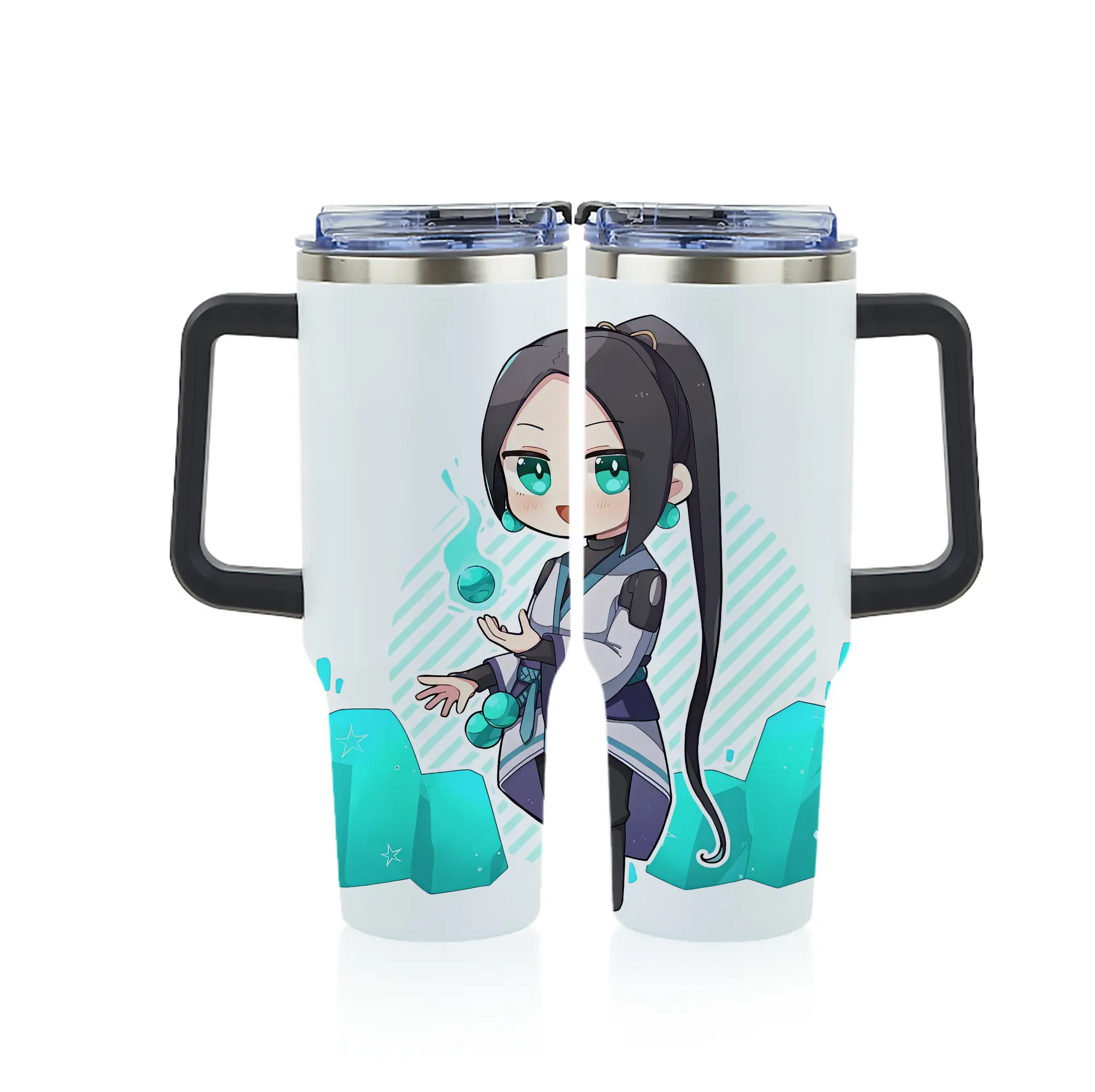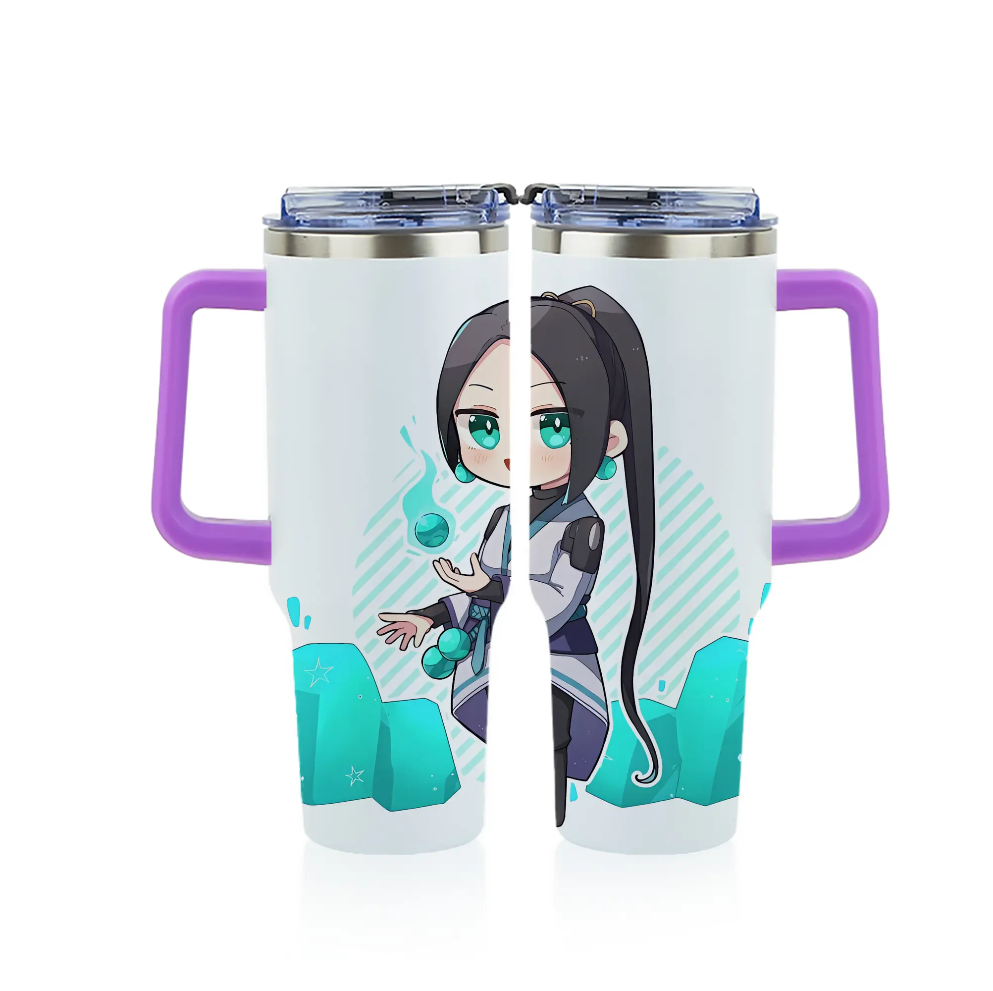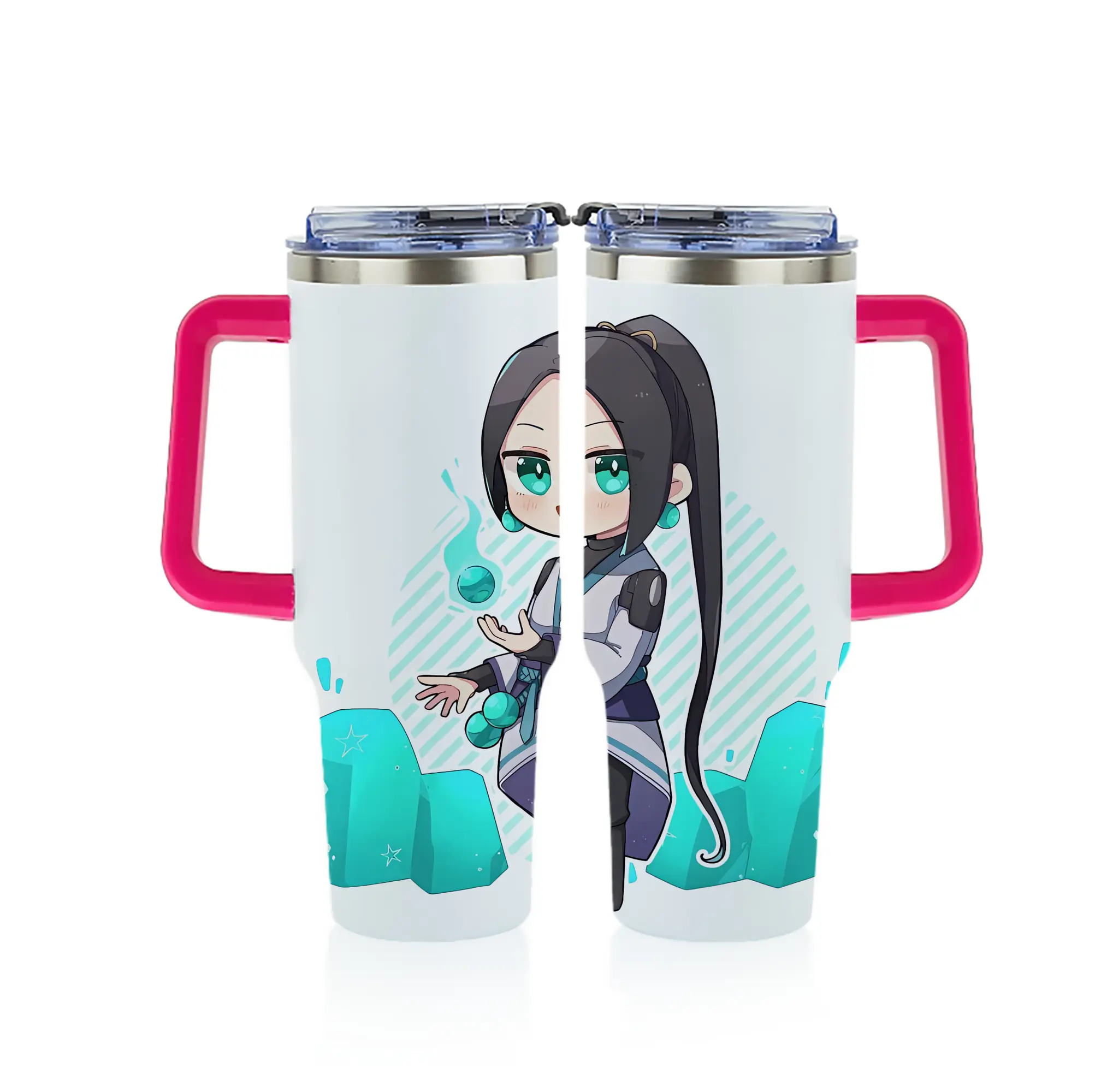 VALORANT グッズ,セージ - 1200mL フルプリント車用タンブラー ・ 304ステンレス 内側 ・ 201ステンレス 外側 ・ 保温 保冷 ・ 通勤 ドライブ アウトドア用