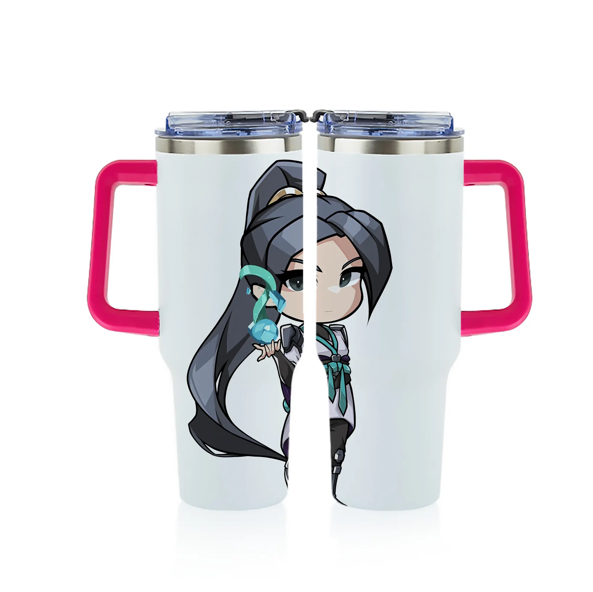 VALORANT グッズ,セージ - 1200mL フルプリント車用タンブラー ・ 304ステンレス 内側 ・ 201ステンレス 外側 ・ 保温 保冷 ・ 通勤 ドライブ アウトドア用