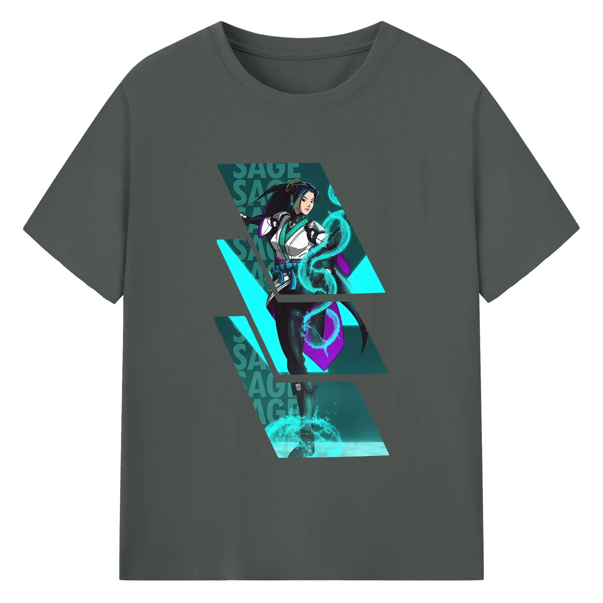 VALORANT グッズ,セージ - 綿100% 半袖Tシャツ ・ バックプリント ・ 快適 通気性 ・ 日常使い 散歩 スポーツ用