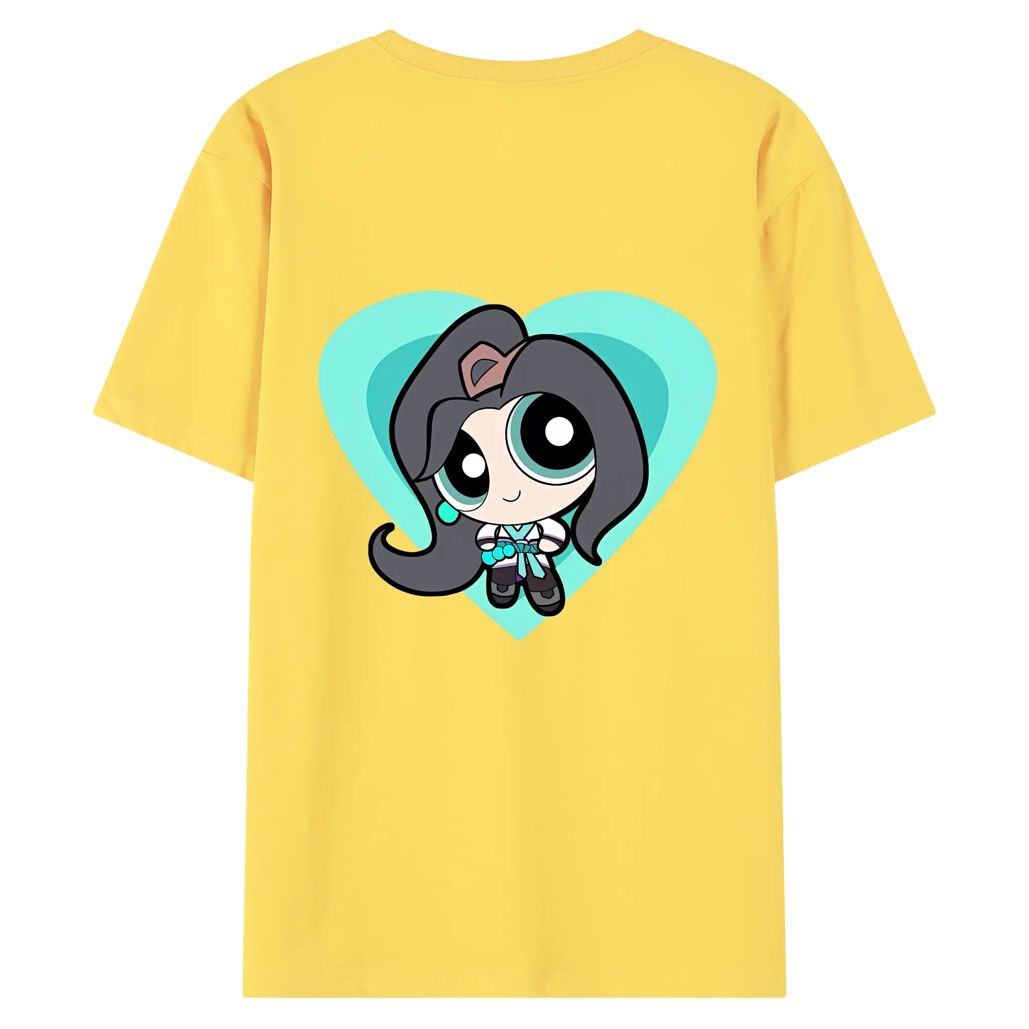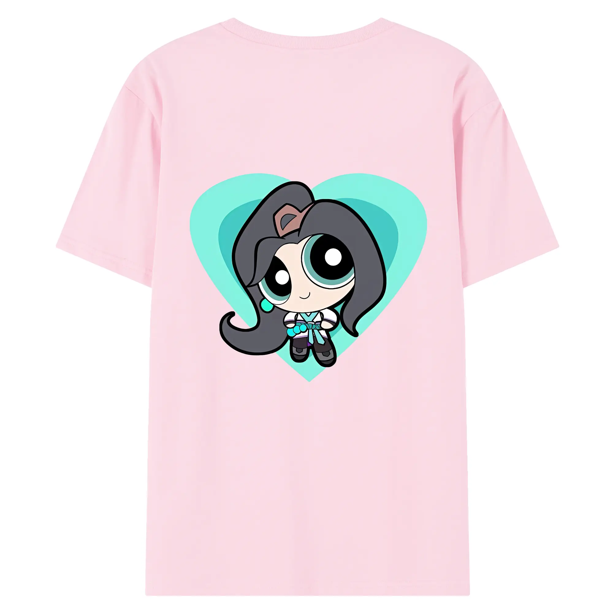 鳴潮 グッズ ツバキ - 綿100% 半袖Tシャツ ・ バックプリント ・ 快適 通気性 ・ 日常使い 散歩 スポーツ用