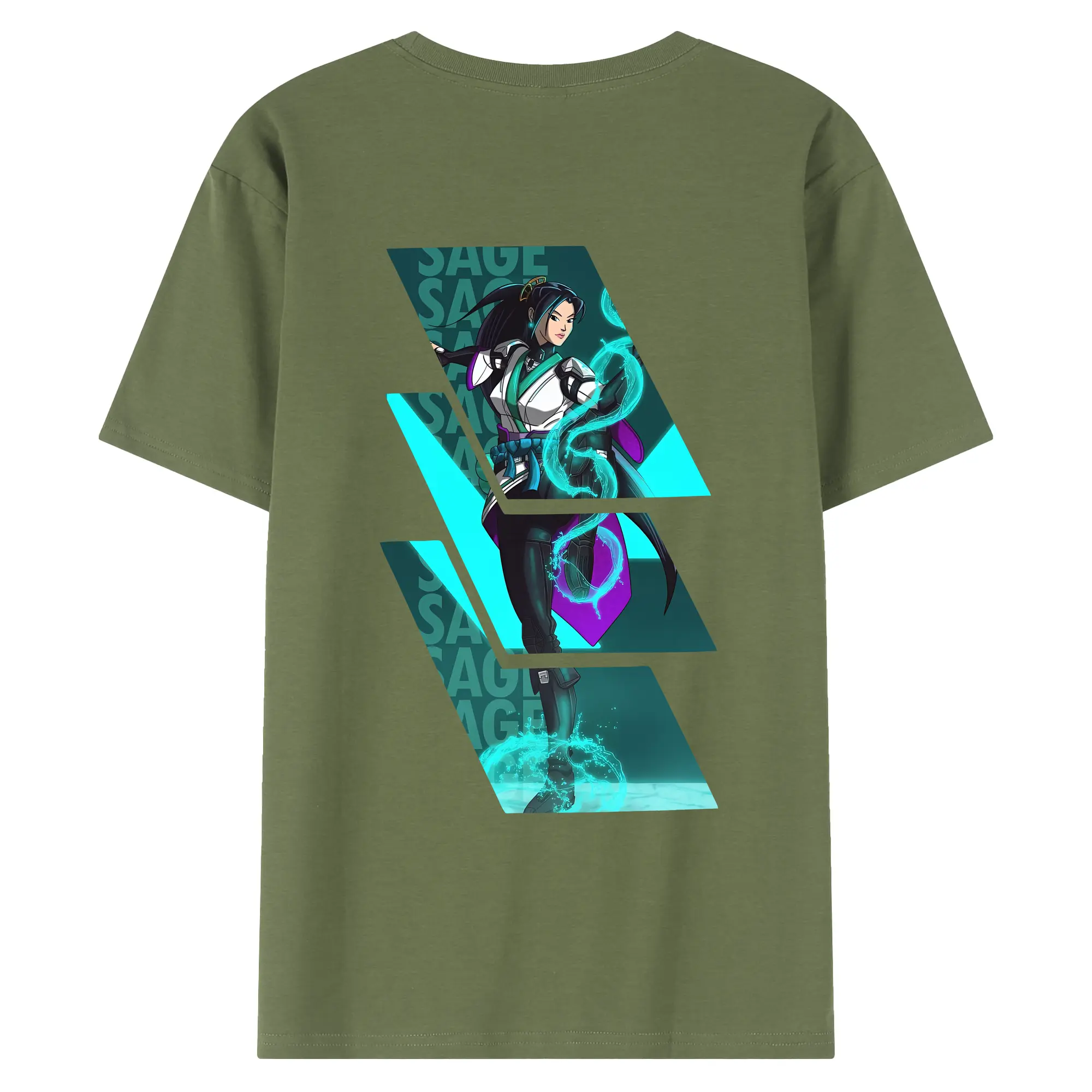 VALORANT グッズ,セージ - 綿100% 半袖Tシャツ ・ フロントプリント ・ 快適 通気性 ・ 日常使い 散歩 スポーツ用