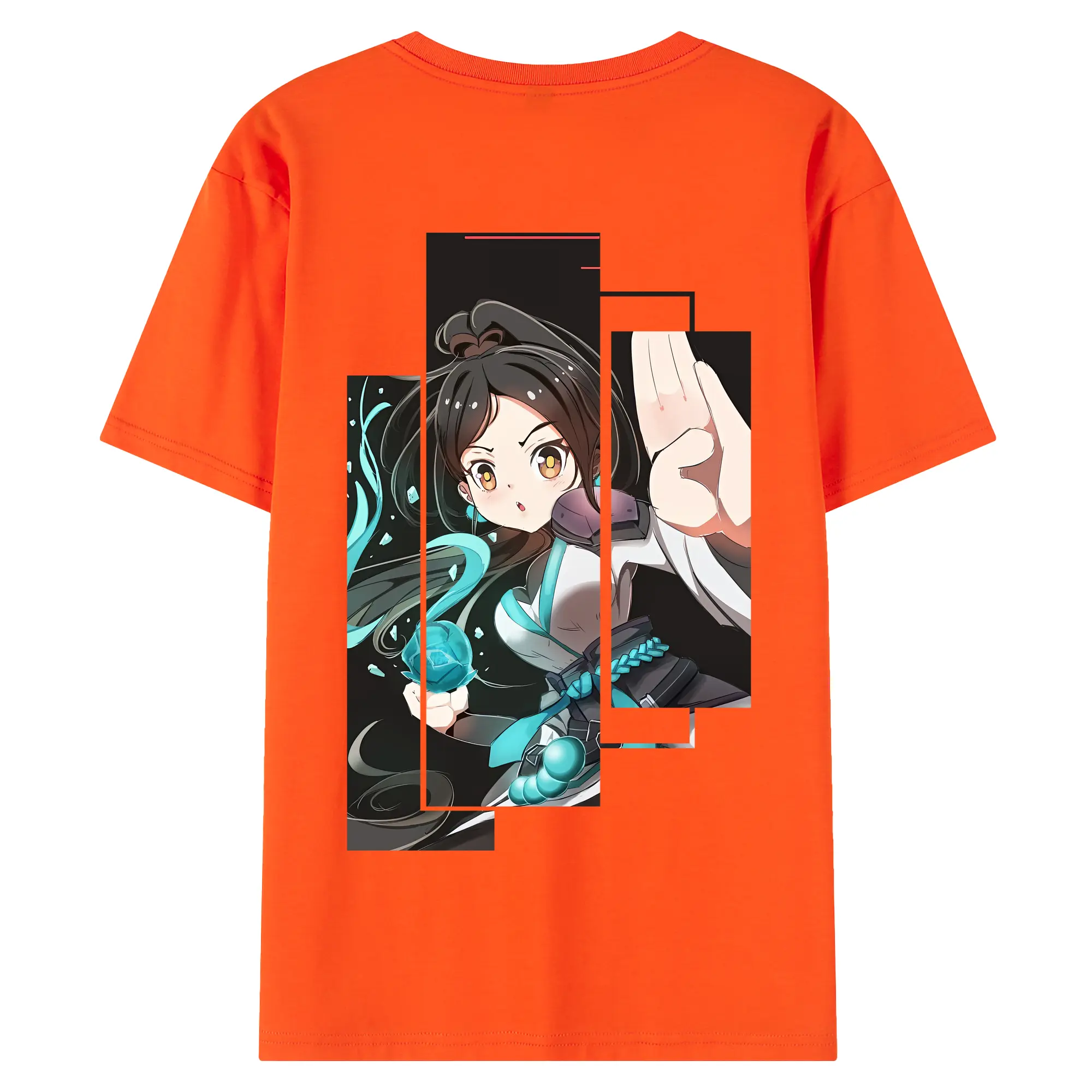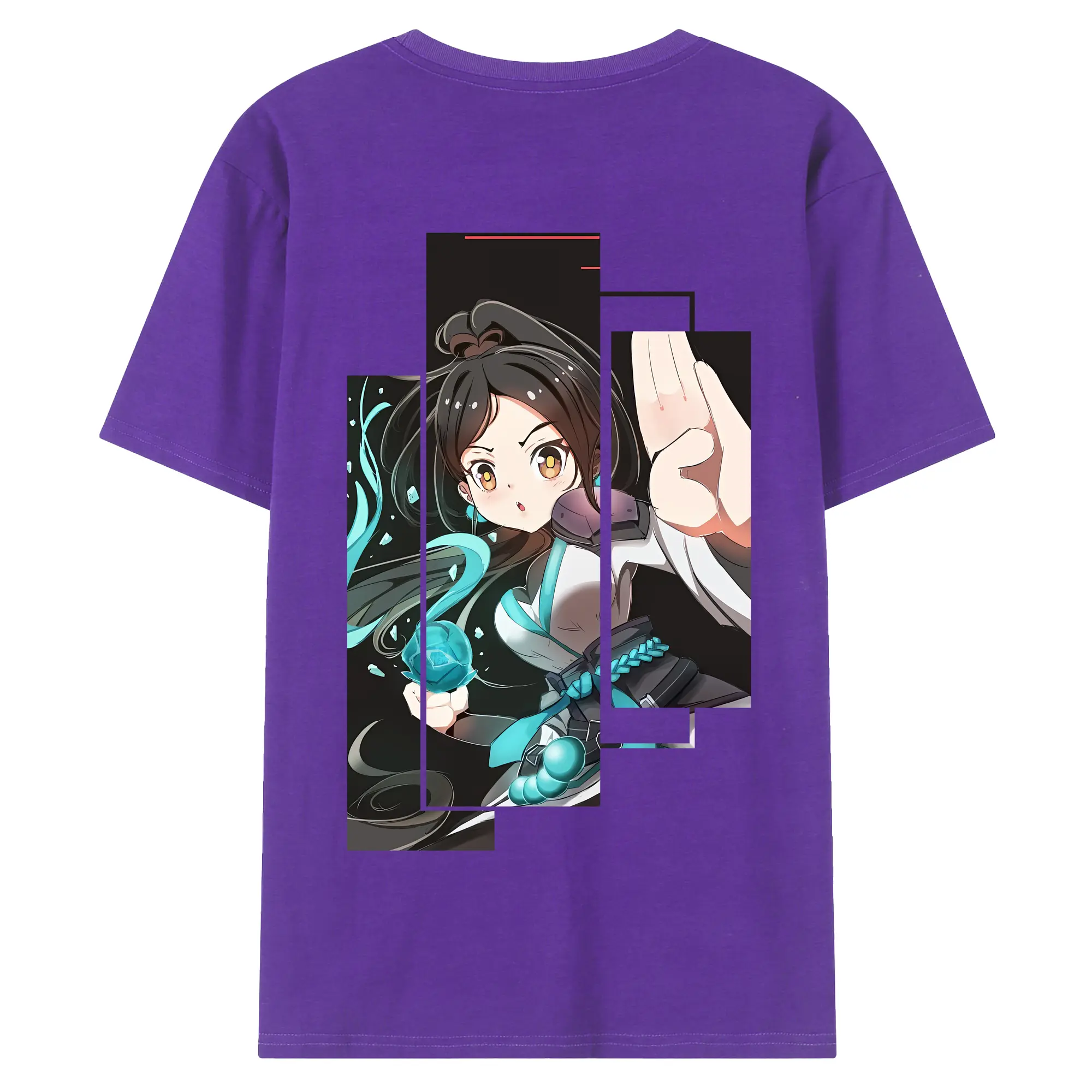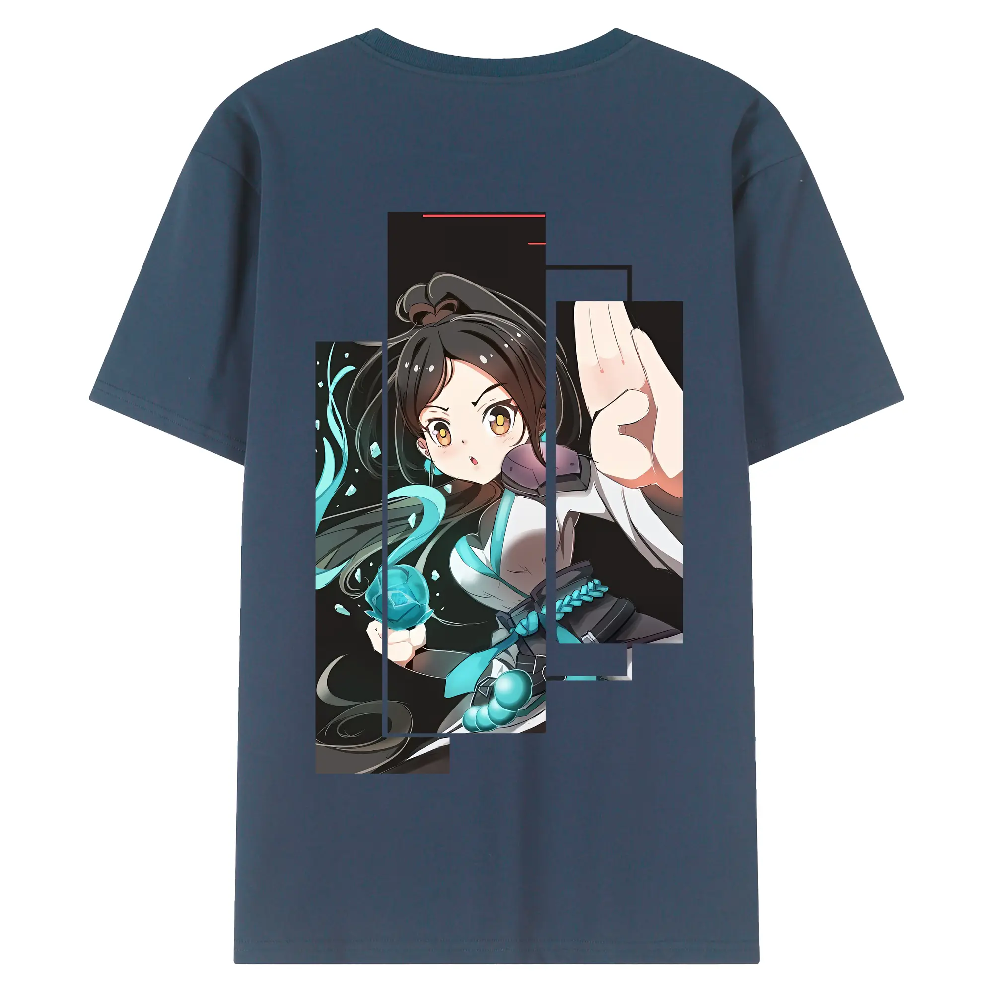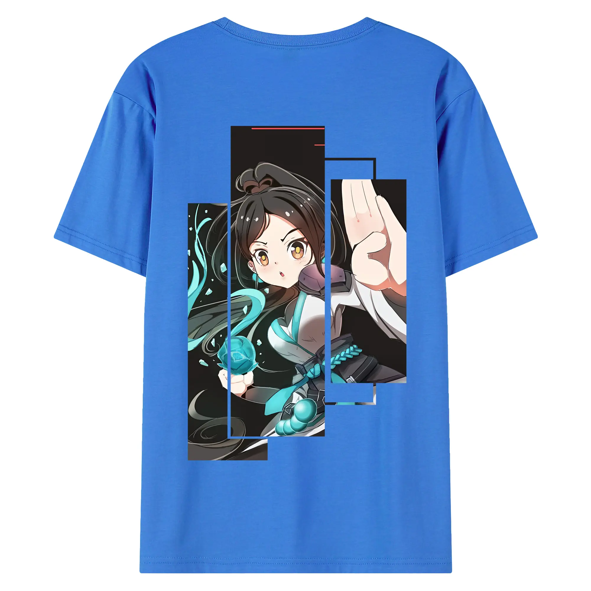 鳴潮 グッズ オーガスタ - 綿100% 半袖Tシャツ ・ バックプリント ・ 快適 通気性 ・ 日常使い 散歩 スポーツ用