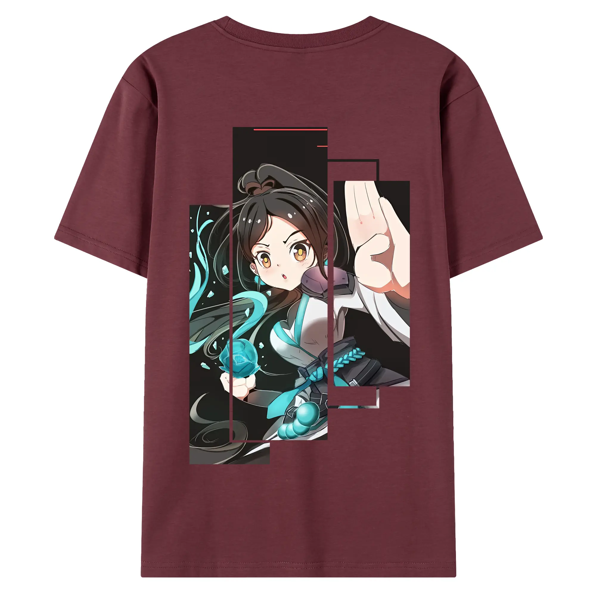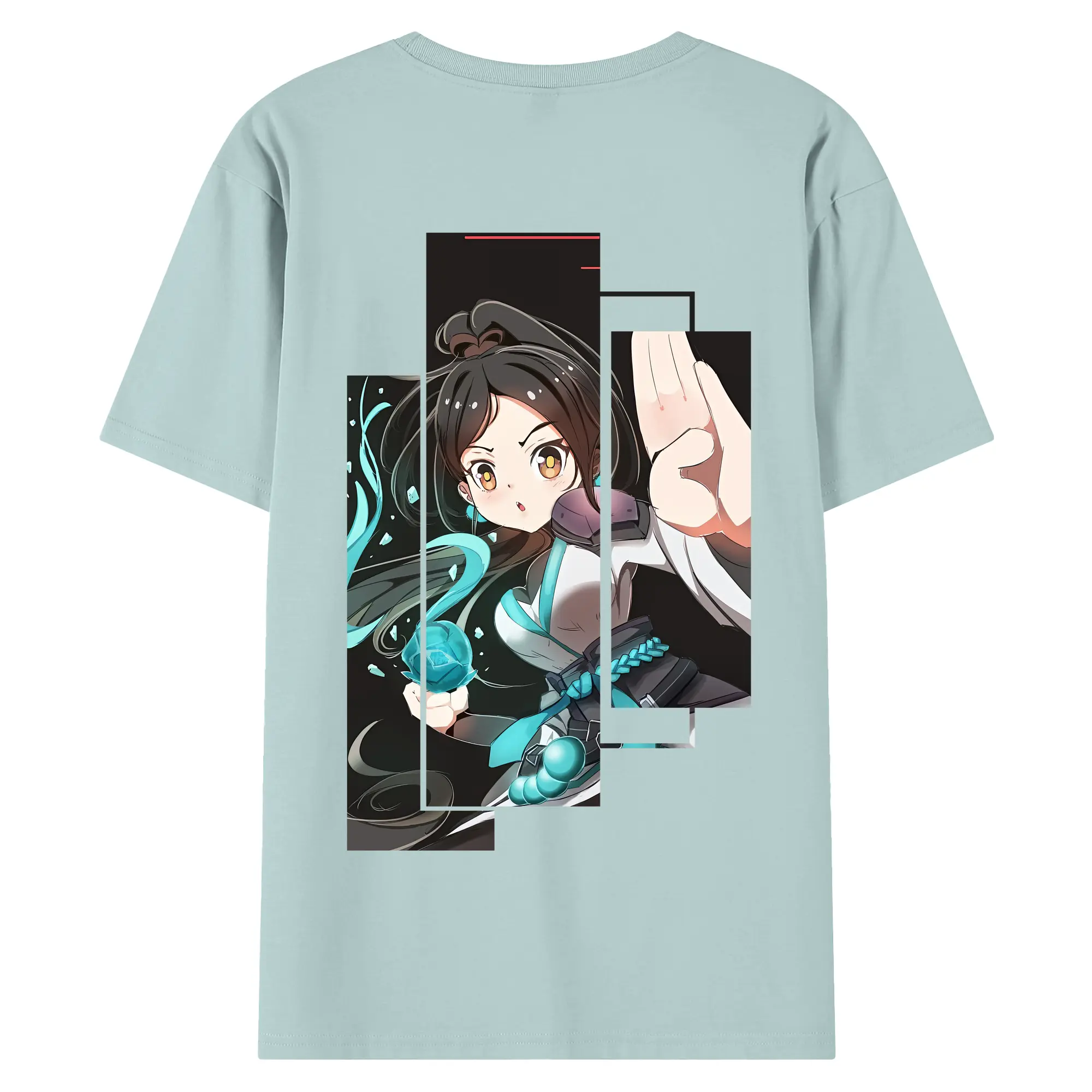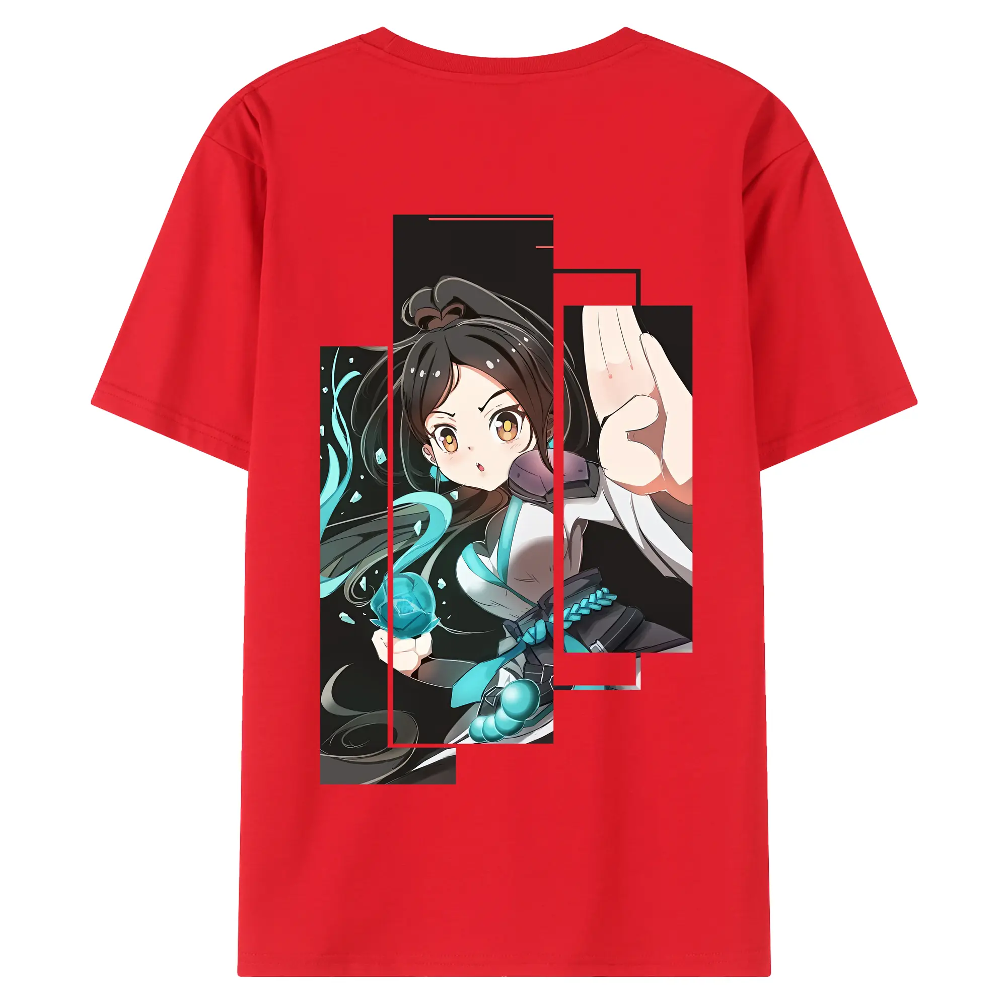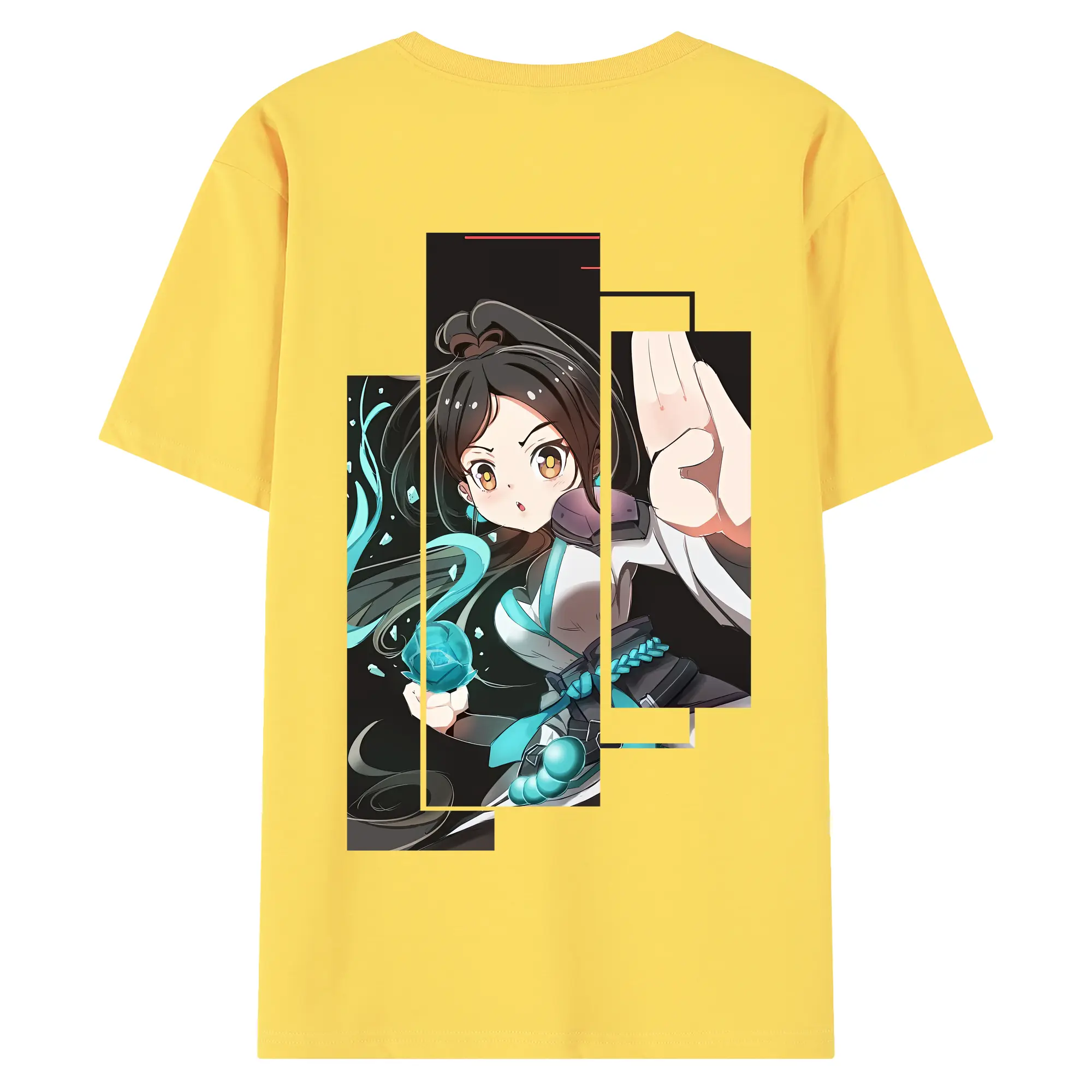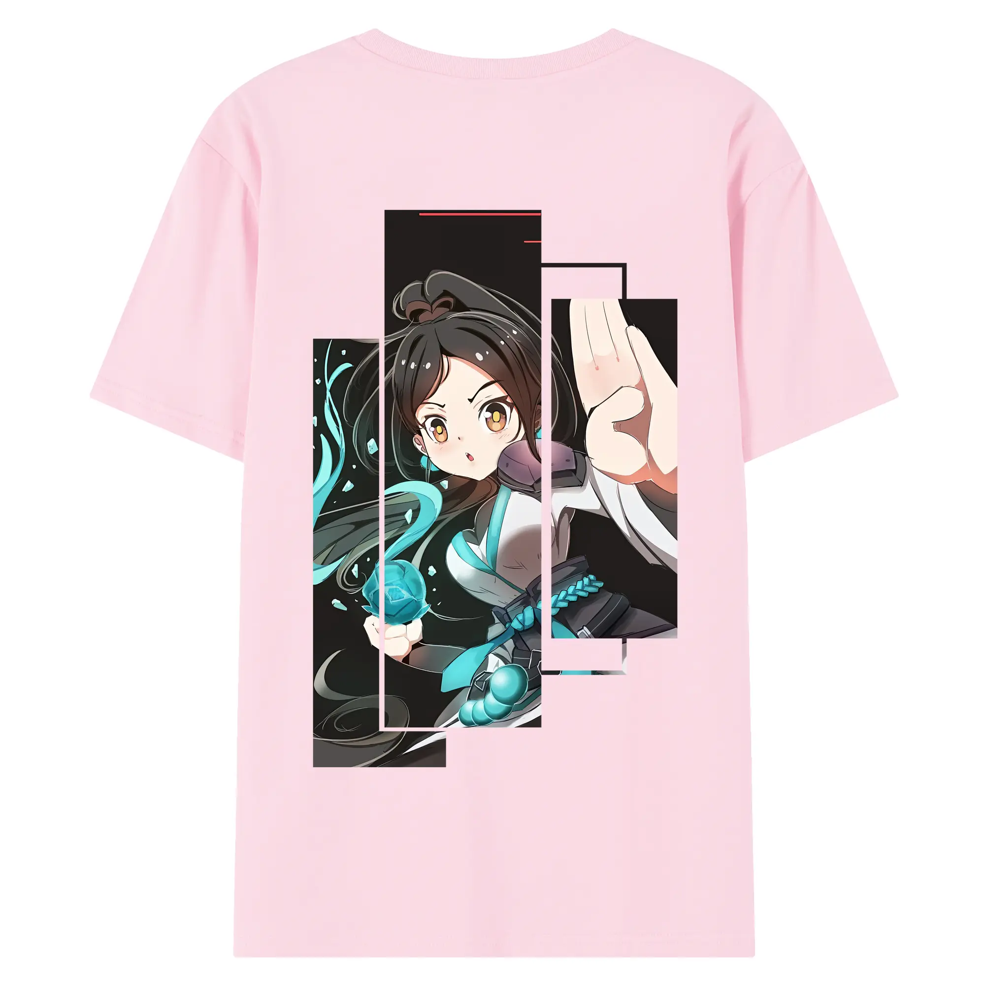 鳴潮 グッズ オーガスタ - 綿100% 半袖Tシャツ ・ バックプリント ・ 快適 通気性 ・ 日常使い 散歩 スポーツ用