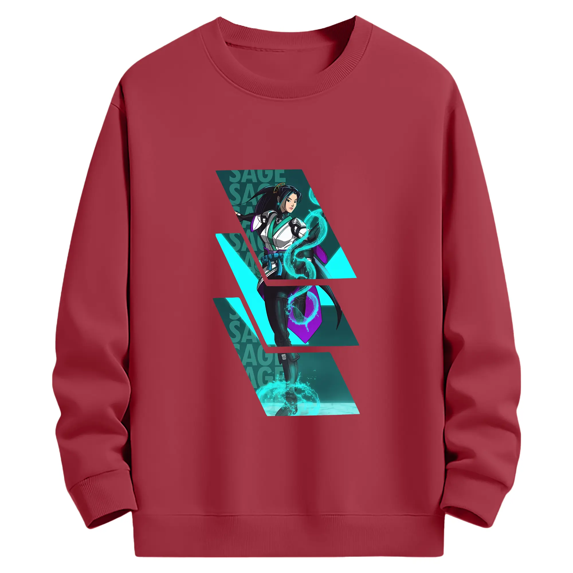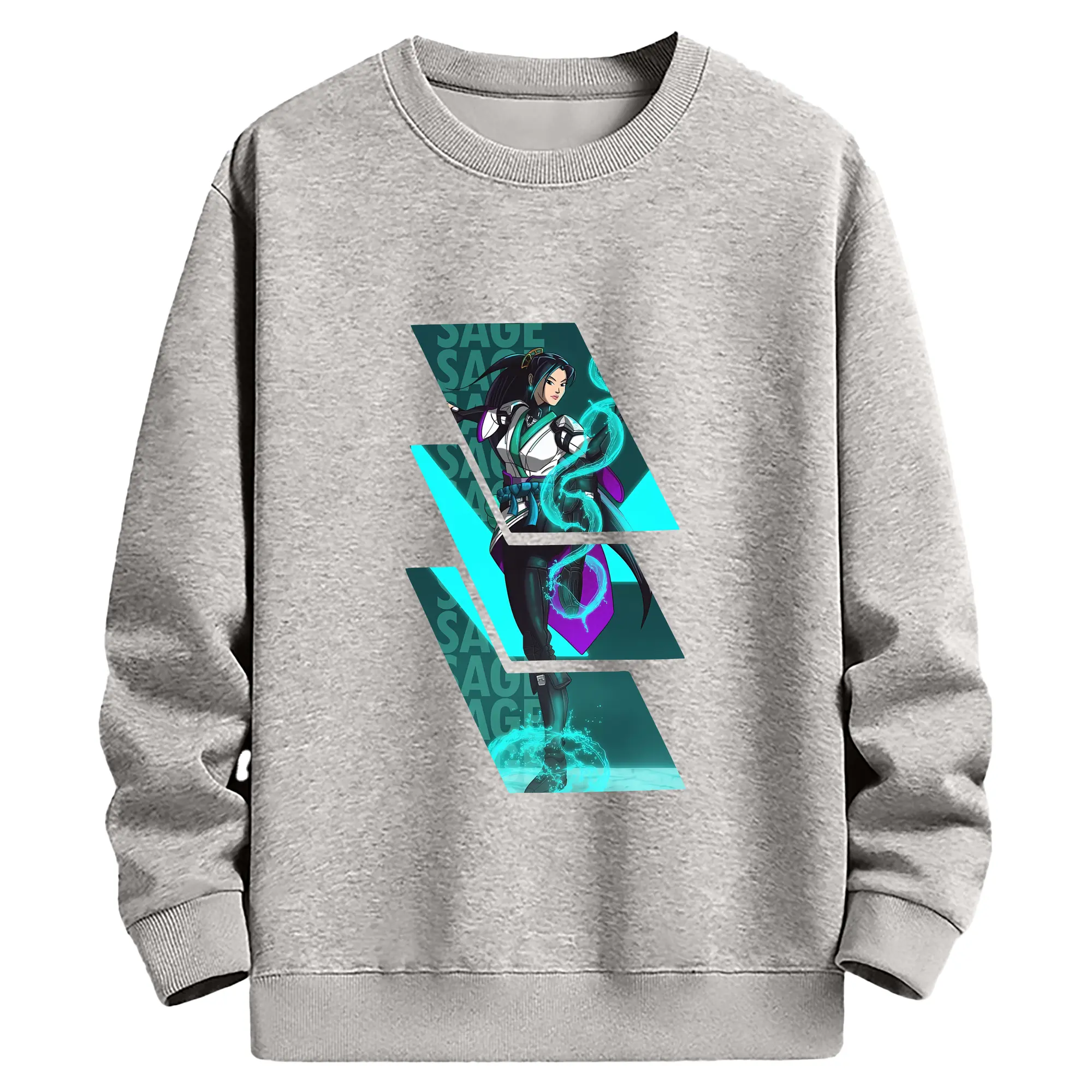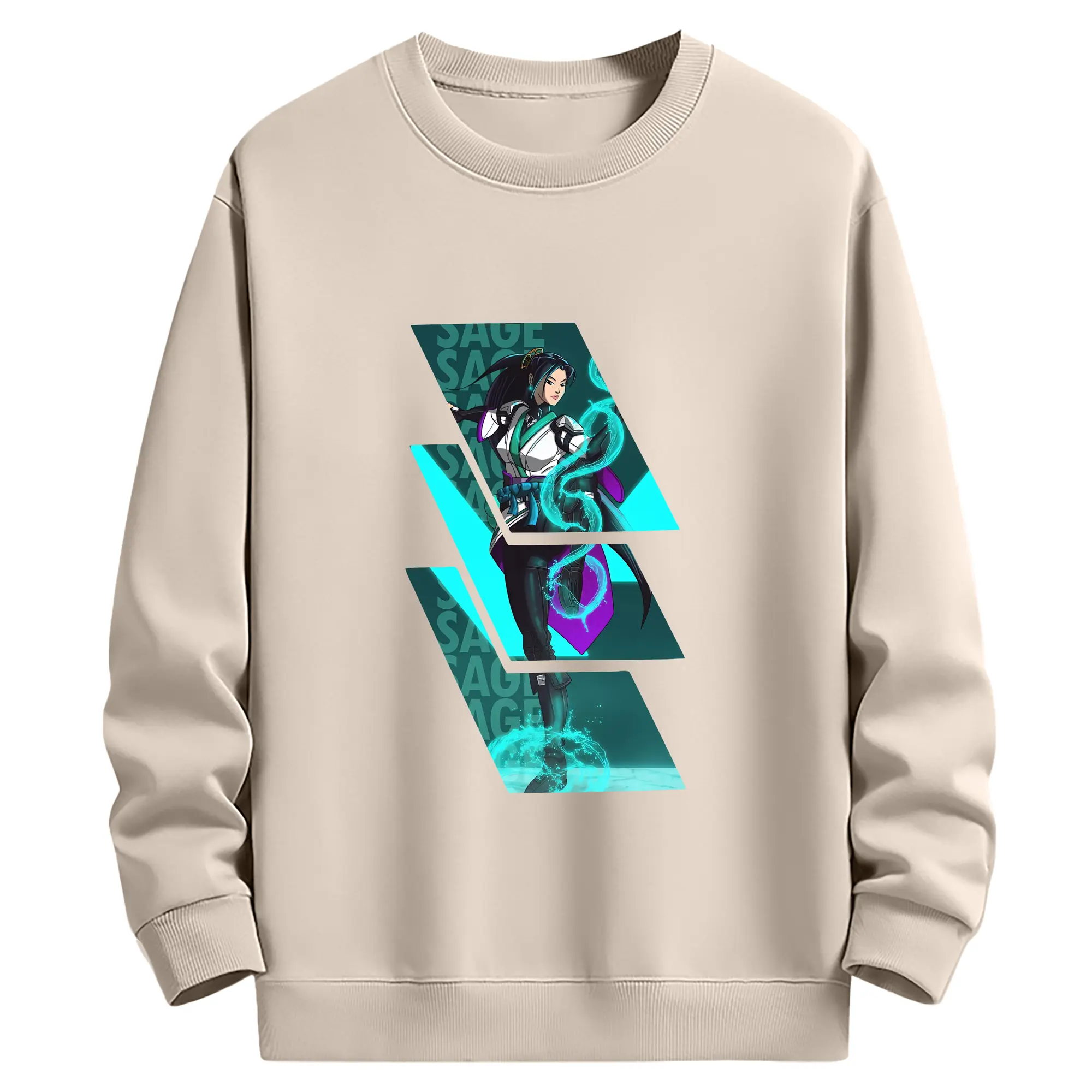 VALORANT グッズ,セージ - 薄手 クルーネック スウェット 裏毛260g · ポリエステル 春秋向け カジュアル 男女兼用 · トレーナー デイリー スポーツ 散歩に最適