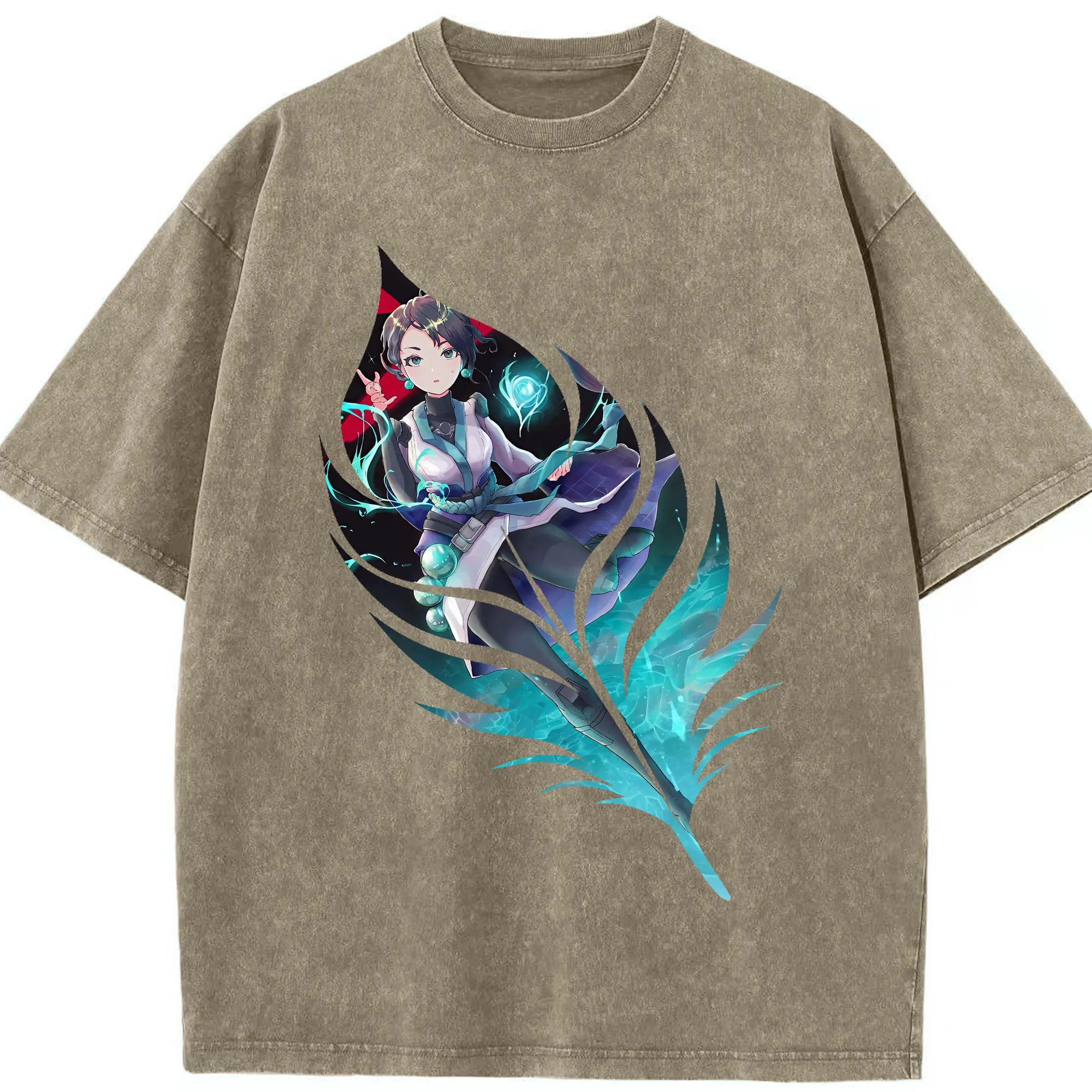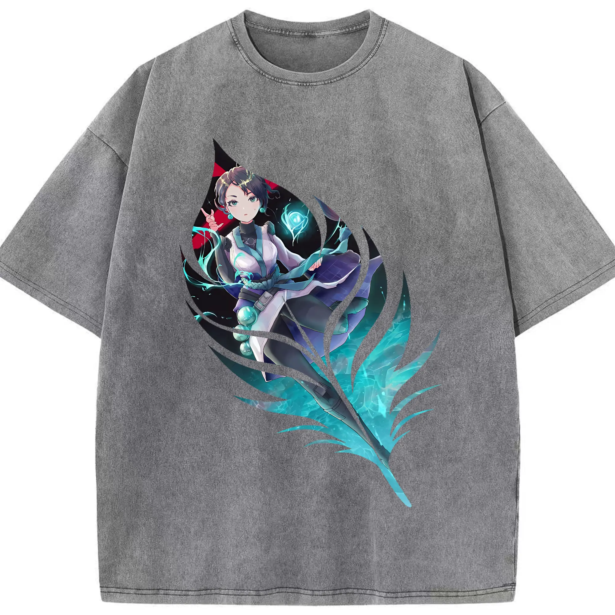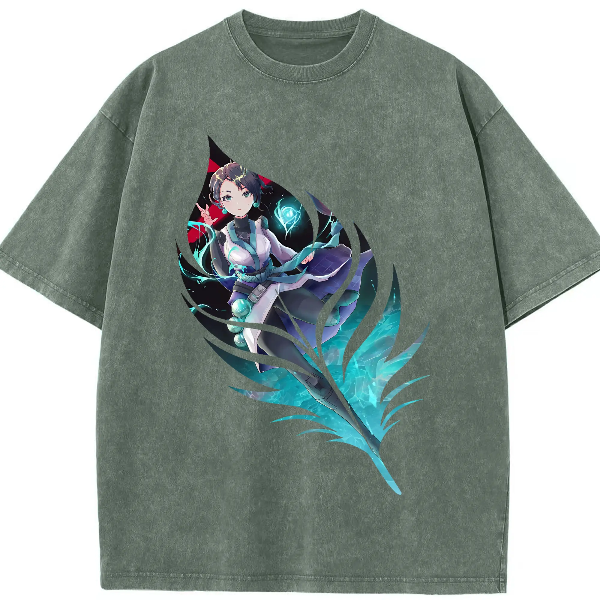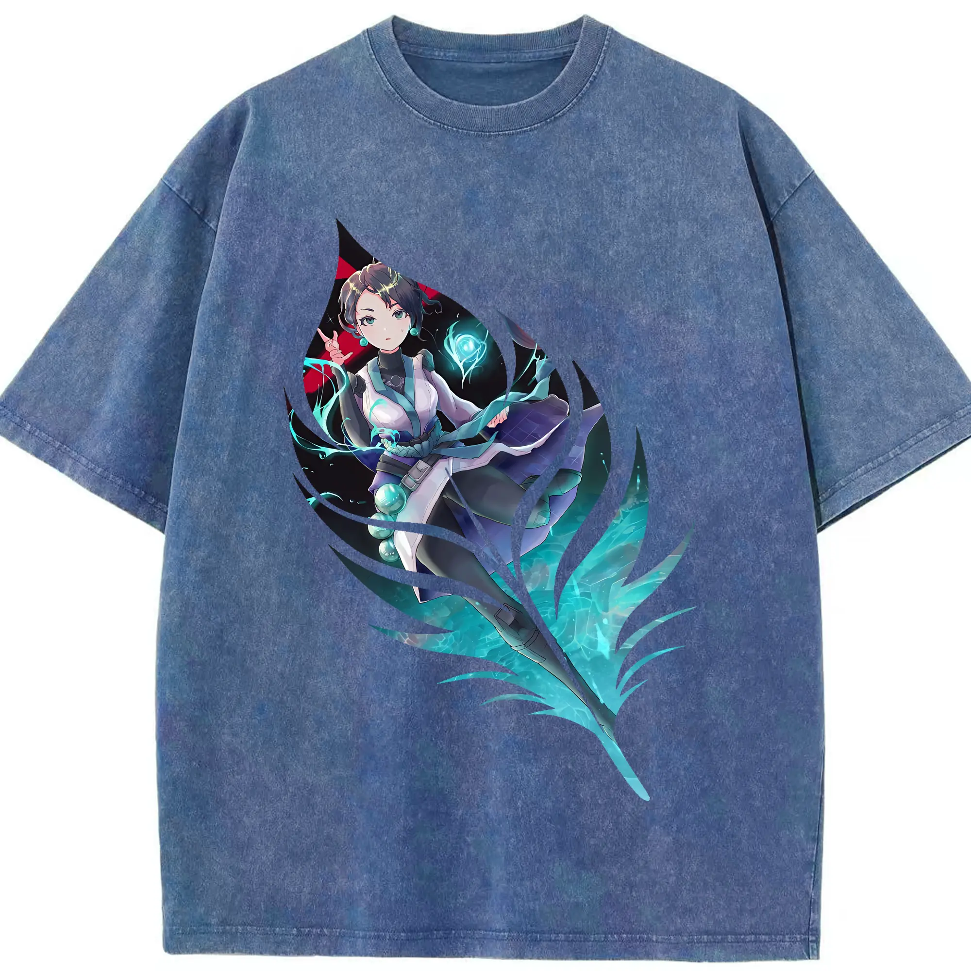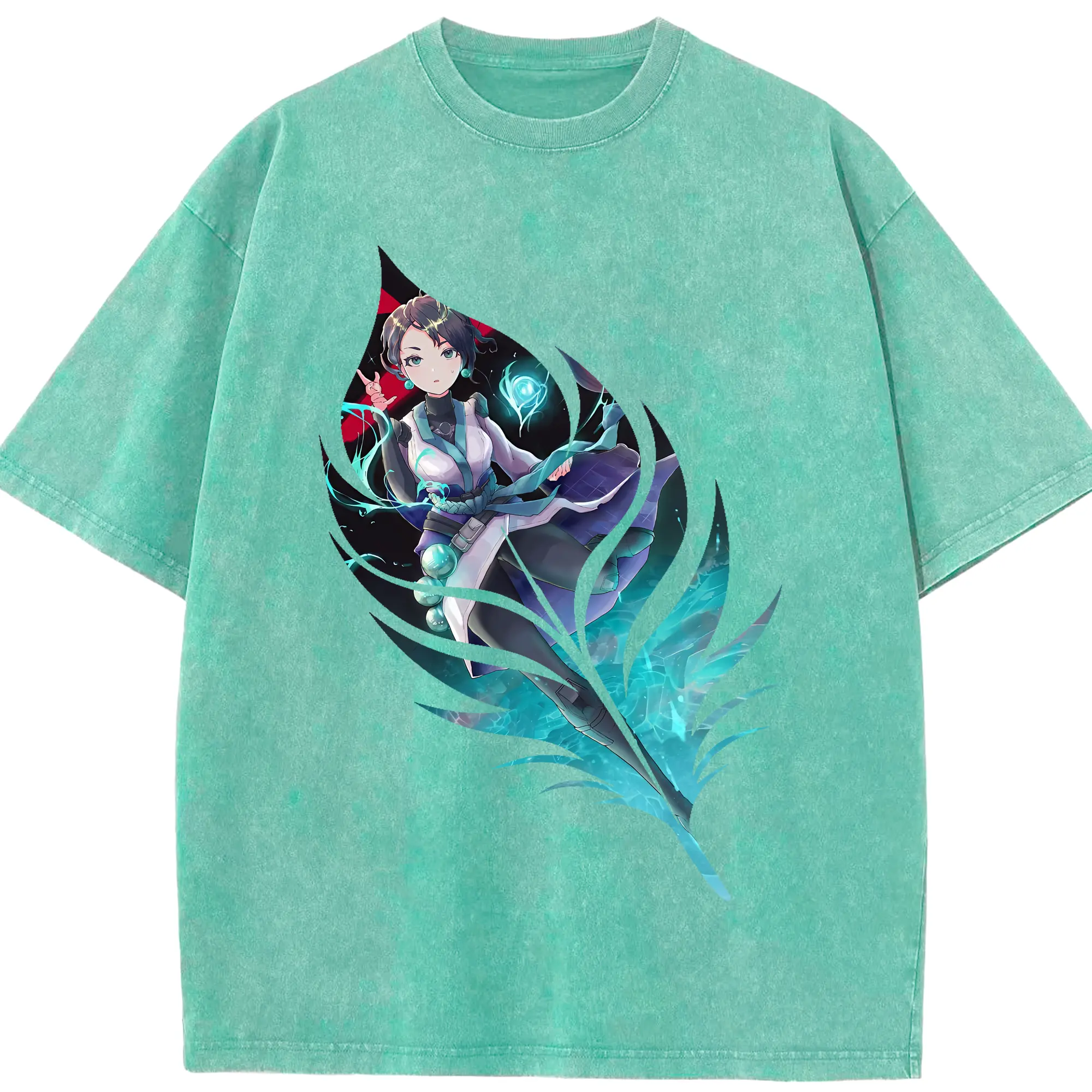 VALORANT グッズ,セージ - 綿100% ヴィンテージ風 半袖Tシャツ ・ 背面プリント ・ 柔らか肌触り ・ 通気性 快適 ・ スポーツ カジュアル 外出用