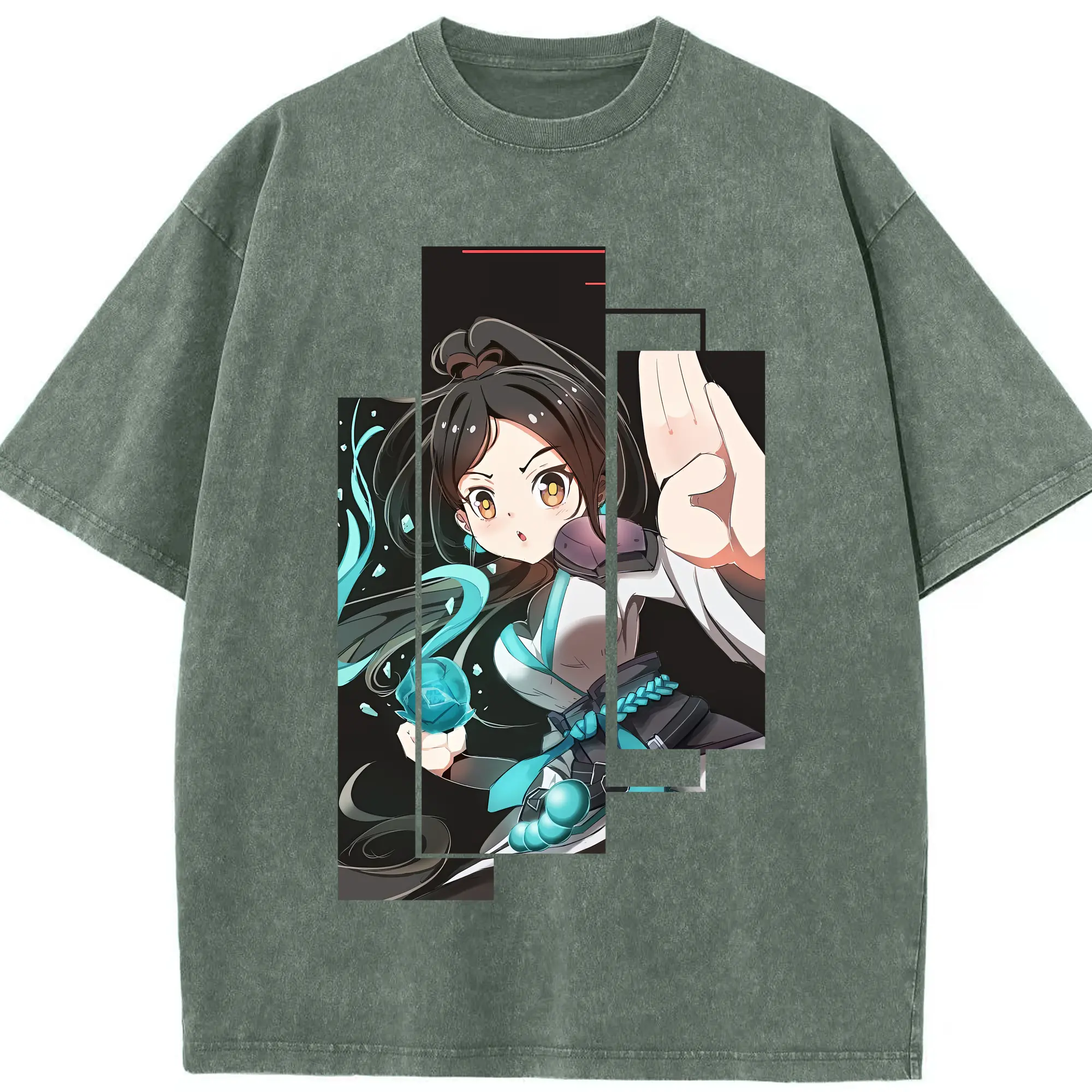 VALORANT グッズ,セージ - 綿100% ヴィンテージ風 半袖Tシャツ ・ 背面プリント ・ 柔らか肌触り ・ 通気性 快適 ・ スポーツ カジュアル 外出用
