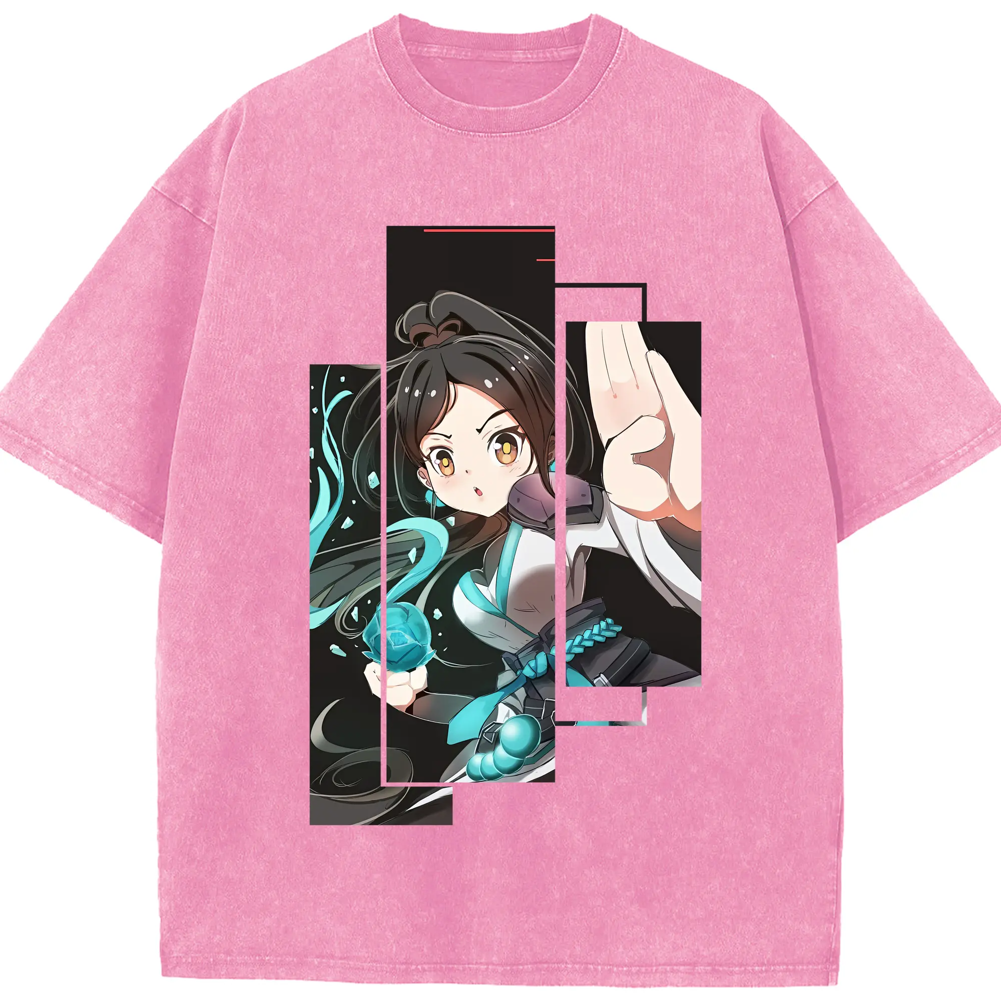 VALORANT グッズ,レイナ - 綿100% ヴィンテージ風 半袖Tシャツ ・ フロントプリント ・ 柔らか肌触り ・ 通気性 快適 ・ スポーツ カジュアル 外出用