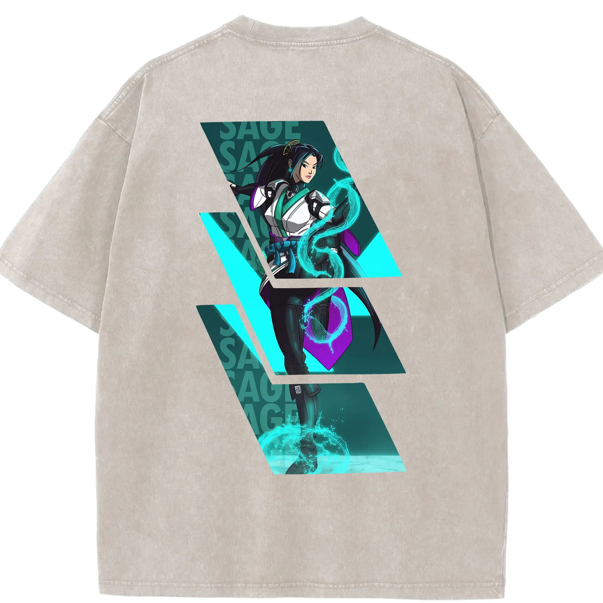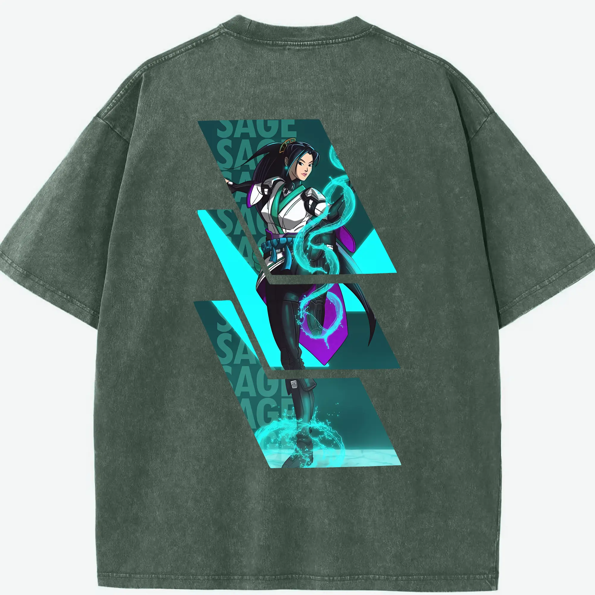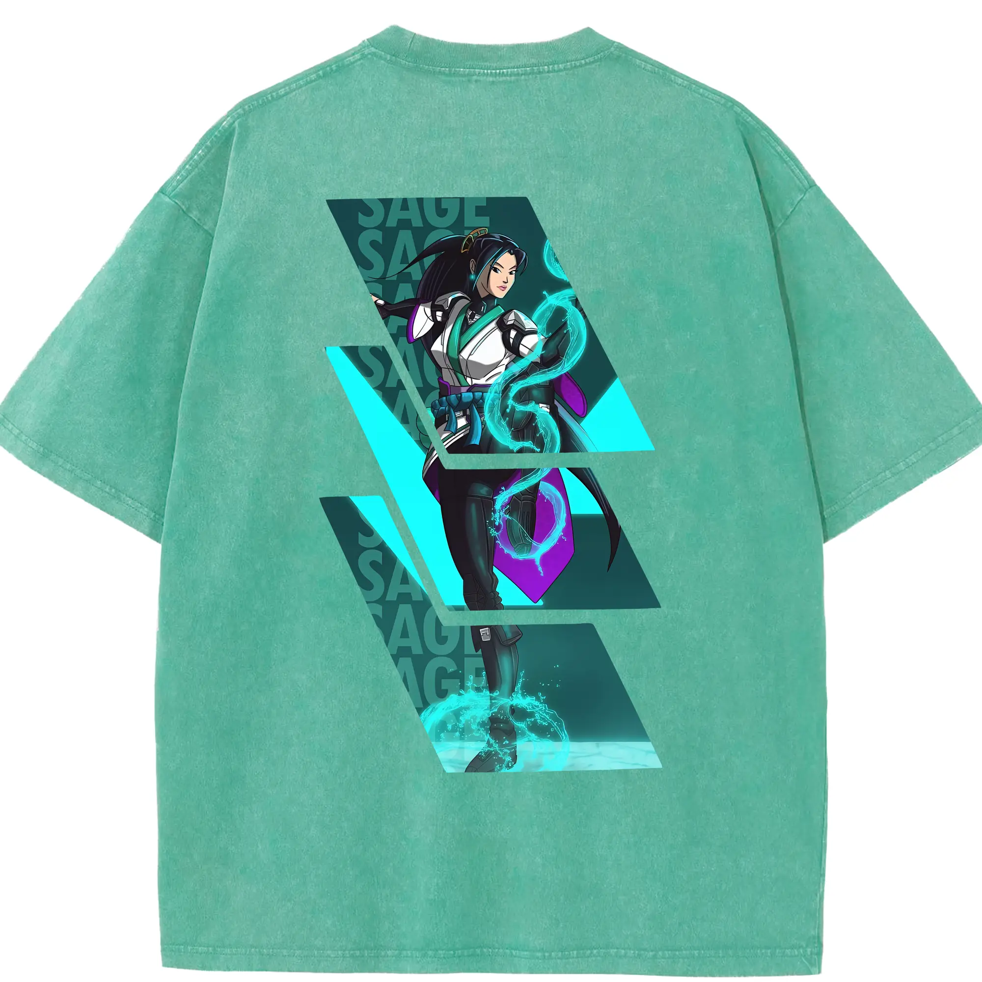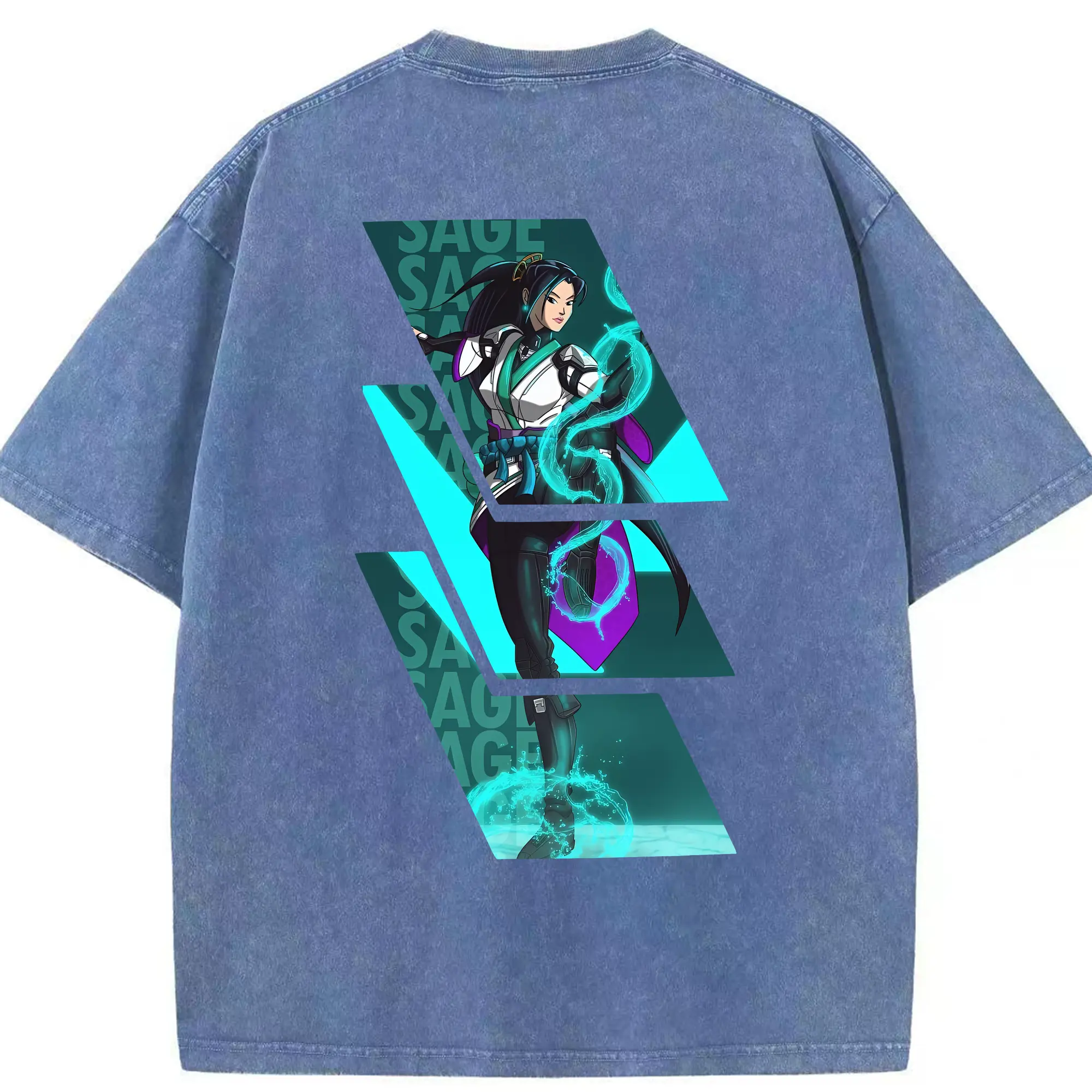 VALORANT グッズ,セージ - 綿100% ヴィンテージ風 半袖Tシャツ ・ フロントプリント ・ 柔らか肌触り ・ 通気性 快適 ・ スポーツ カジュアル 外出用