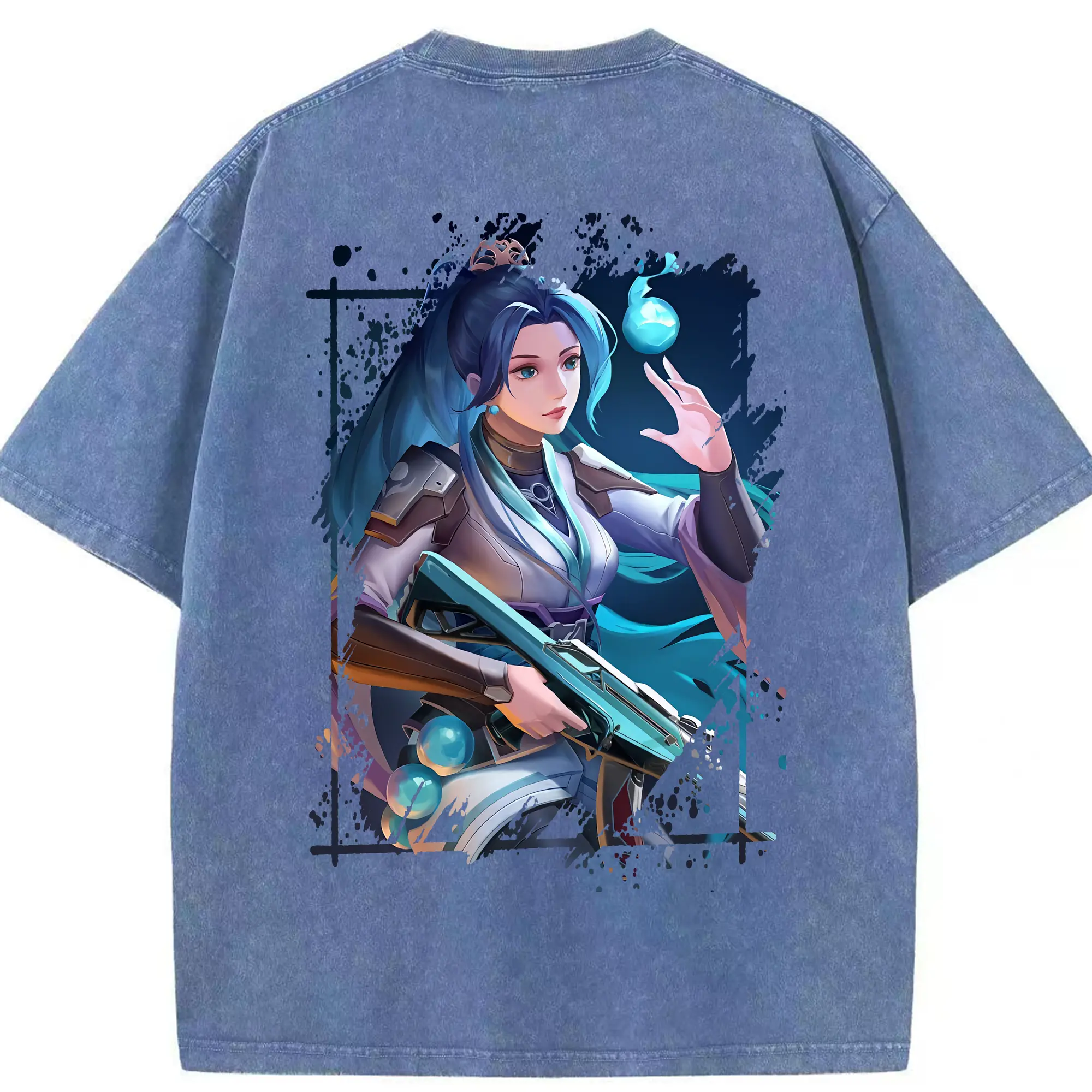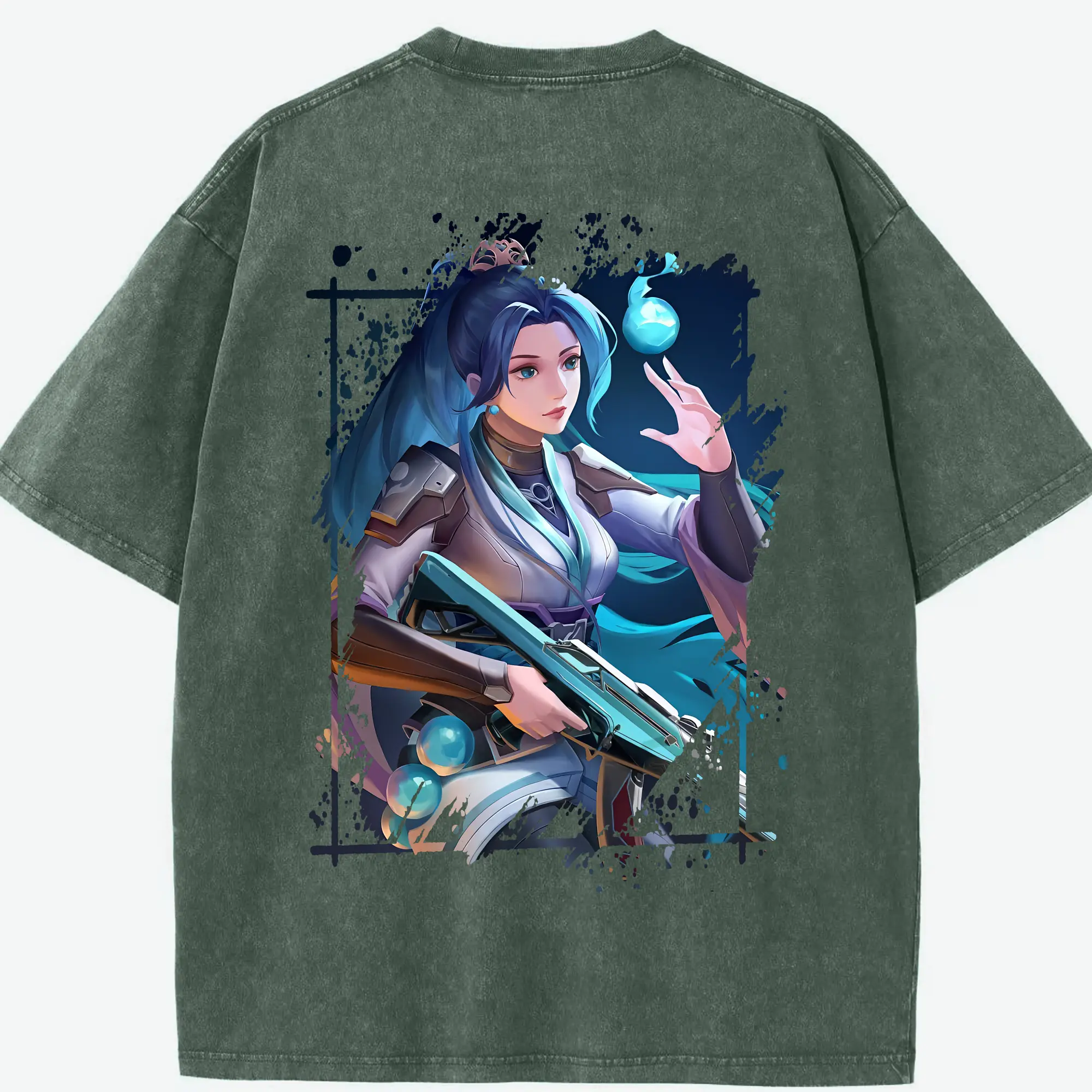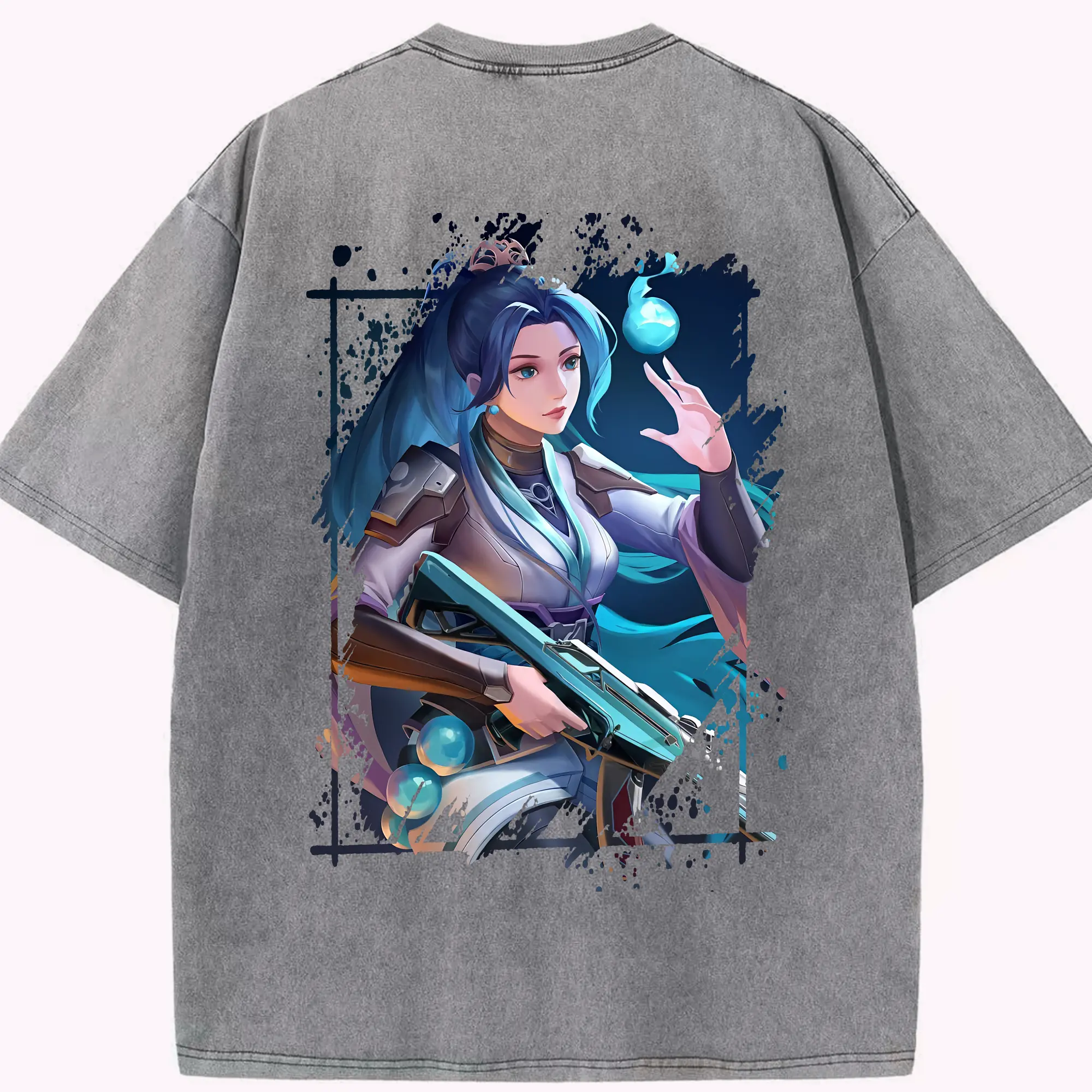 VALORANT グッズ,セージ - 綿100% ヴィンテージ風 半袖Tシャツ ・ フロントプリント ・ 柔らか肌触り ・ 通気性 快適 ・ スポーツ カジュアル 外出用