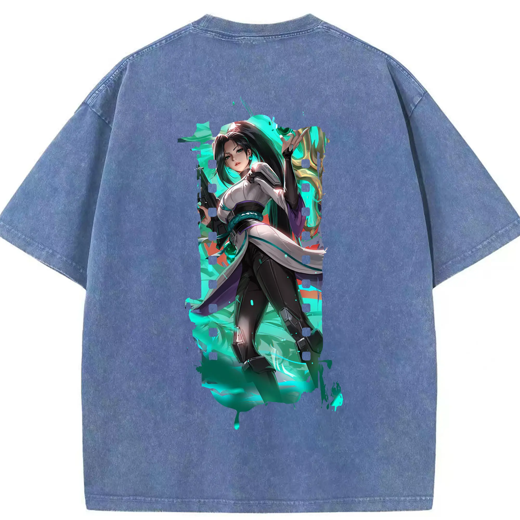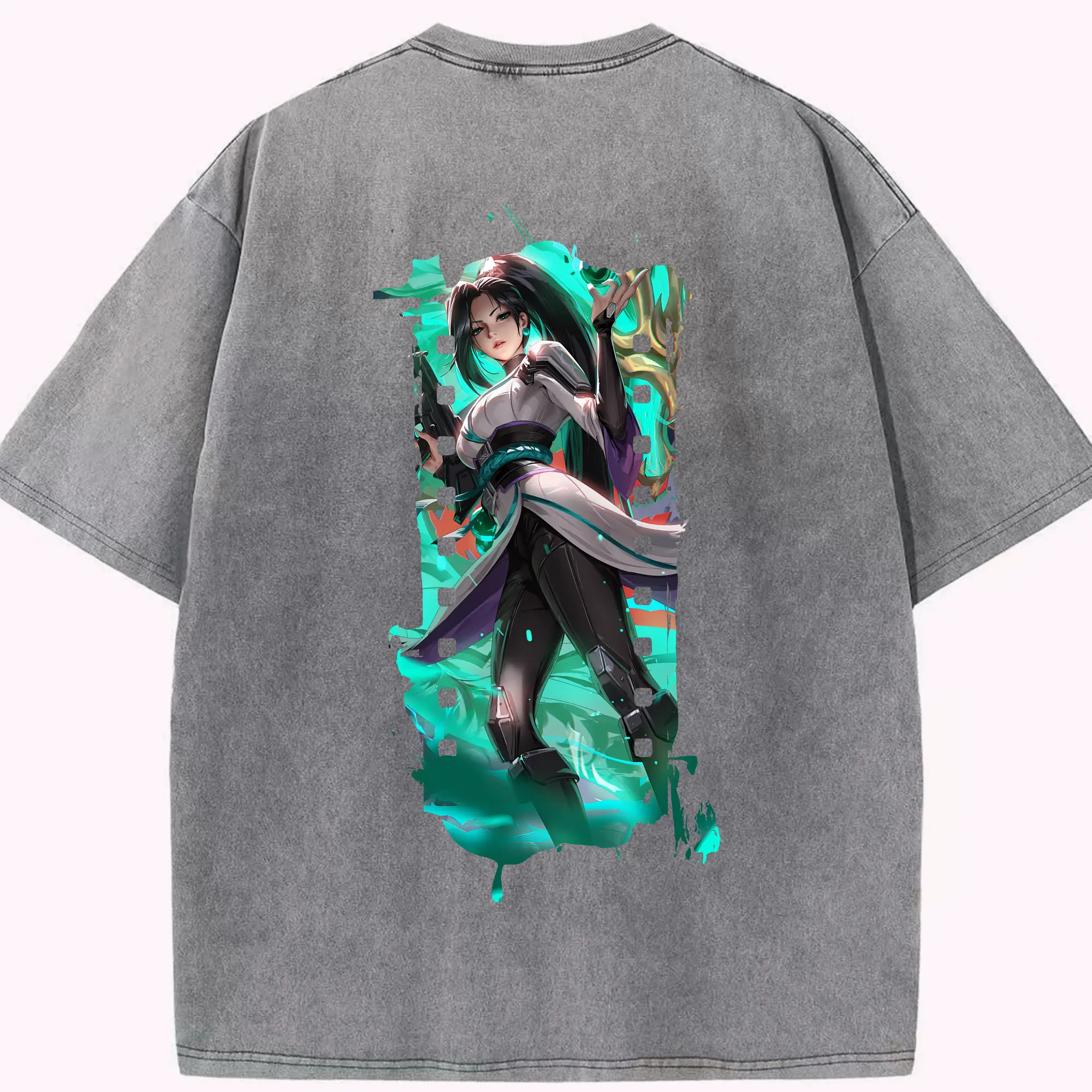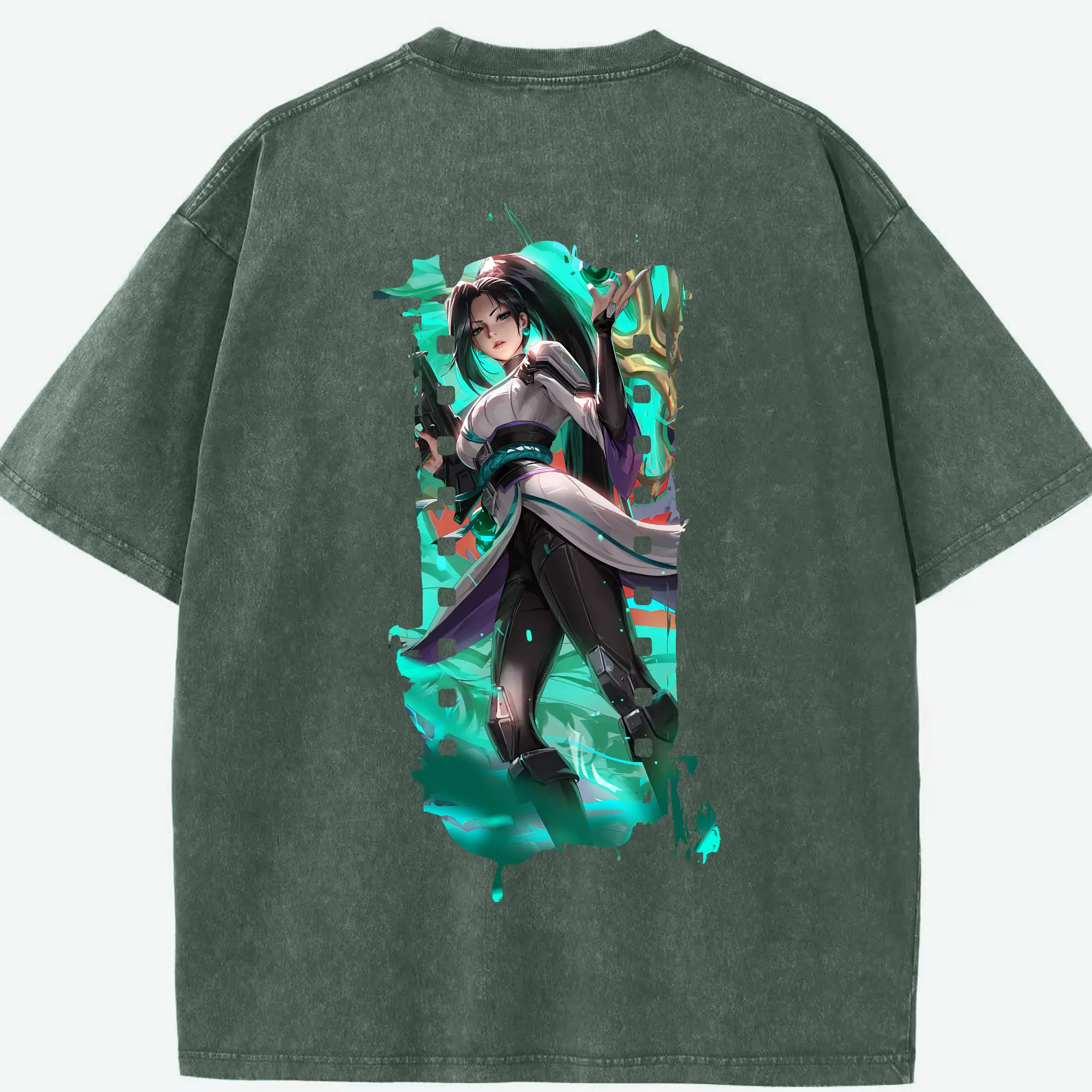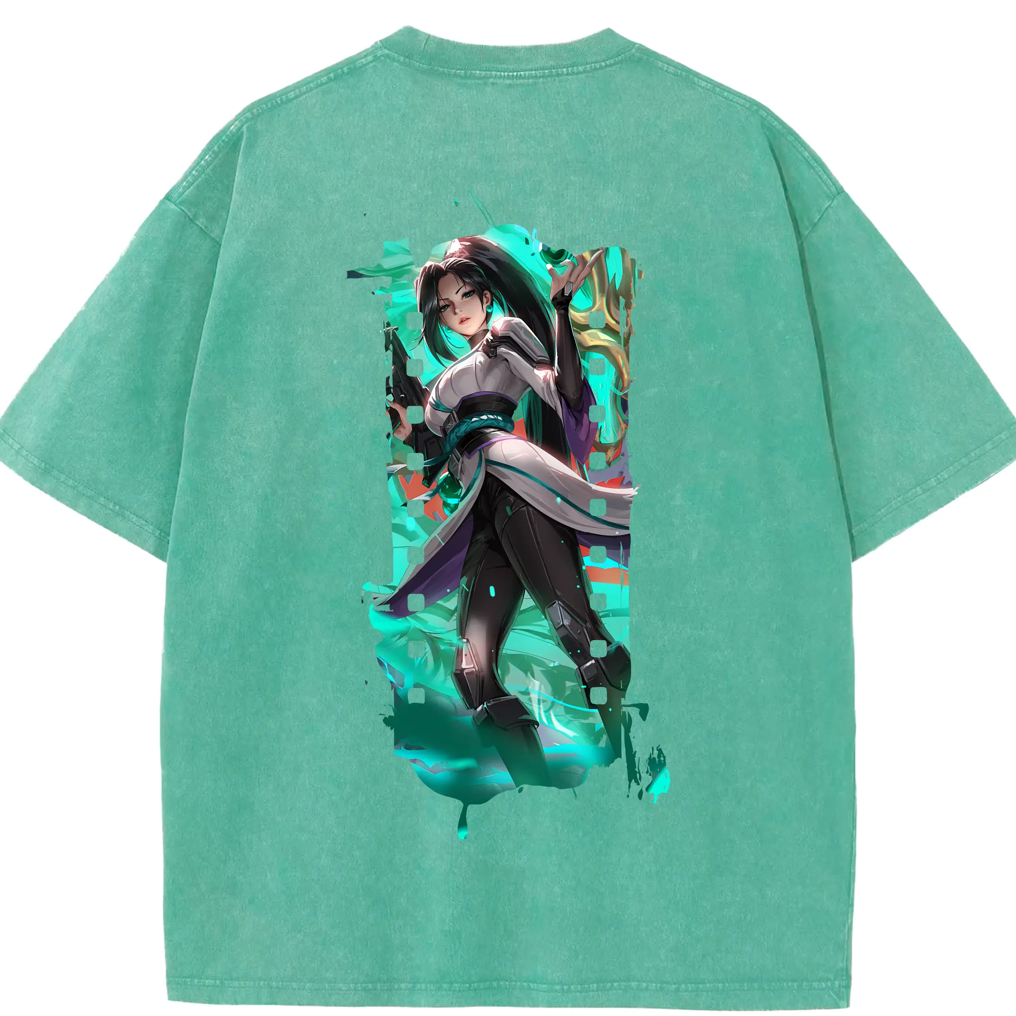 VALORANT グッズ,セージ - 綿100% ヴィンテージ風 半袖Tシャツ ・ フロントプリント ・ 柔らか肌触り ・ 通気性 快適 ・ スポーツ カジュアル 外出用