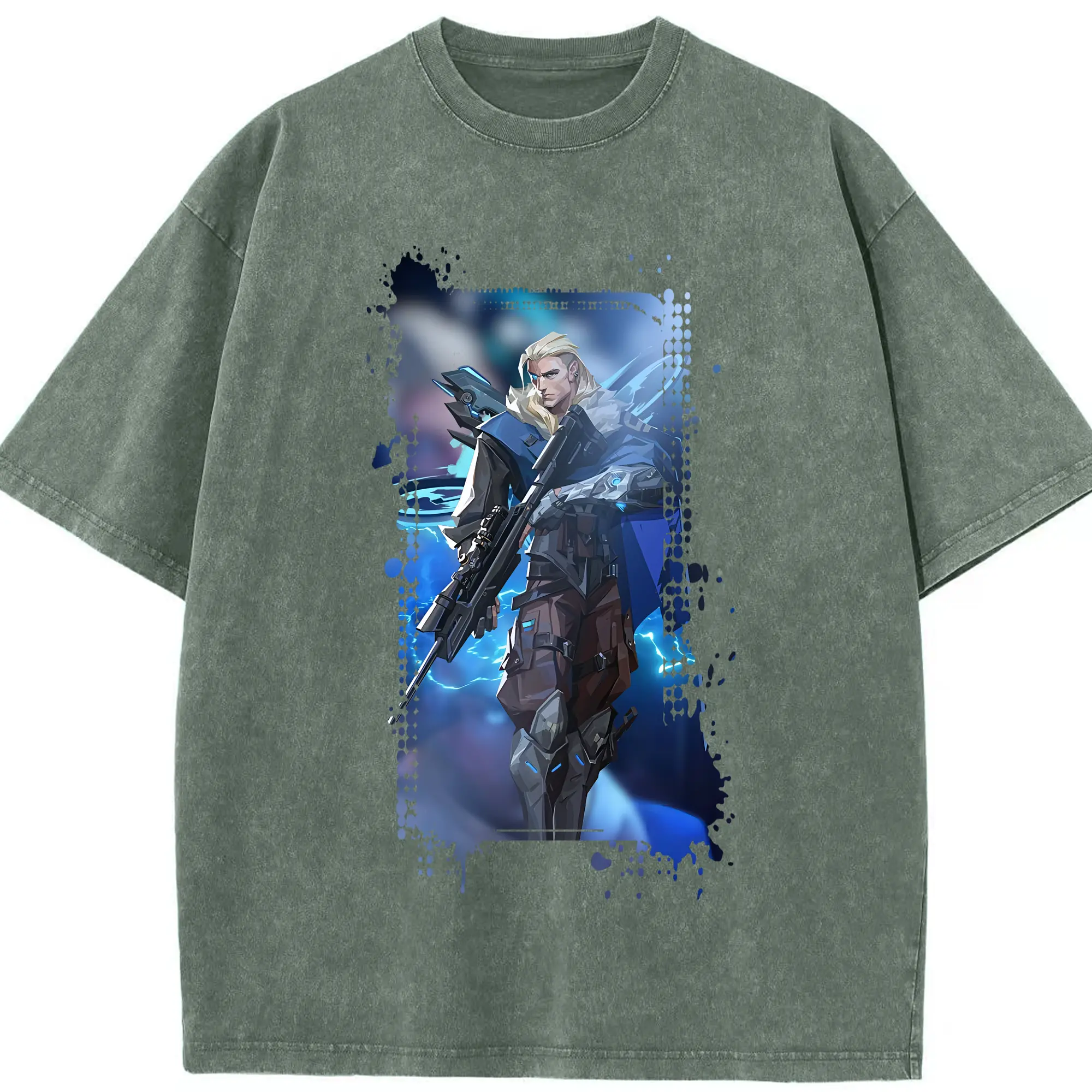 VALORANT グッズ,セージ - 綿100% ヴィンテージ風 半袖Tシャツ ・ フロントプリント ・ 柔らか肌触り ・ 通気性 快適 ・ スポーツ カジュアル 外出用