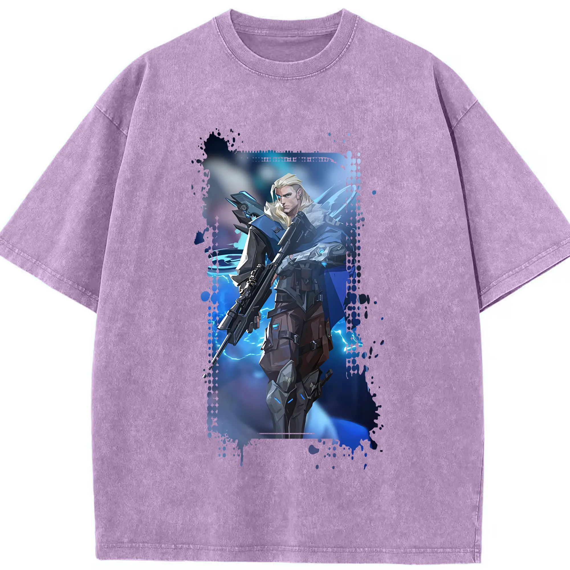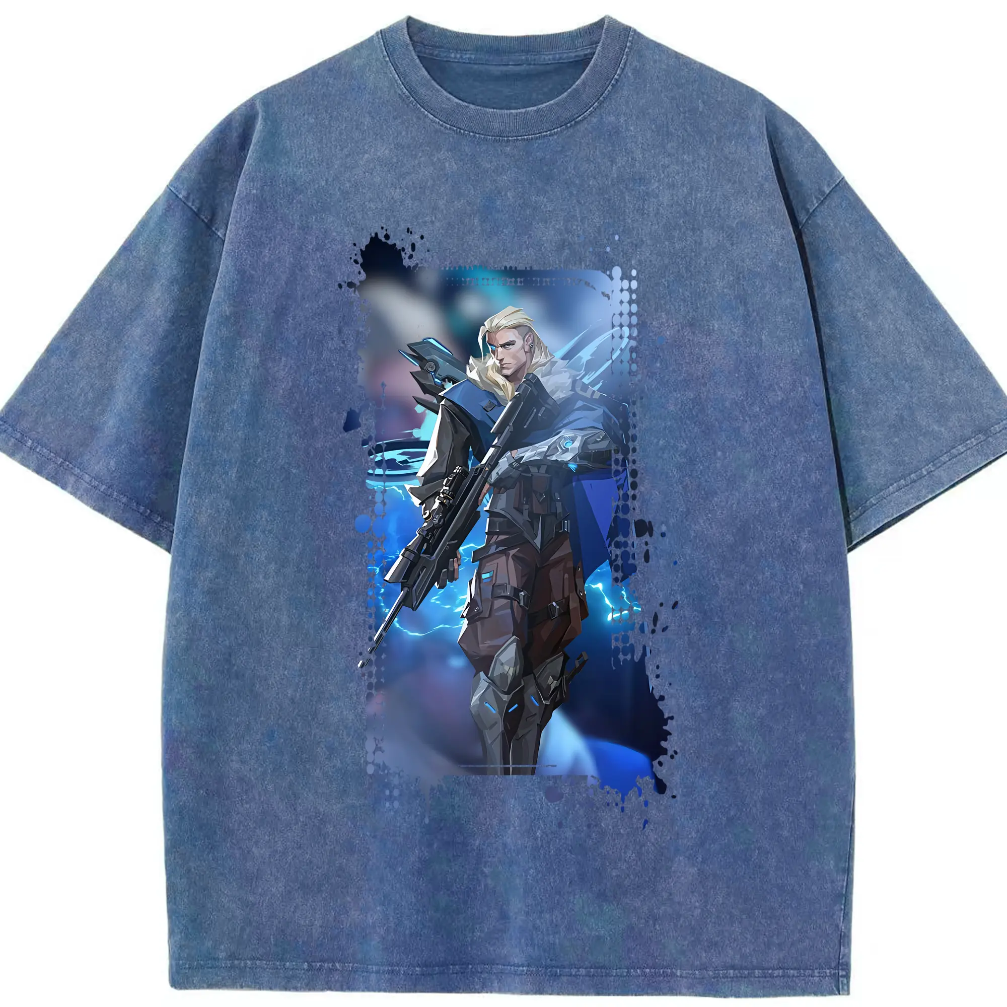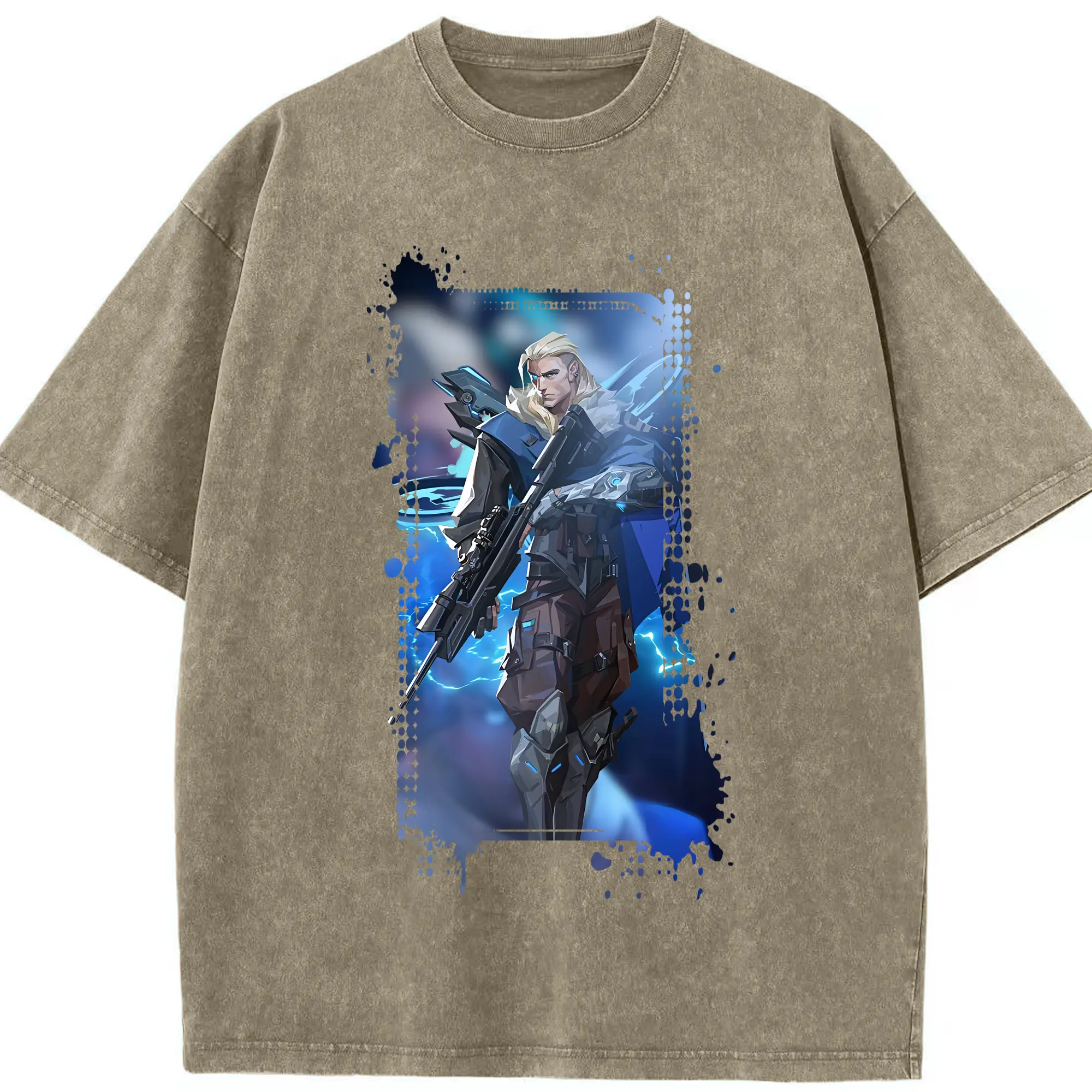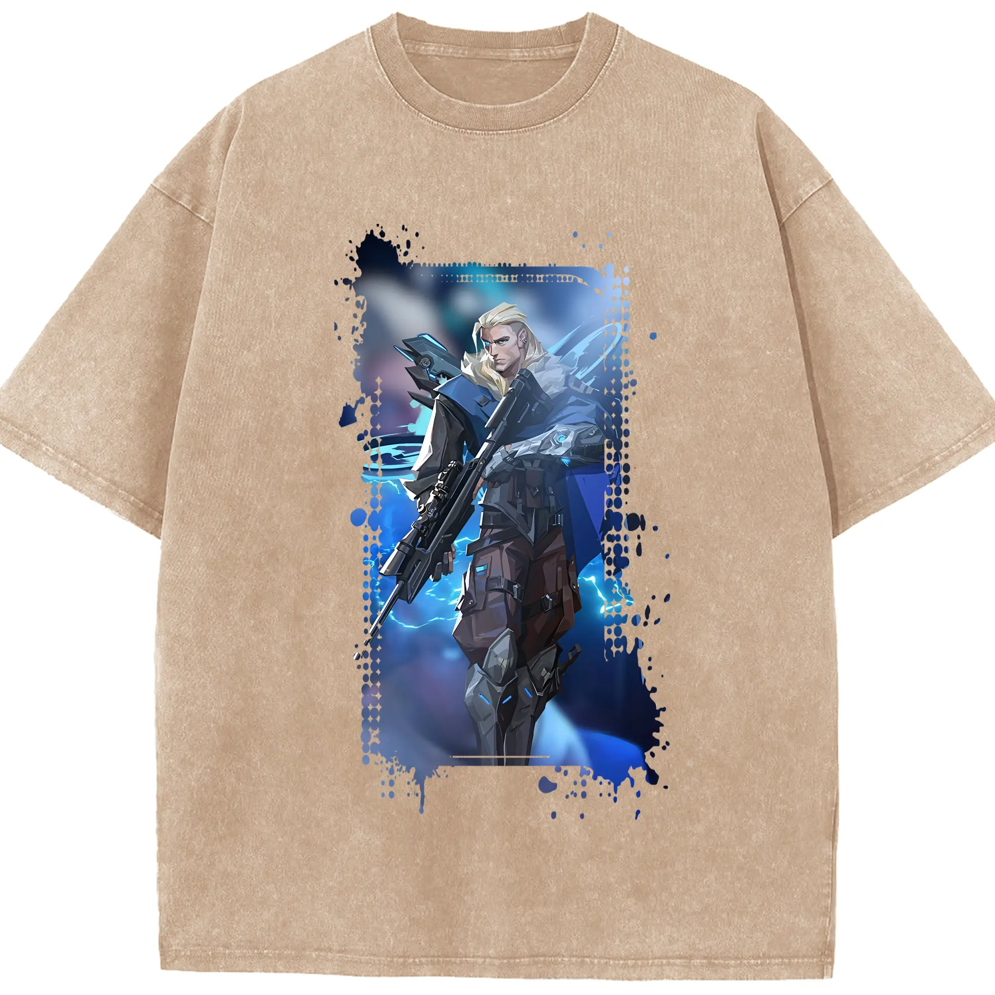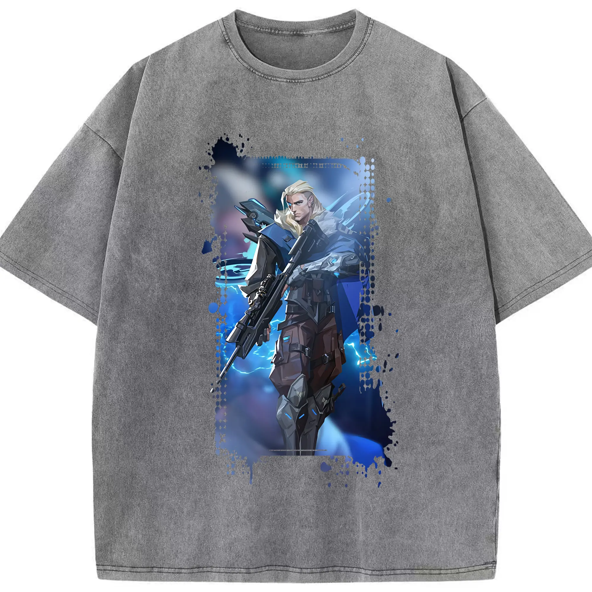 VALORANT グッズ,ソーヴァ - 綿100% ヴィンテージ風 半袖Tシャツ ・ 背面プリント ・ 柔らか肌触り ・ 通気性 快適 ・ スポーツ カジュアル 外出用