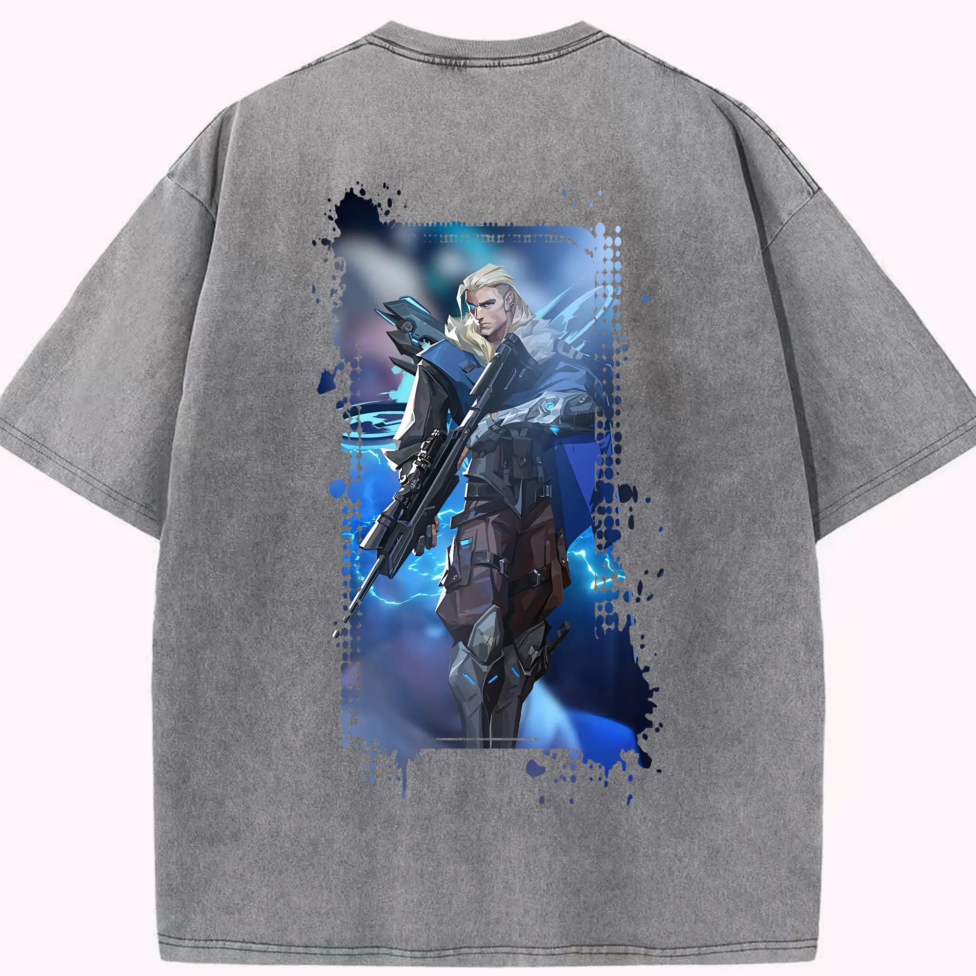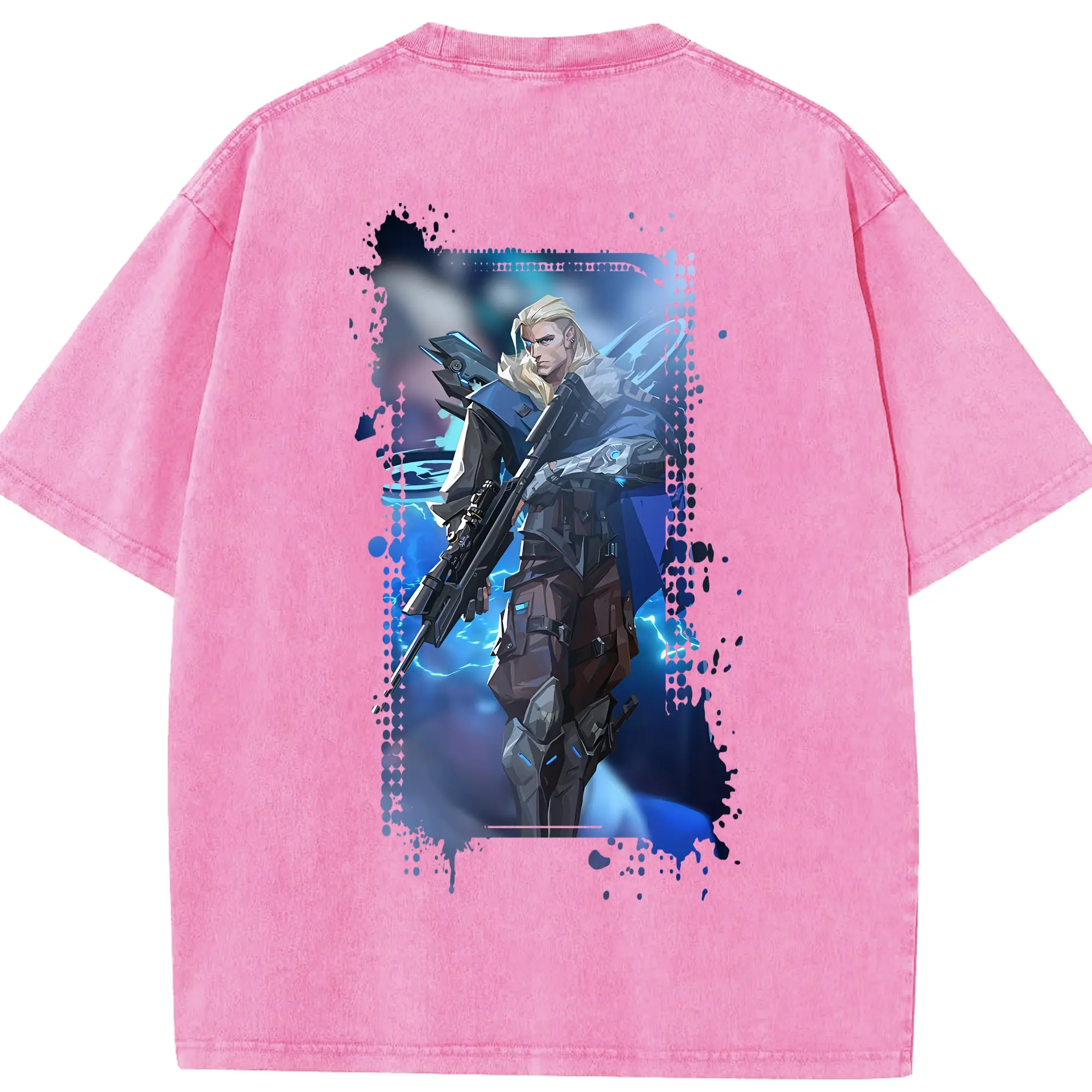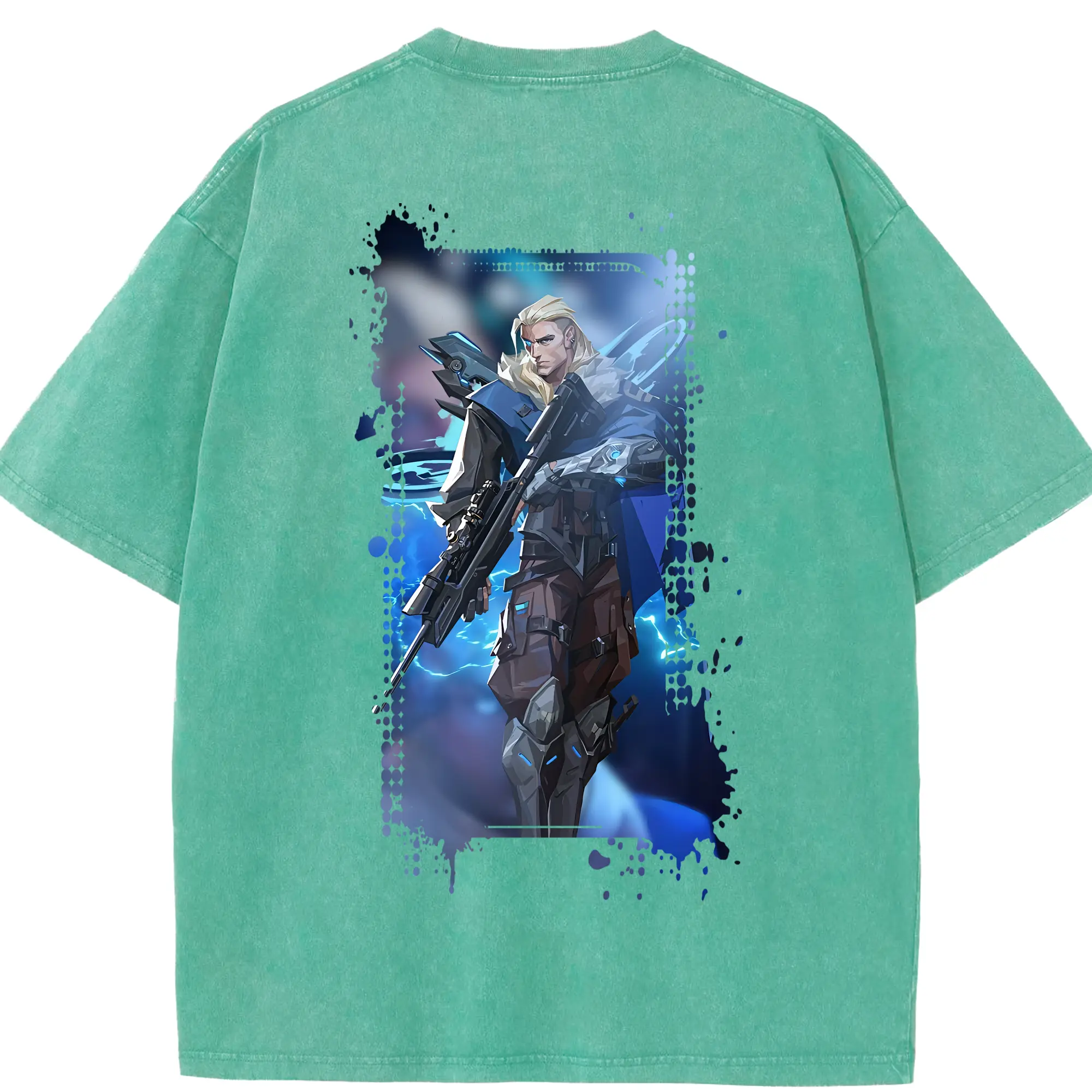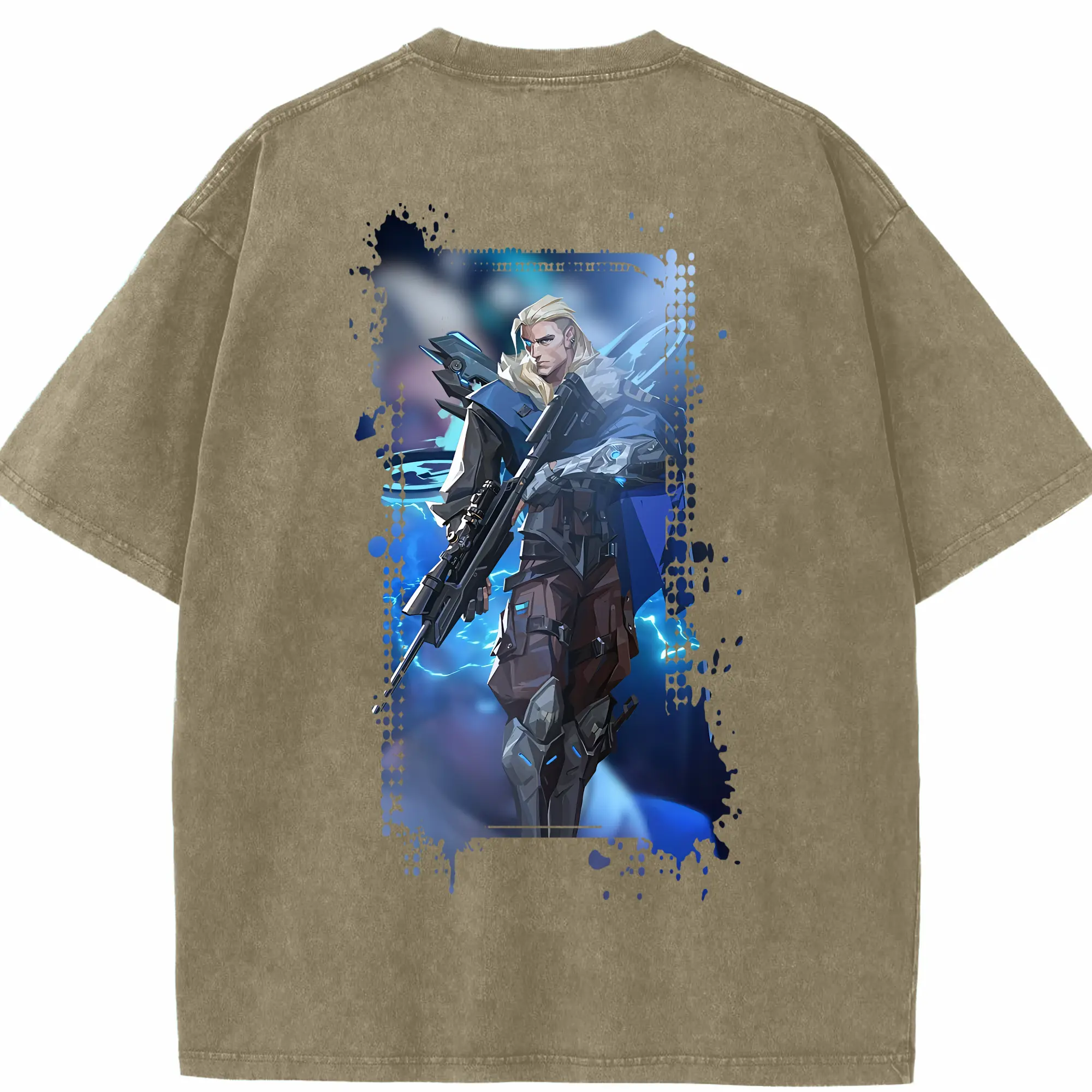 VALORANT グッズ,ソーヴァ - 綿100% ヴィンテージ風 半袖Tシャツ ・ フロントプリント ・ 柔らか肌触り ・ 通気性 快適 ・ スポーツ カジュアル 外出用