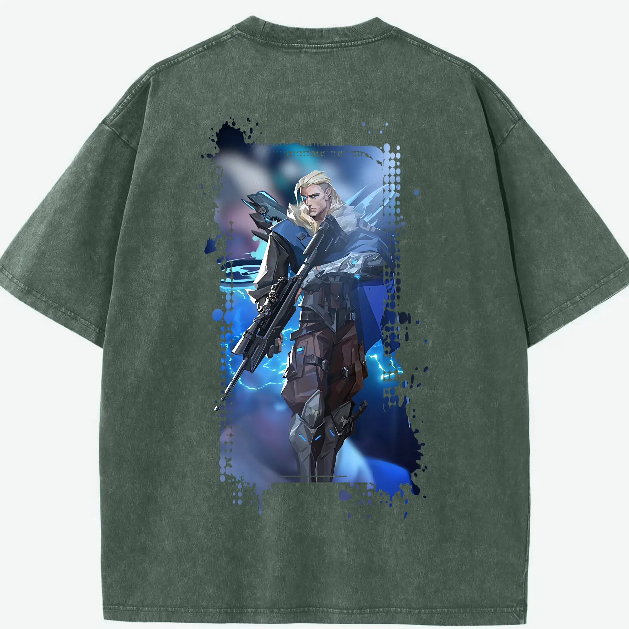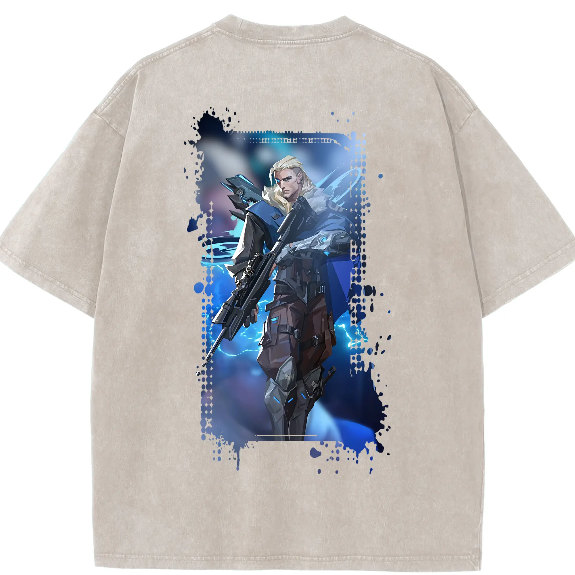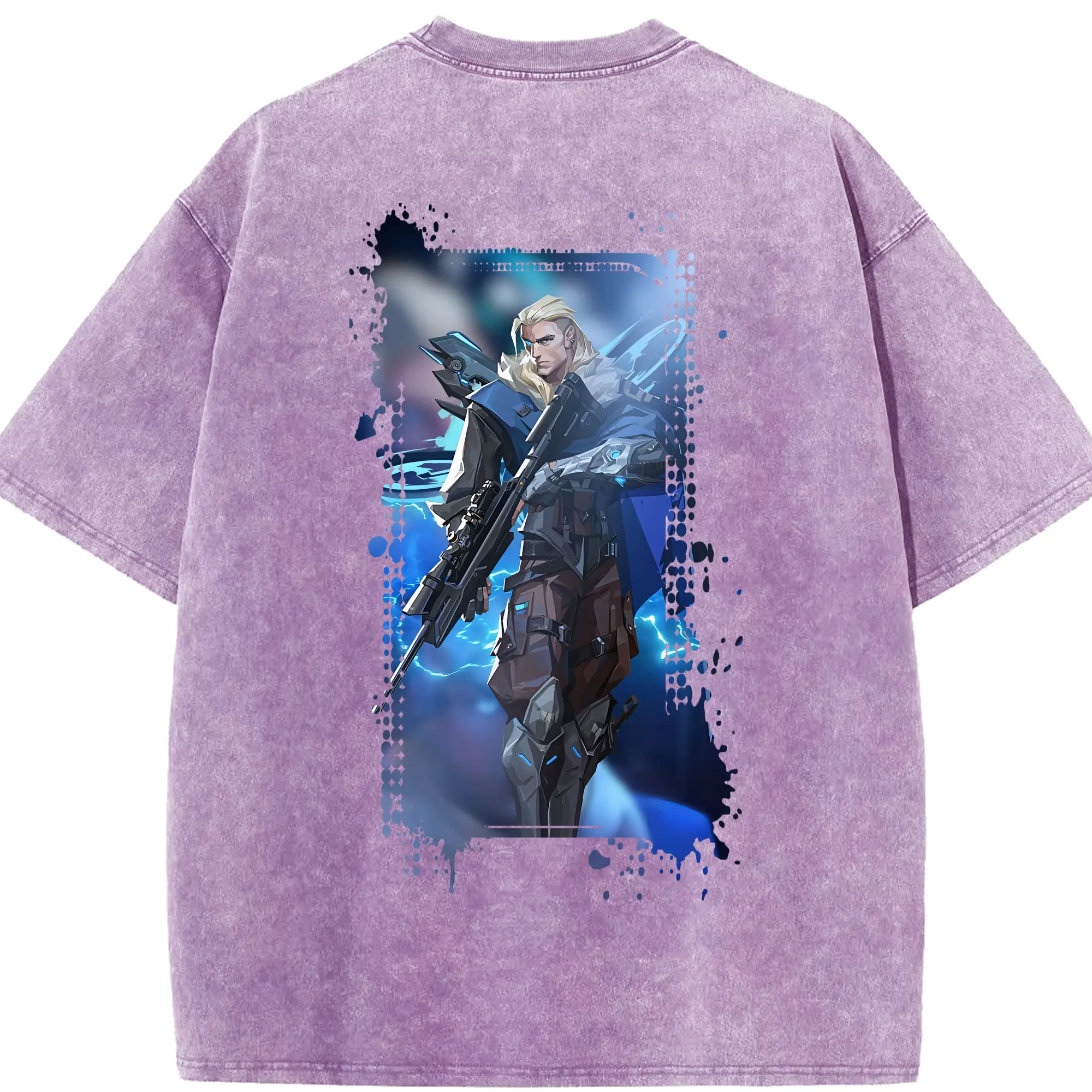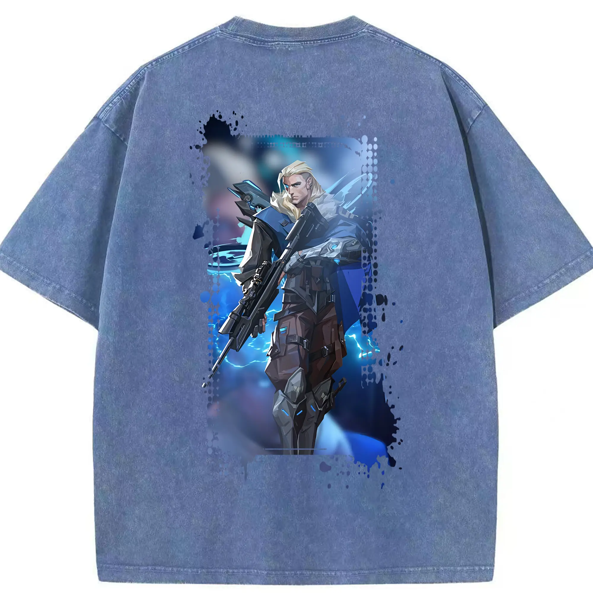VALORANT グッズ,ソーヴァ - 綿100% ヴィンテージ風 半袖Tシャツ ・ フロントプリント ・ 柔らか肌触り ・ 通気性 快適 ・ スポーツ カジュアル 外出用