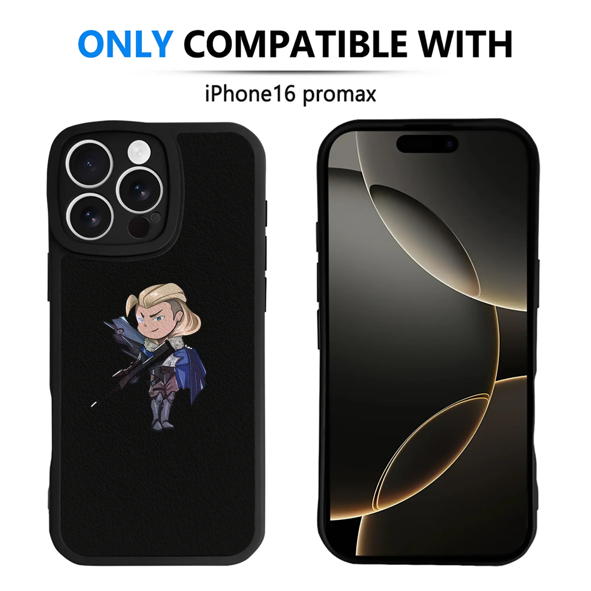 VALORANT グッズ,ソーヴァ - IPhone 16シリーズ対応 ・ シリコンスマホケース ・ レザー調 ・ 高精度フィット ・ 耐衝撃 ・ ワイヤレス充電対応 ・ 精密カット