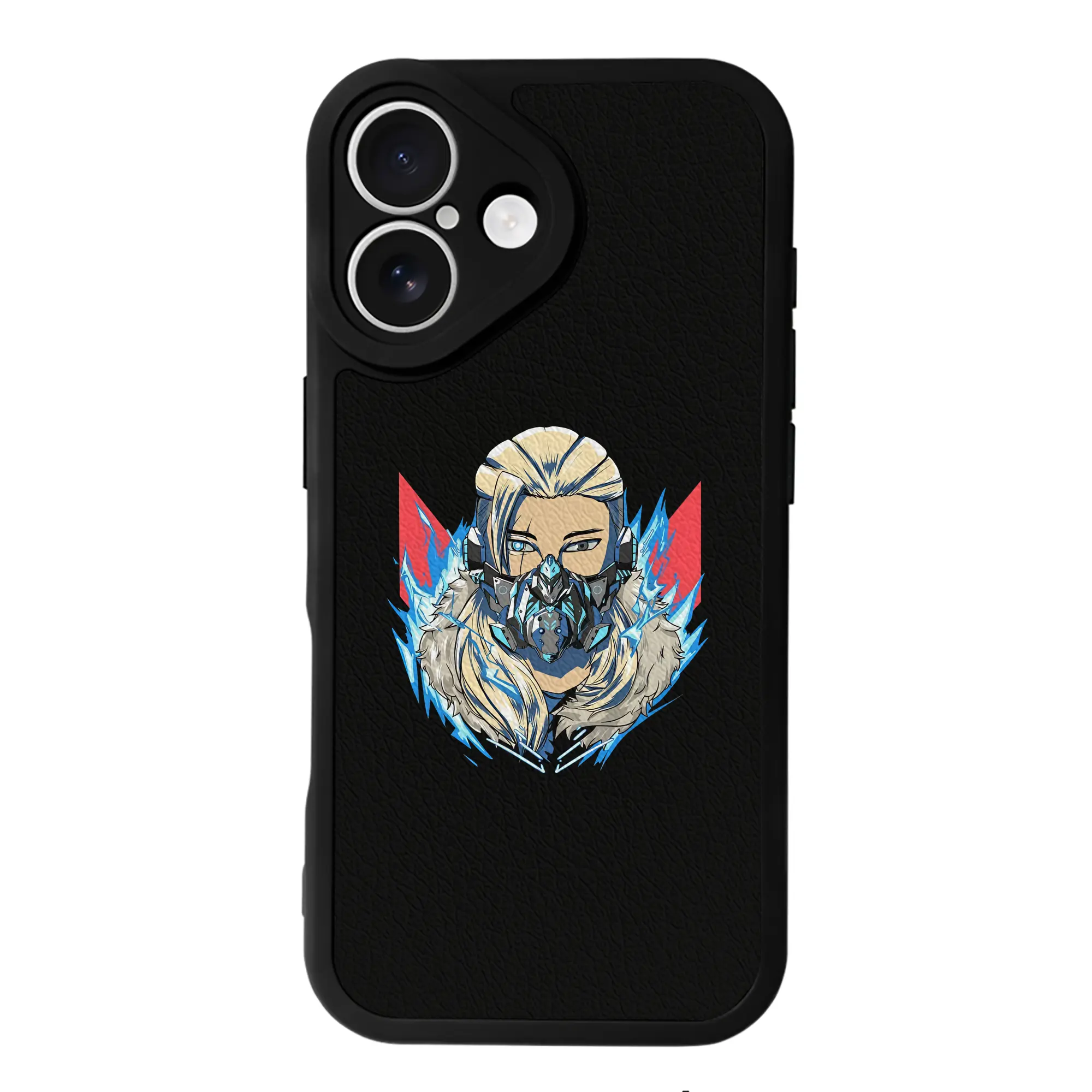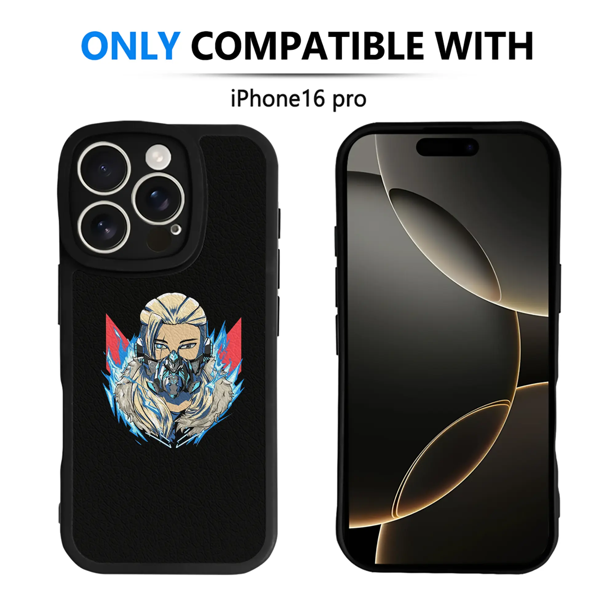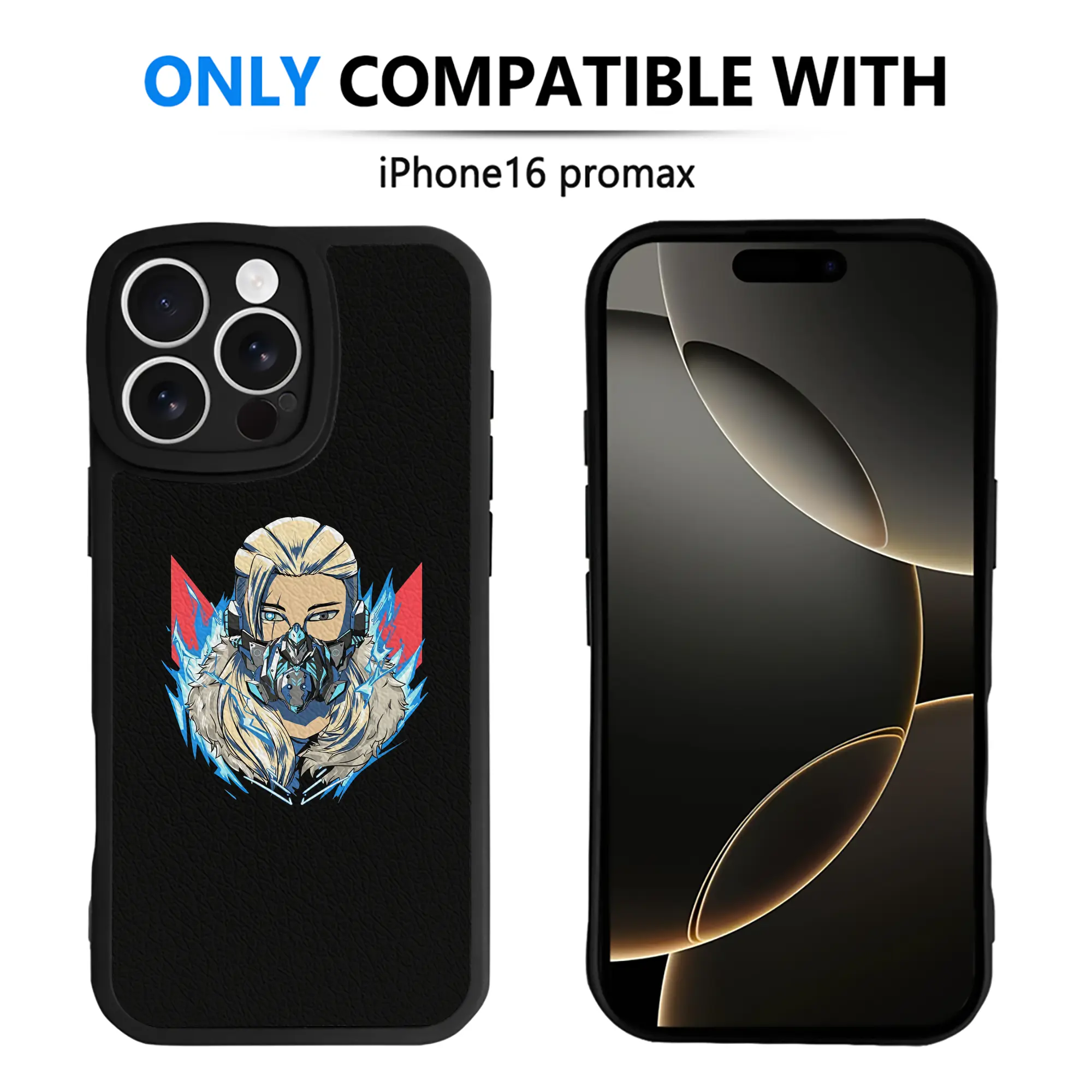 VALORANT グッズ,ソーヴァ - IPhone 16シリーズ対応 ・ シリコンスマホケース ・ レザー調 ・ 高精度フィット ・ 耐衝撃 ・ ワイヤレス充電対応 ・ 精密カット