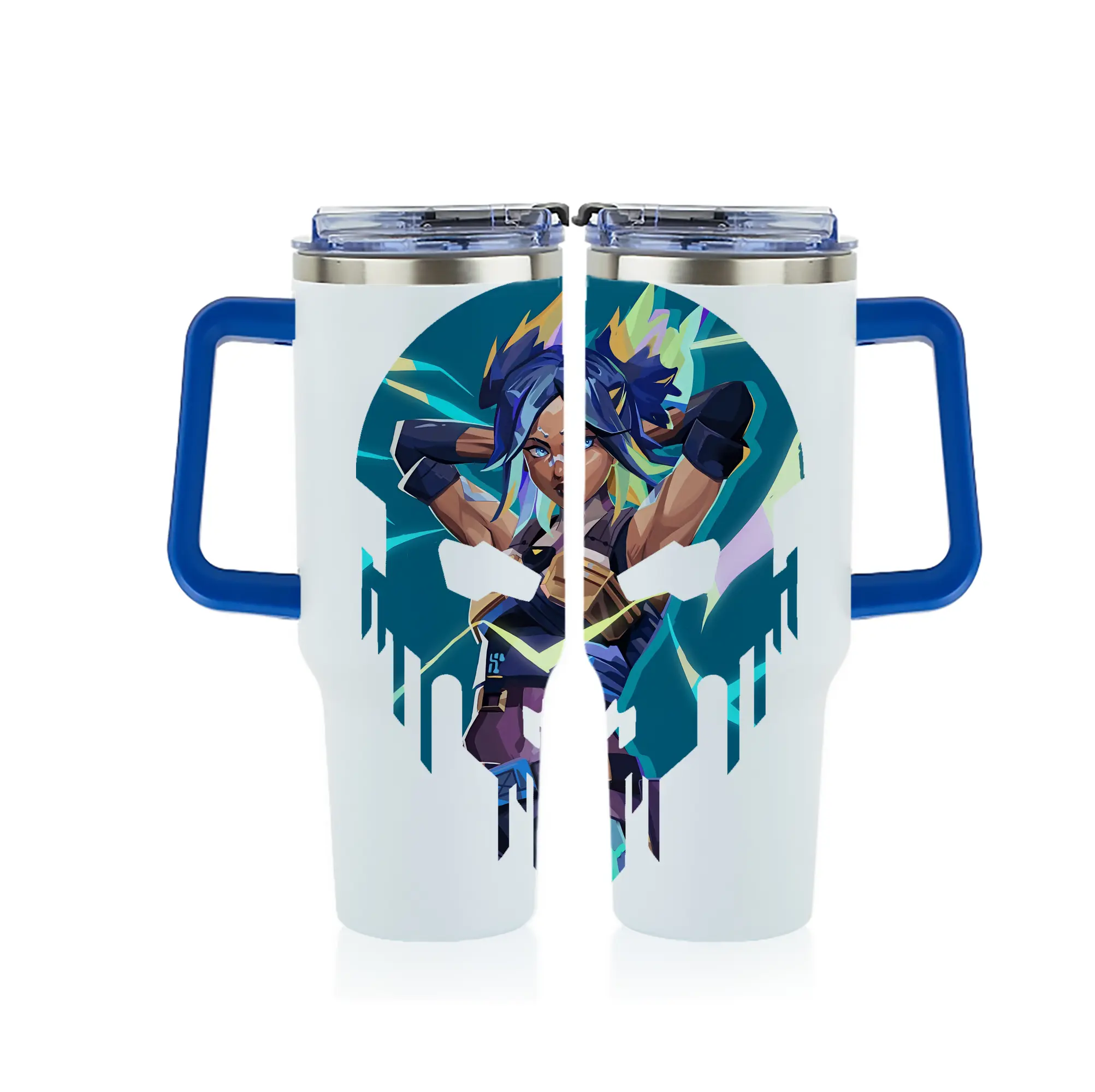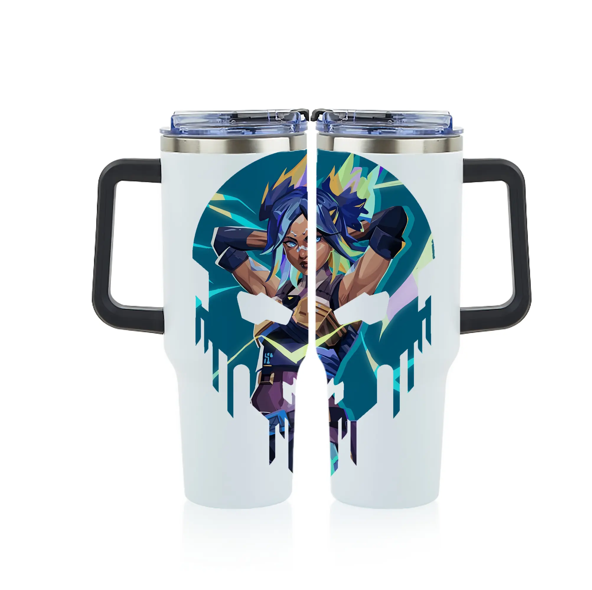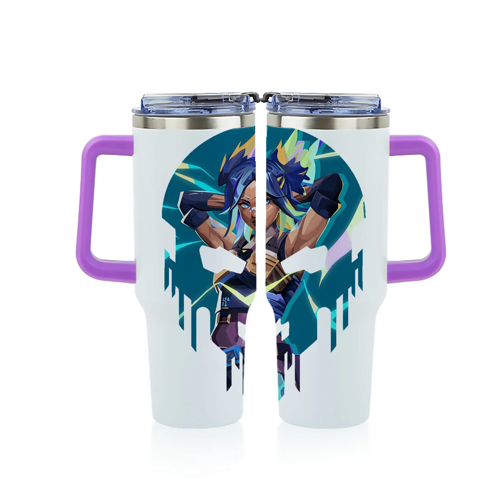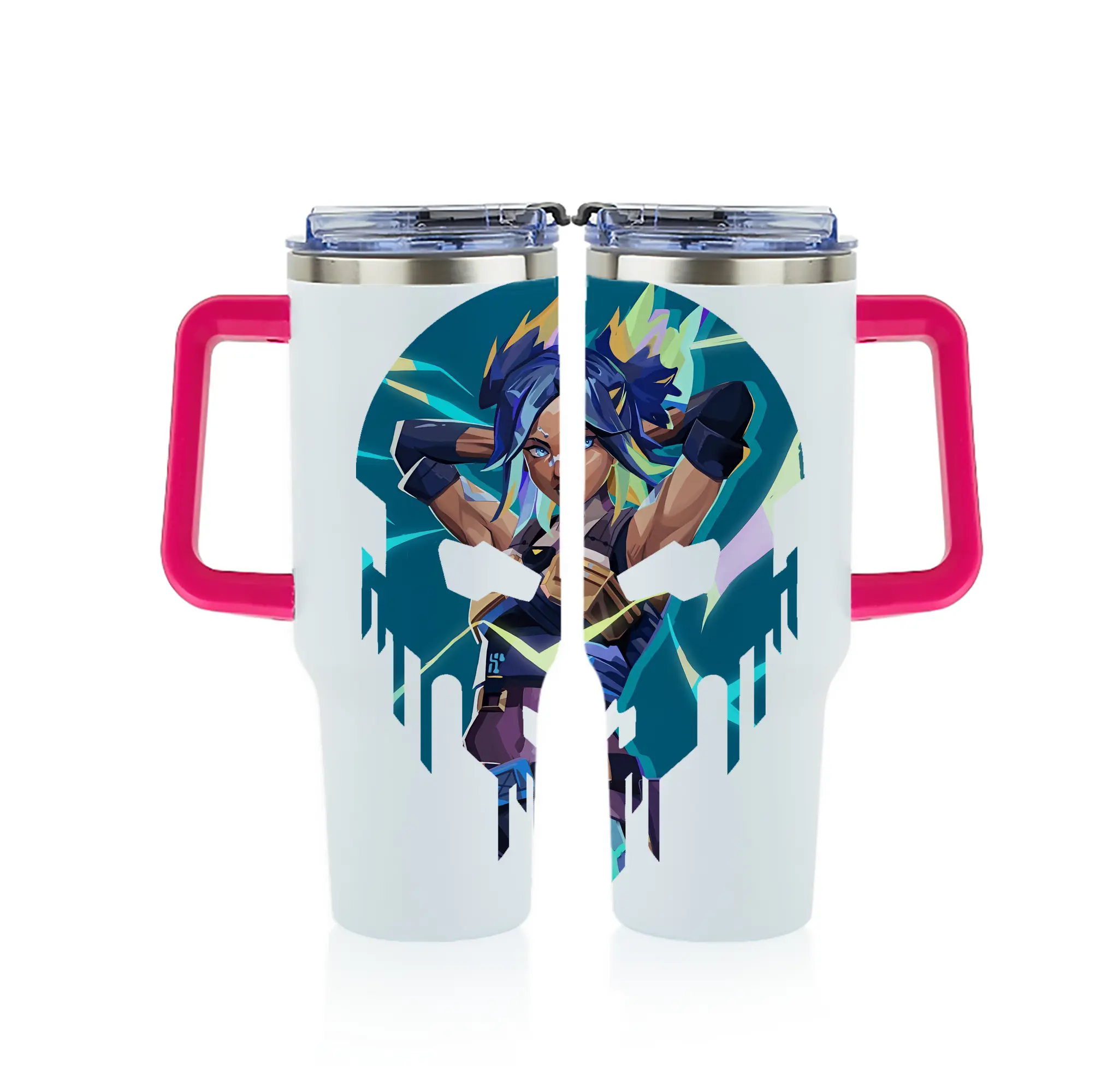 VALORANT グッズ,ネオン - 1200mL フルプリント車用タンブラー ・ 304ステンレス 内側 ・ 201ステンレス 外側 ・ 保温 保冷 ・ 通勤 ドライブ アウトドア用