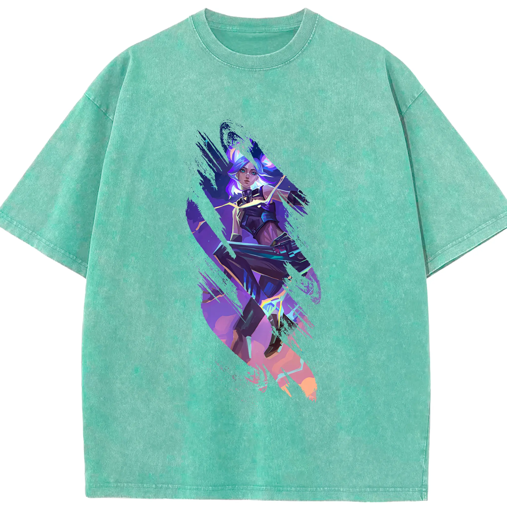 VALORANT グッズ,ネオン - 綿100% ヴィンテージ風 半袖Tシャツ ・ 背面プリント ・ 柔らか肌触り ・ 通気性 快適 ・ スポーツ カジュアル 外出用