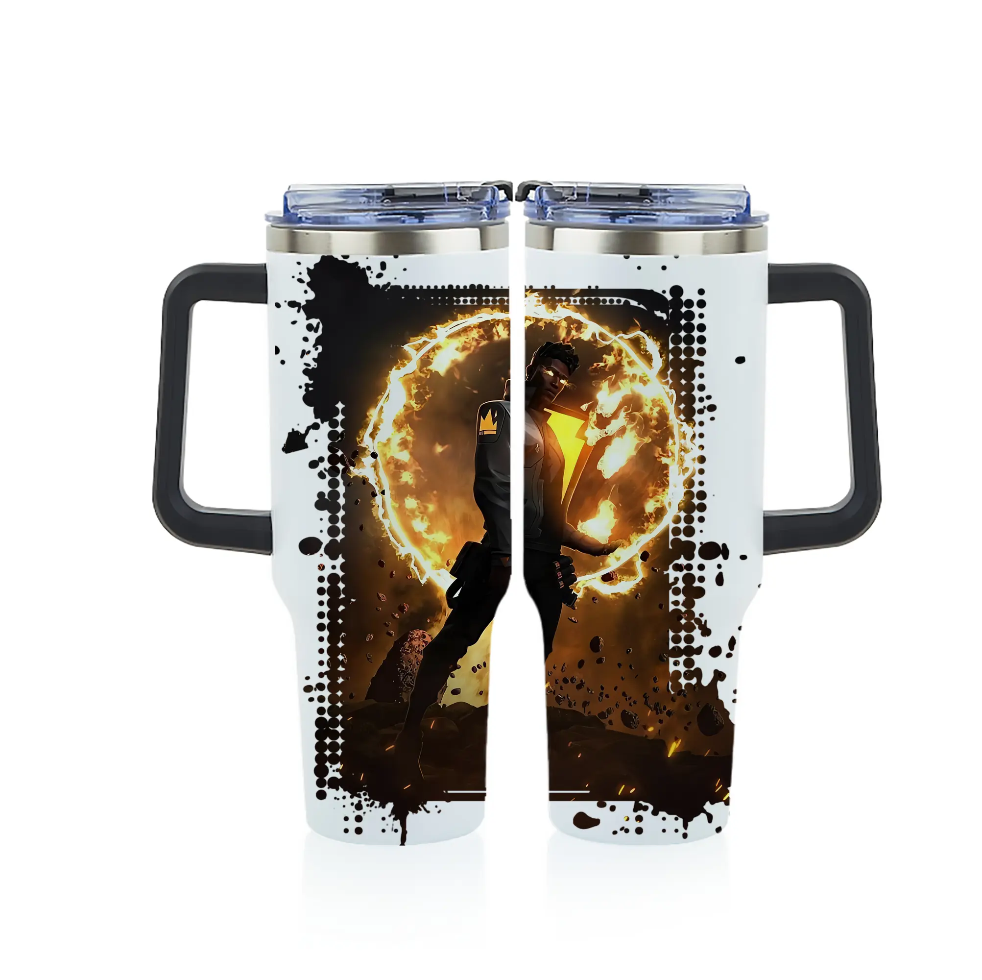 VALORANT グッズ,フェニックス - 1200mL フルプリント車用タンブラー ・ 304ステンレス 内側 ・ 201ステンレス 外側 ・ 保温 保冷 ・ 通勤 ドライブ アウトドア用
