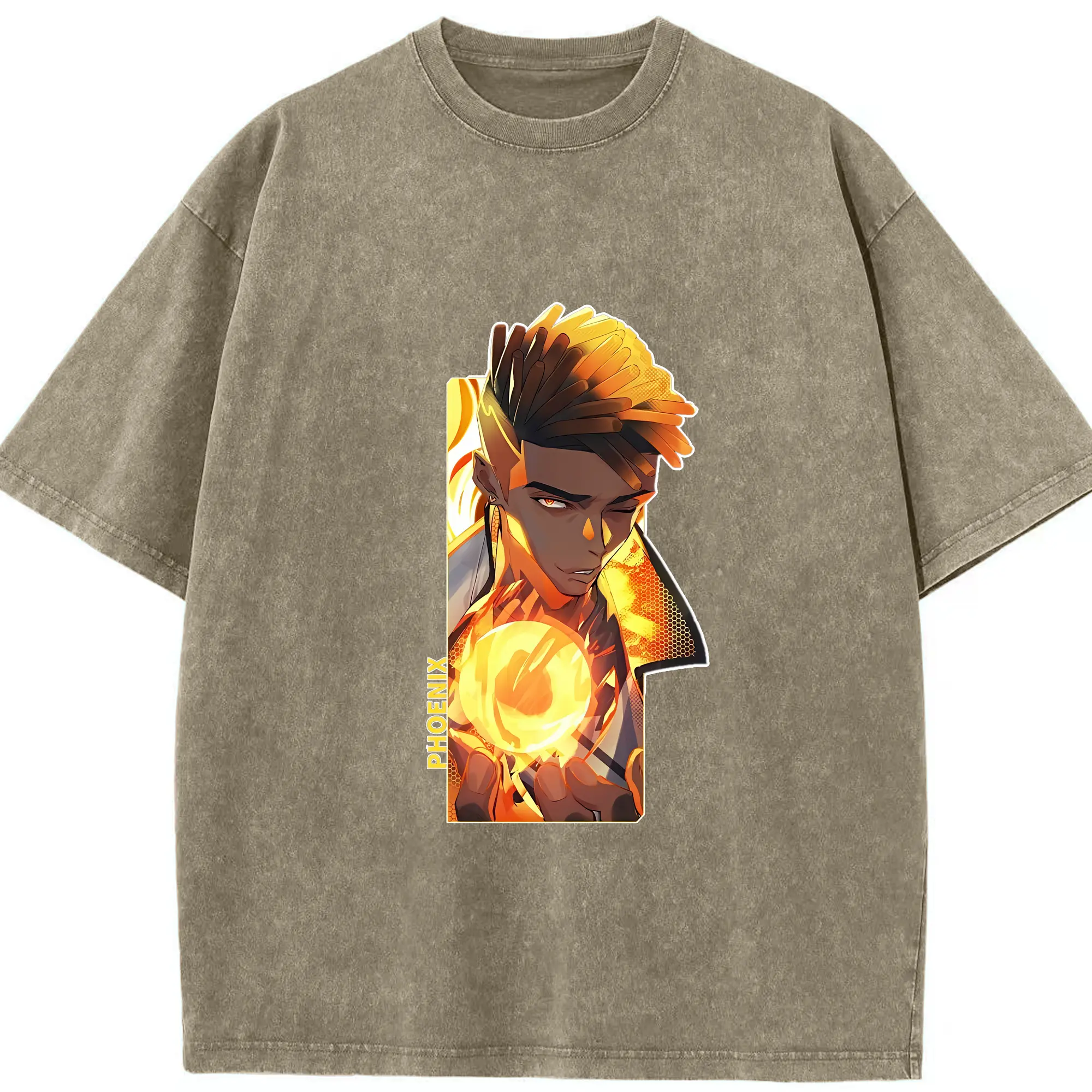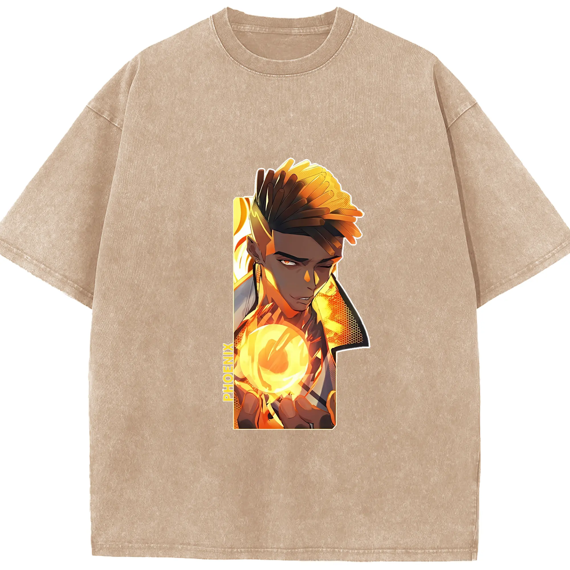 VALORANT グッズ,フェニックス - 綿100% ヴィンテージ風 半袖Tシャツ ・ 背面プリント ・ 柔らか肌触り ・ 通気性 快適 ・ スポーツ カジュアル 外出用
