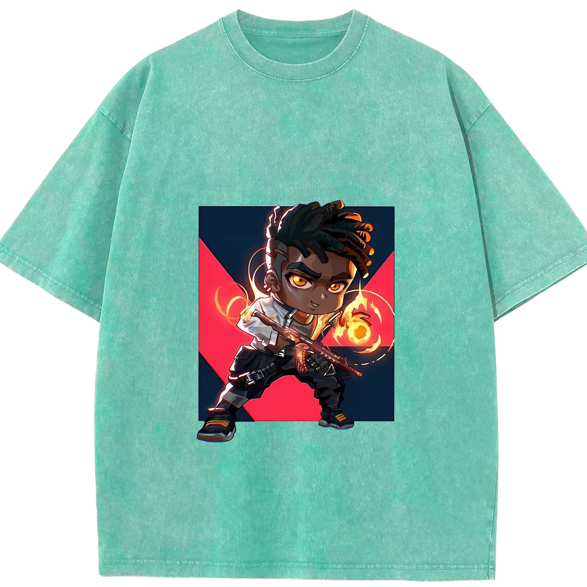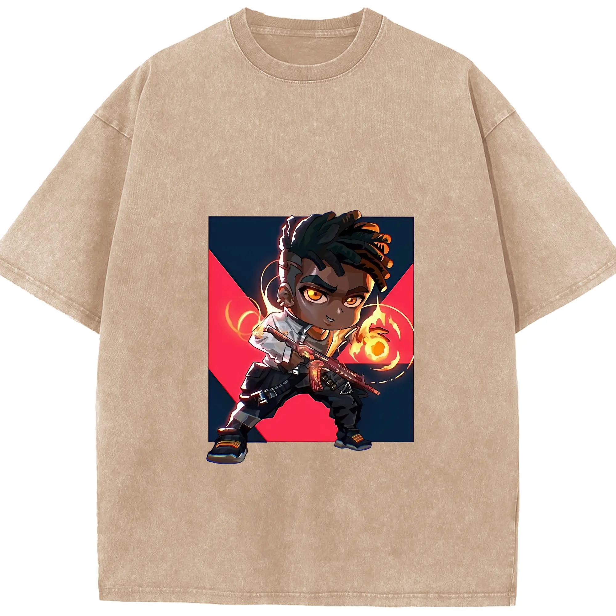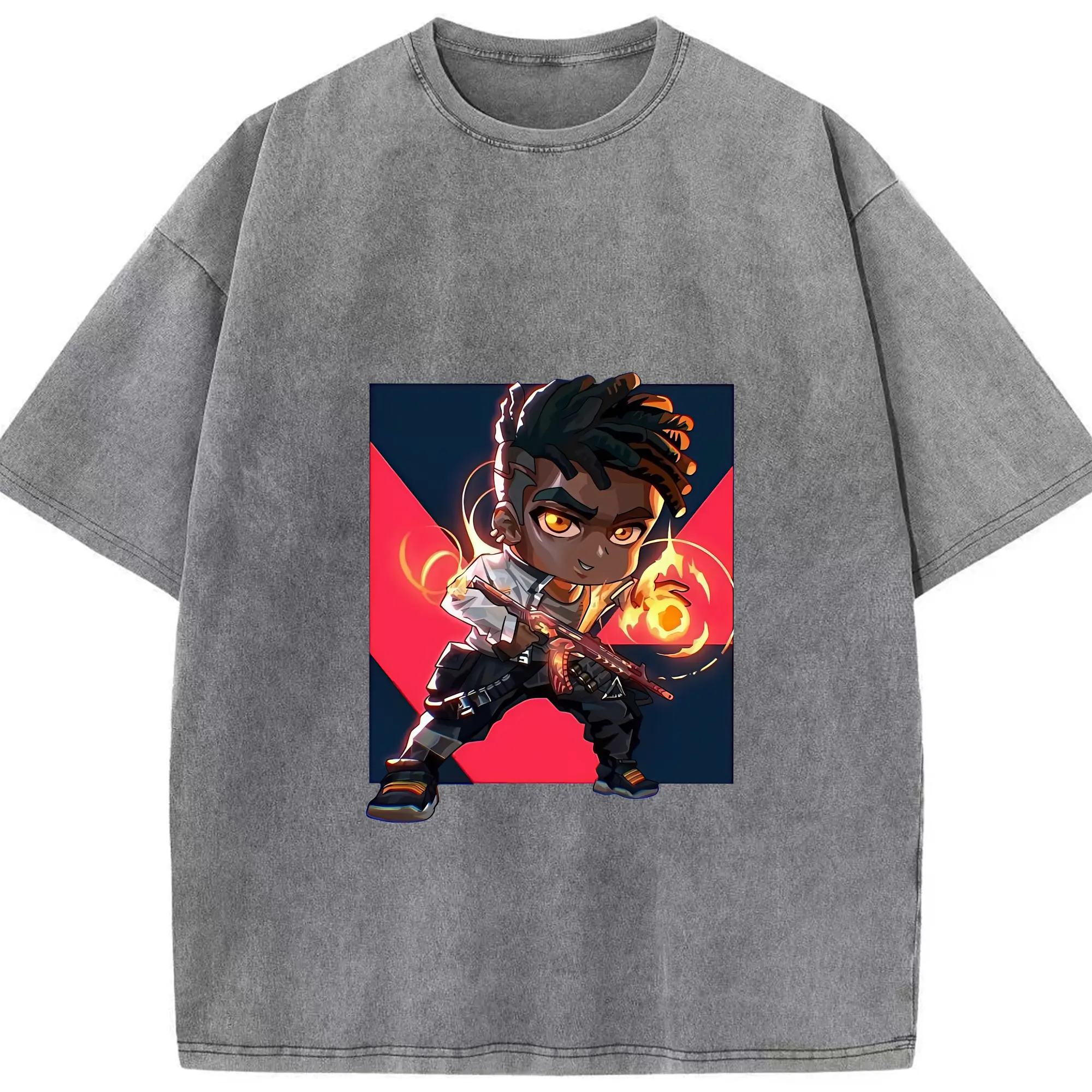 VALORANT グッズ,フェニックス - 綿100% ヴィンテージ風 半袖Tシャツ ・ 背面プリント ・ 柔らか肌触り ・ 通気性 快適 ・ スポーツ カジュアル 外出用