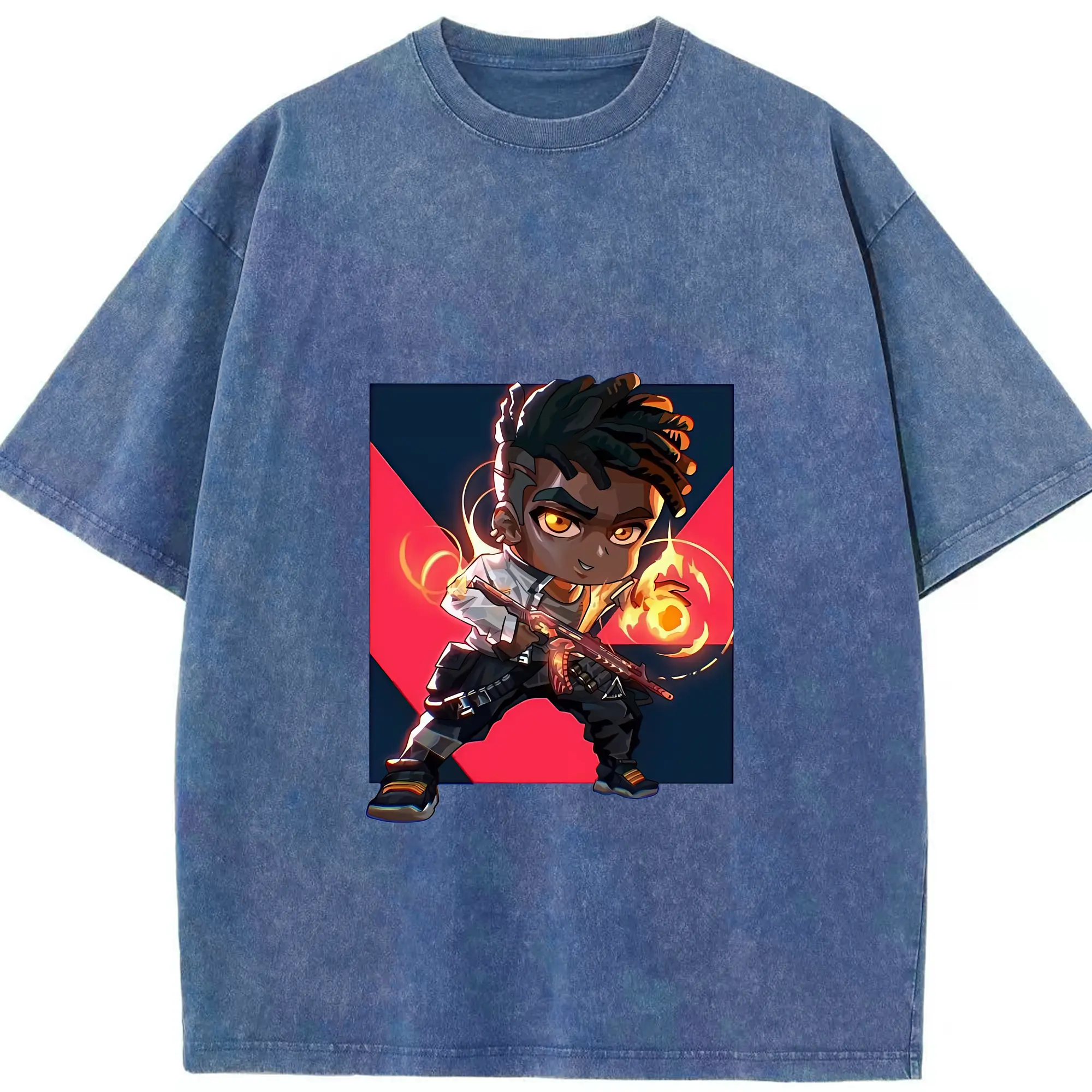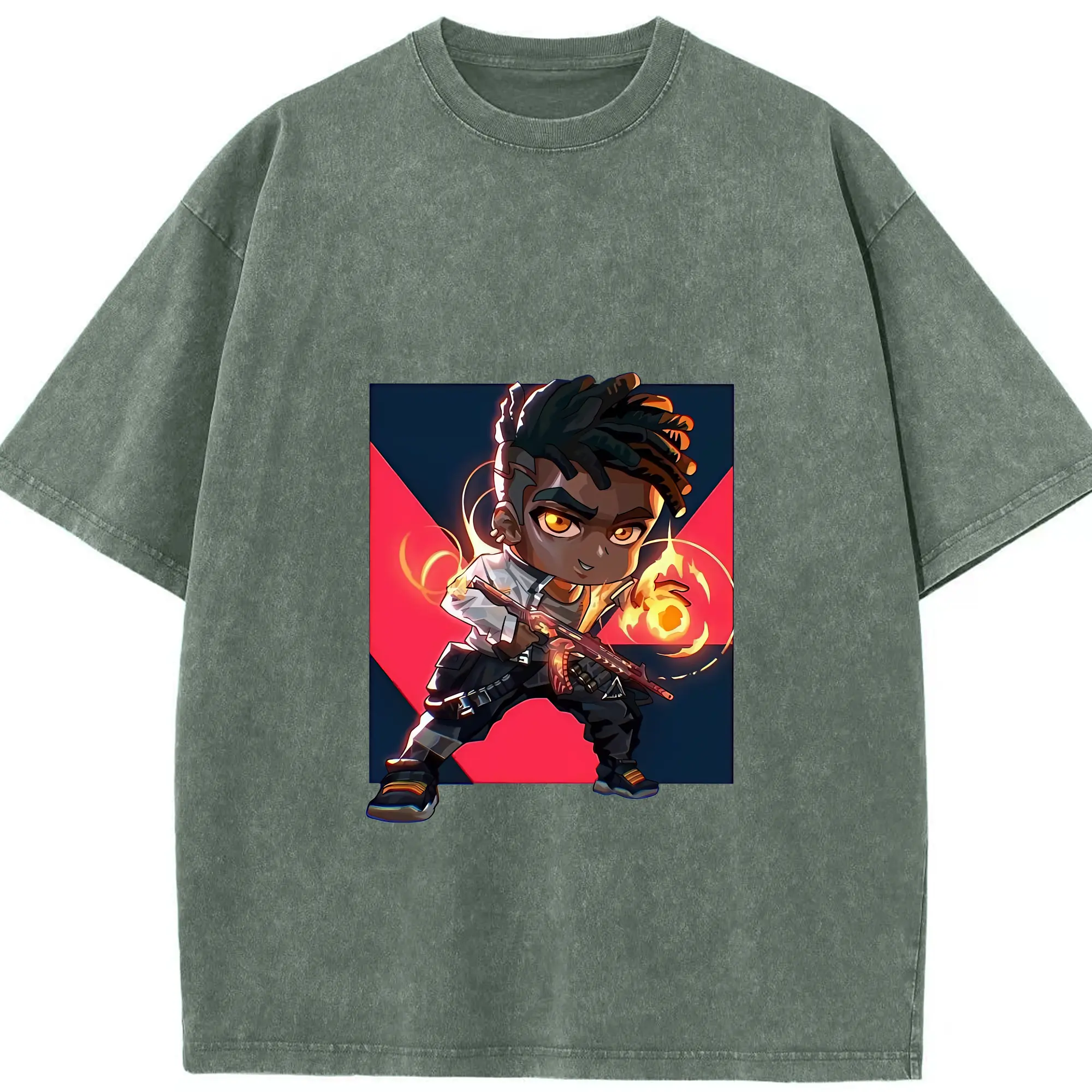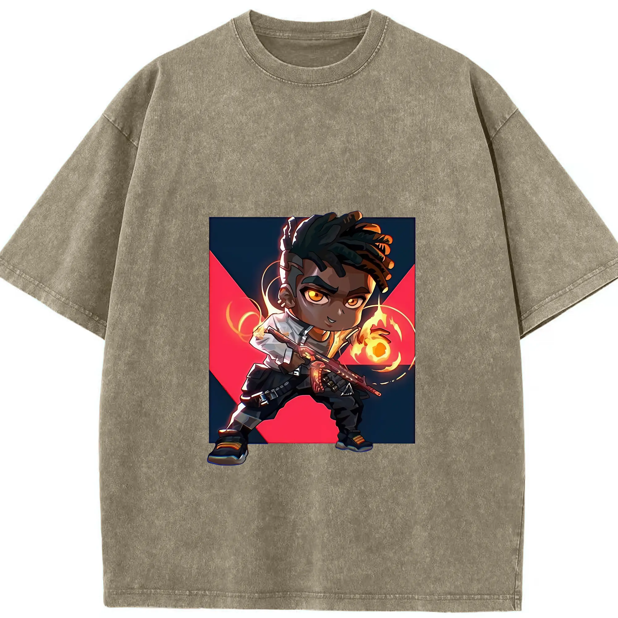 VALORANT グッズ,フェニックス - 綿100% ヴィンテージ風 半袖Tシャツ ・ 背面プリント ・ 柔らか肌触り ・ 通気性 快適 ・ スポーツ カジュアル 外出用