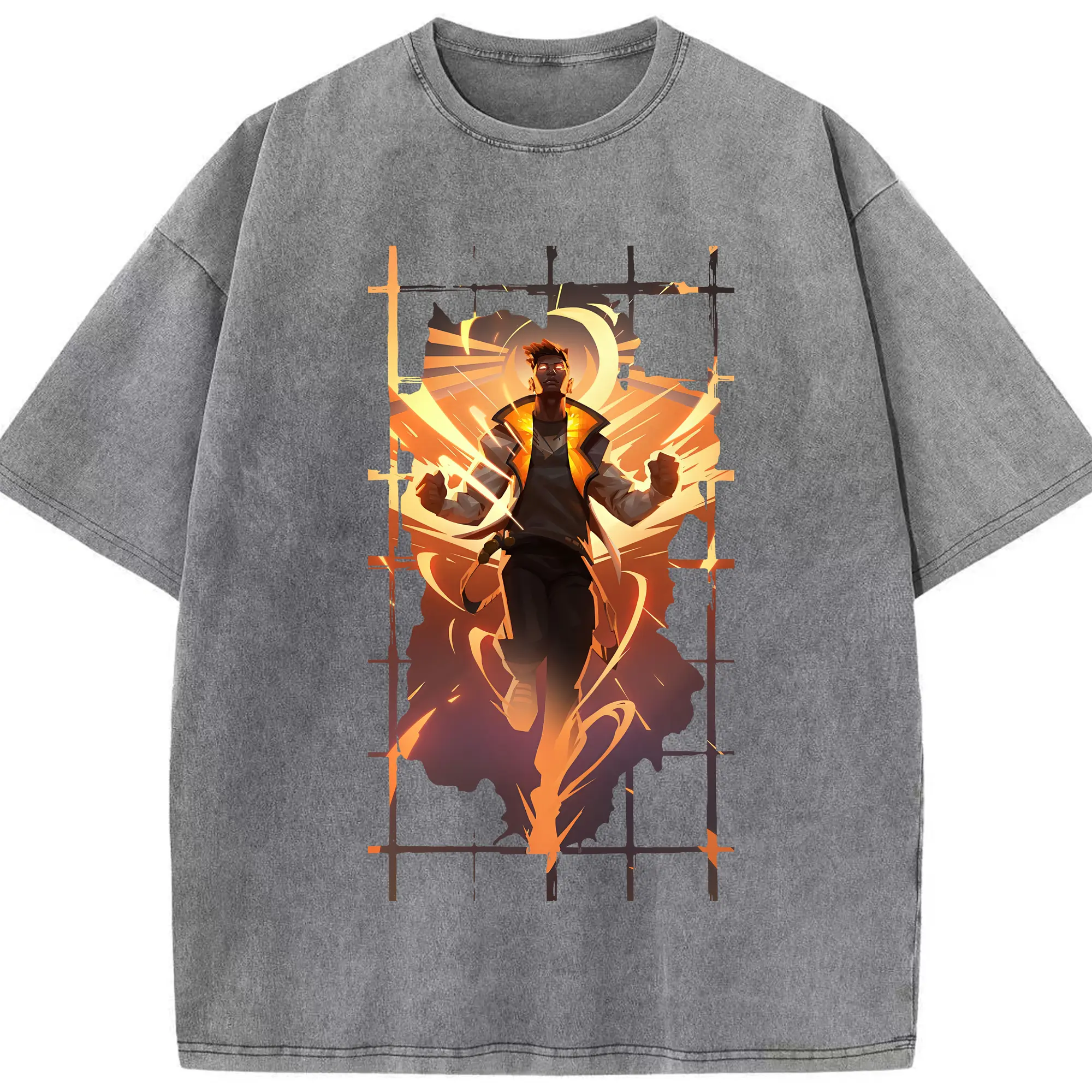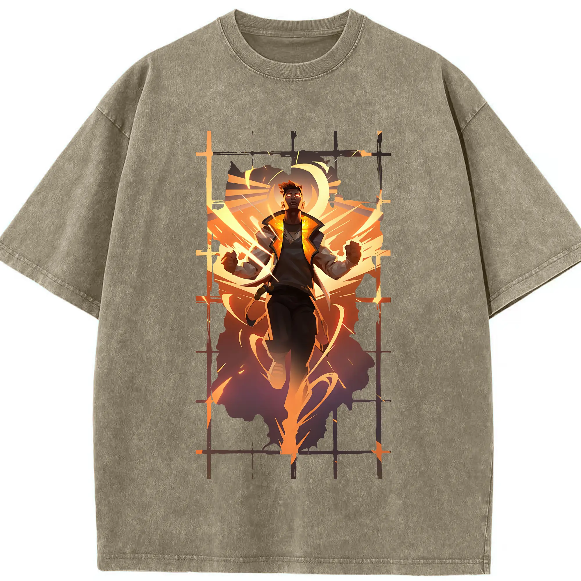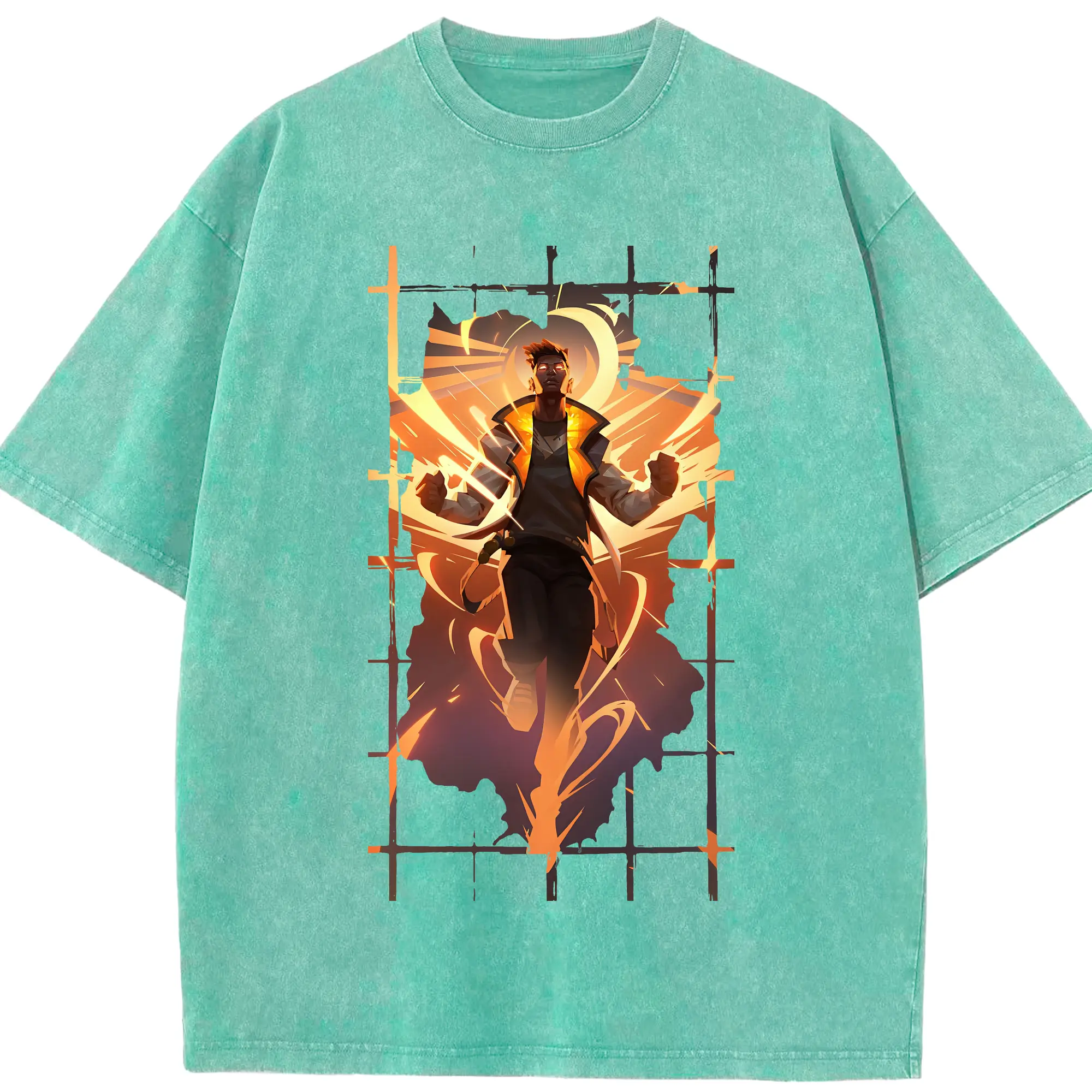 VALORANT グッズ,フェニックス - 綿100% ヴィンテージ風 半袖Tシャツ ・ 背面プリント ・ 柔らか肌触り ・ 通気性 快適 ・ スポーツ カジュアル 外出用