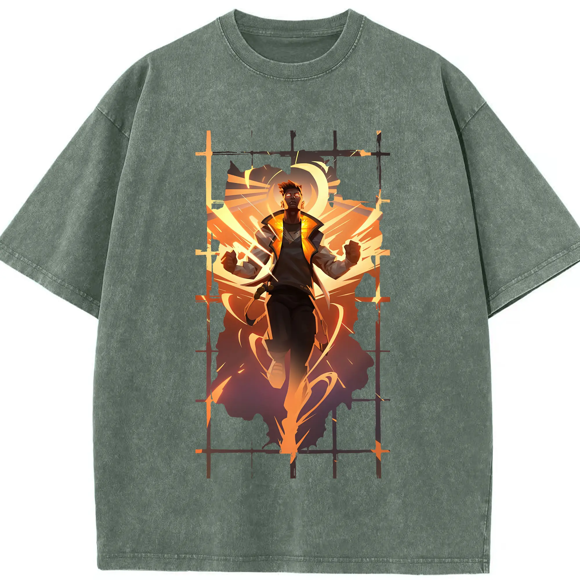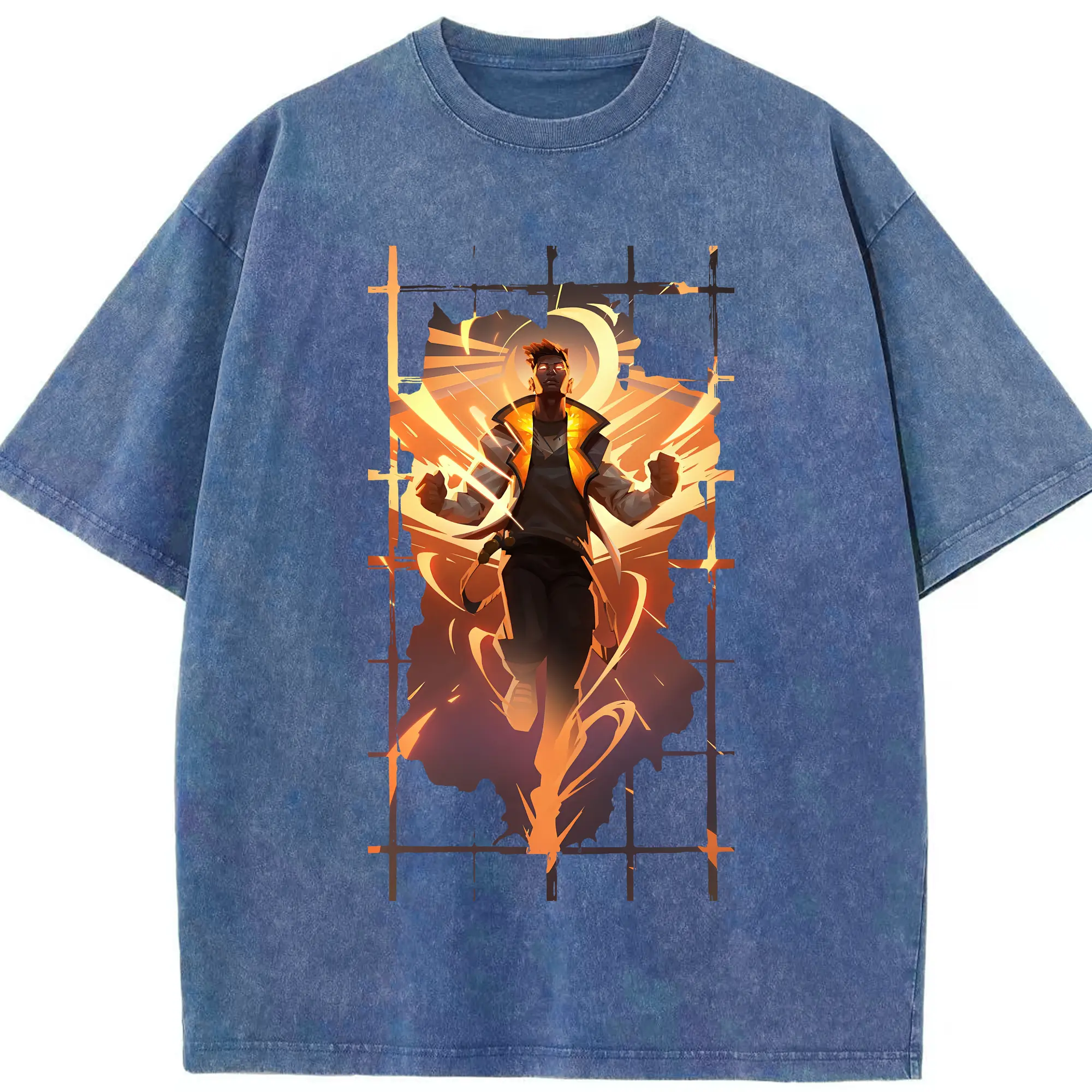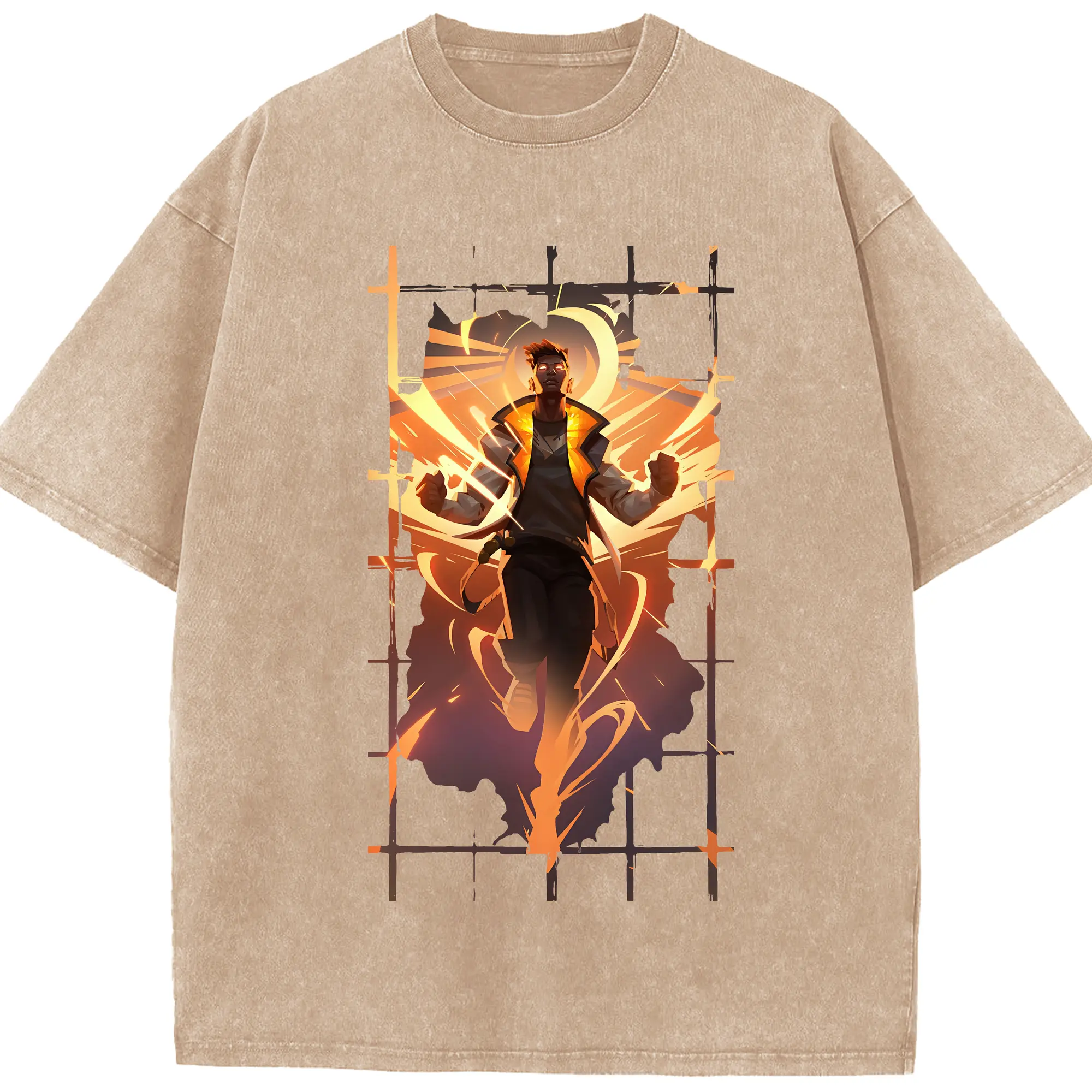 VALORANT グッズ,フェニックス - 綿100% ヴィンテージ風 半袖Tシャツ ・ 背面プリント ・ 柔らか肌触り ・ 通気性 快適 ・ スポーツ カジュアル 外出用