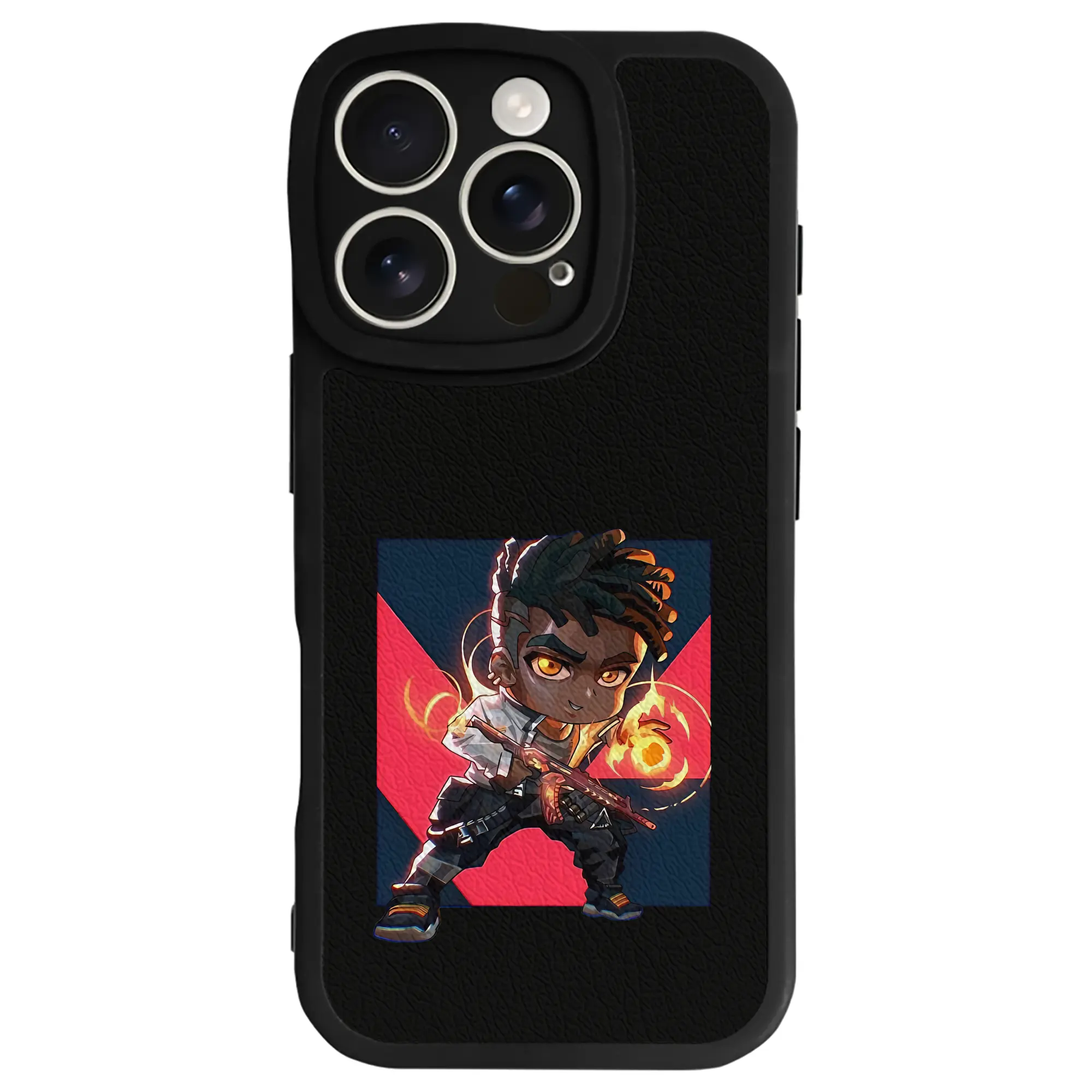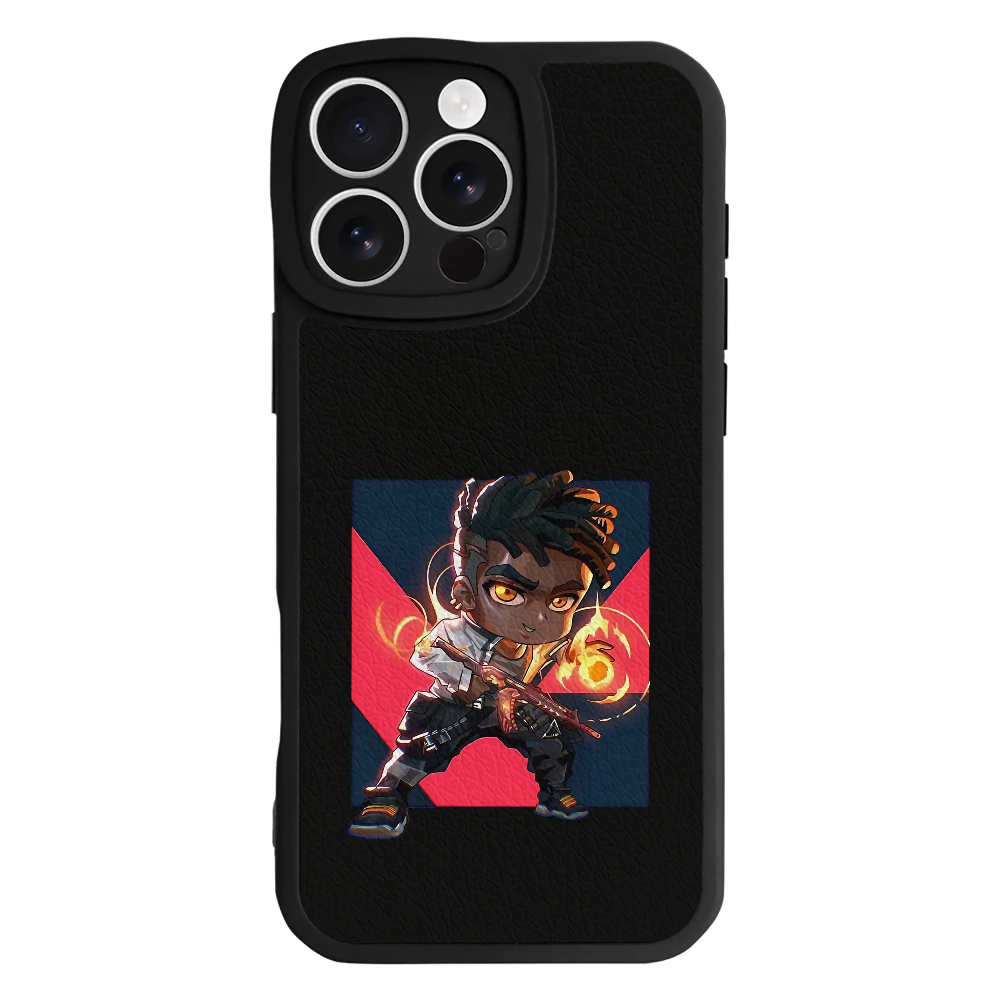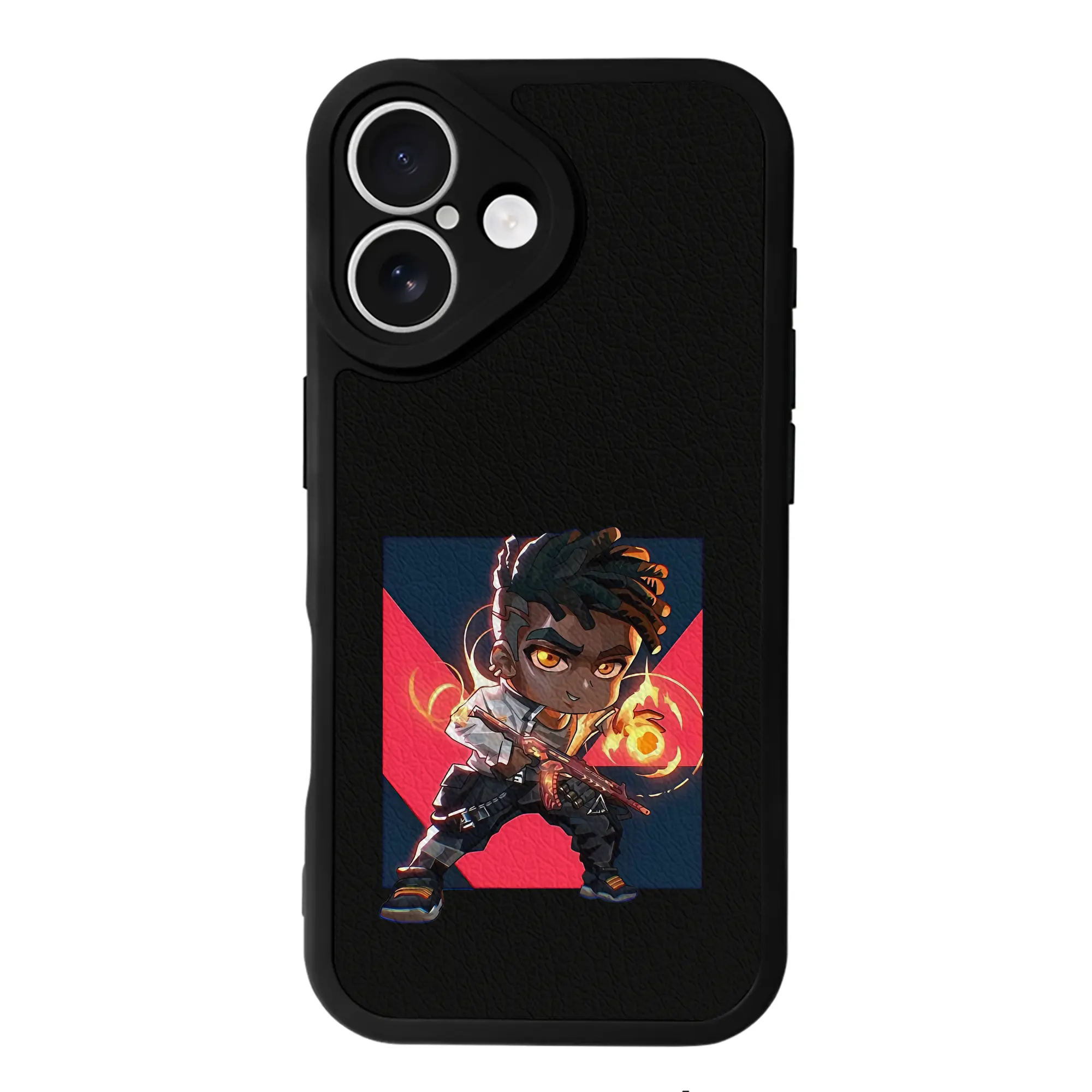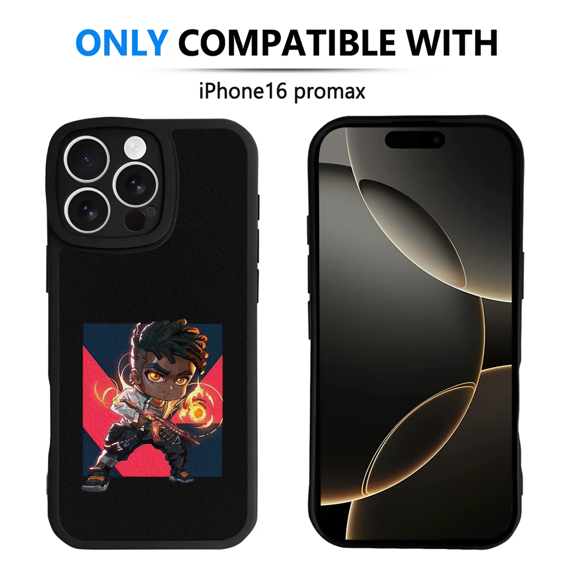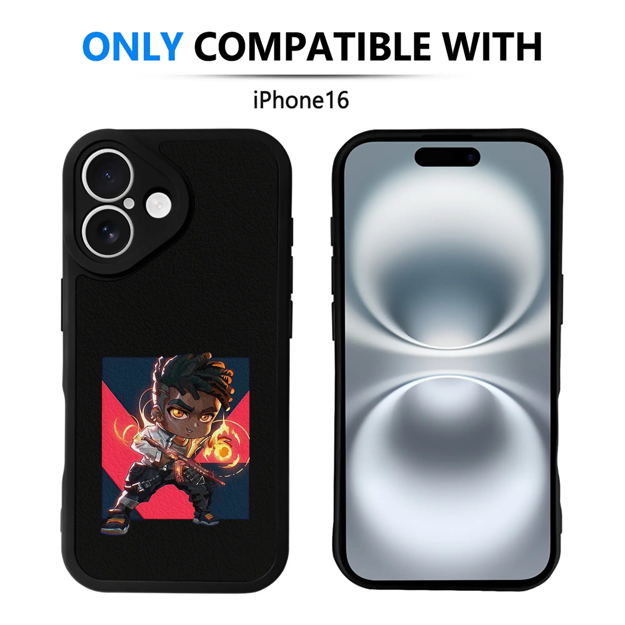 VALORANT グッズ,フェニックス - IPhone 16シリーズ対応 ・ シリコンスマホケース ・ レザー調 ・ 高精度フィット ・ 耐衝撃 ・ ワイヤレス充電対応 ・ 精密カット