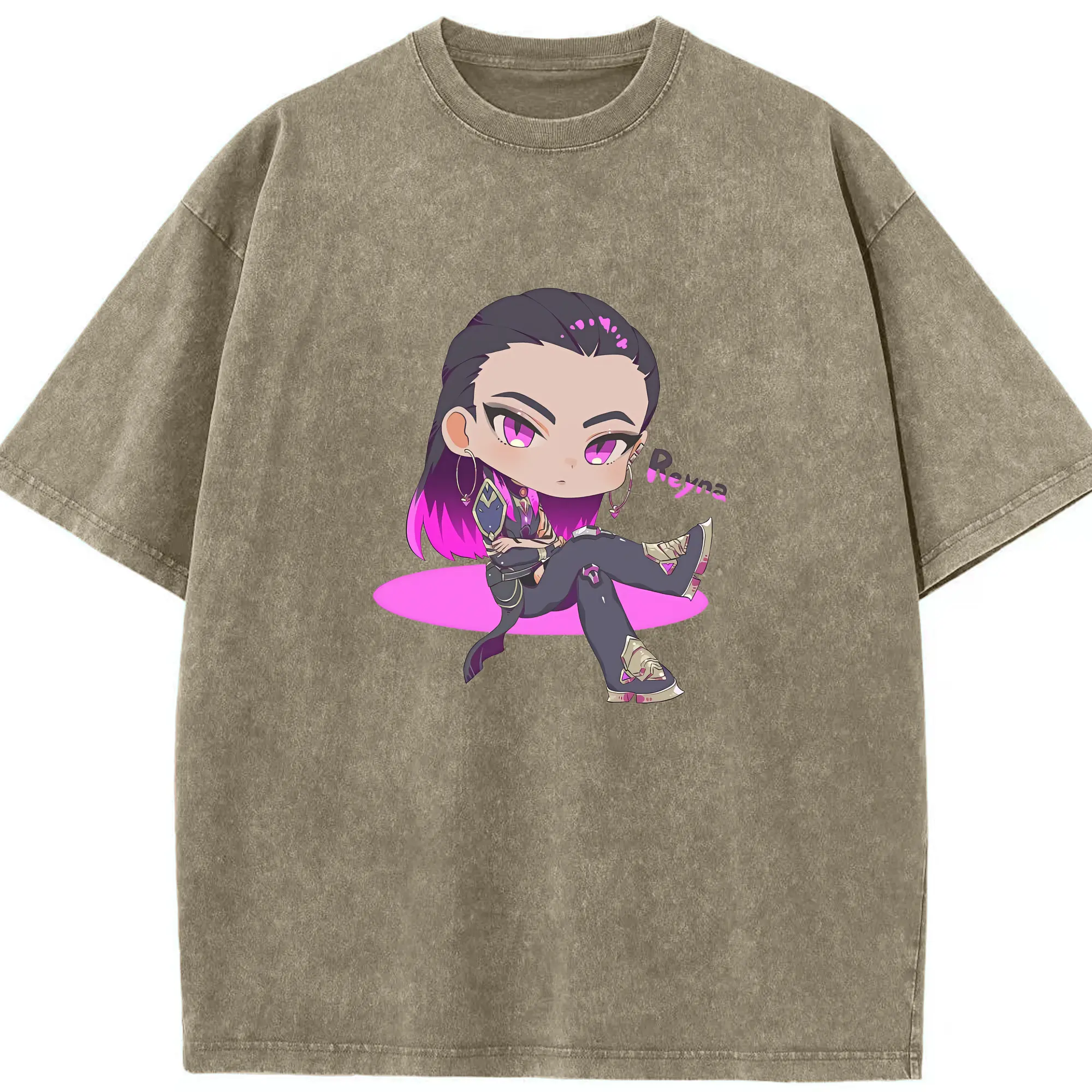 VALORANT グッズ,レイナ - 綿100% ヴィンテージ風 半袖Tシャツ ・ 背面プリント ・ 柔らか肌触り ・ 通気性 快適 ・ スポーツ カジュアル 外出用