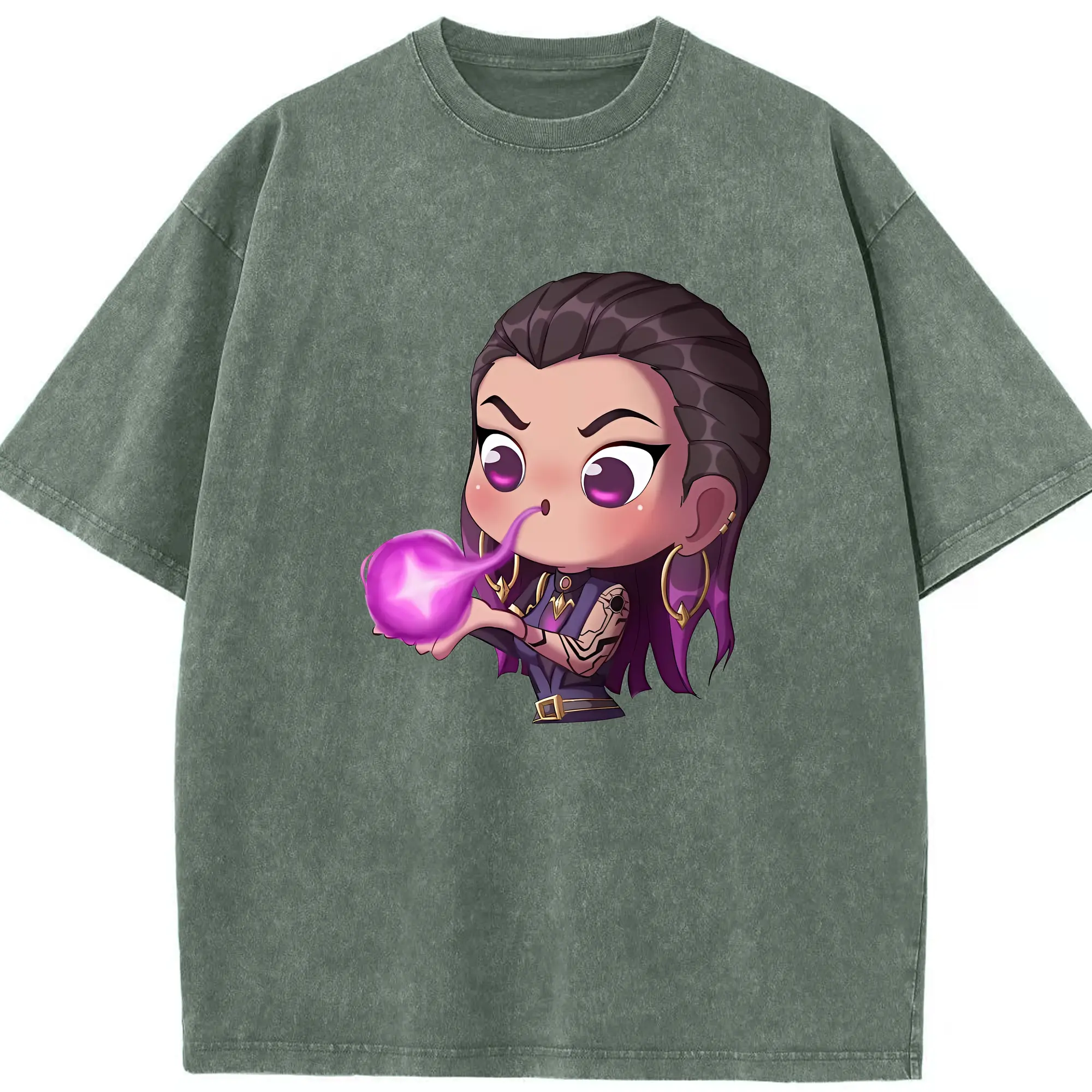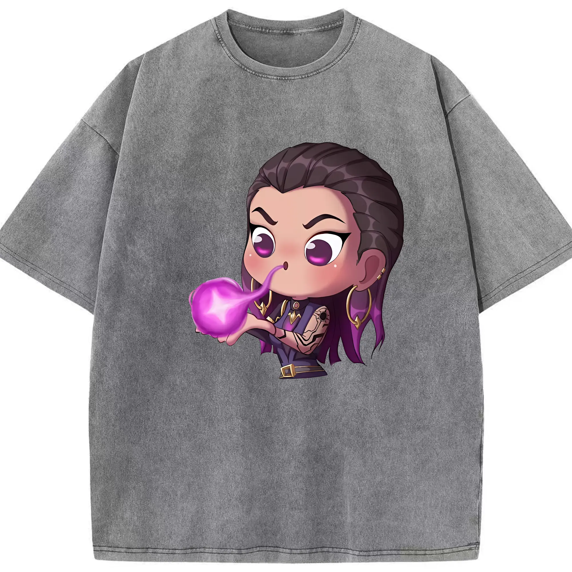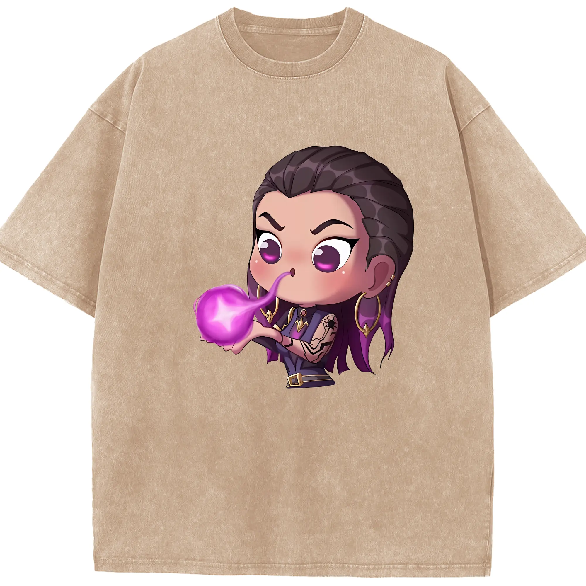 VALORANT グッズ,レイナ - 綿100% ヴィンテージ風 半袖Tシャツ ・ 背面プリント ・ 柔らか肌触り ・ 通気性 快適 ・ スポーツ カジュアル 外出用