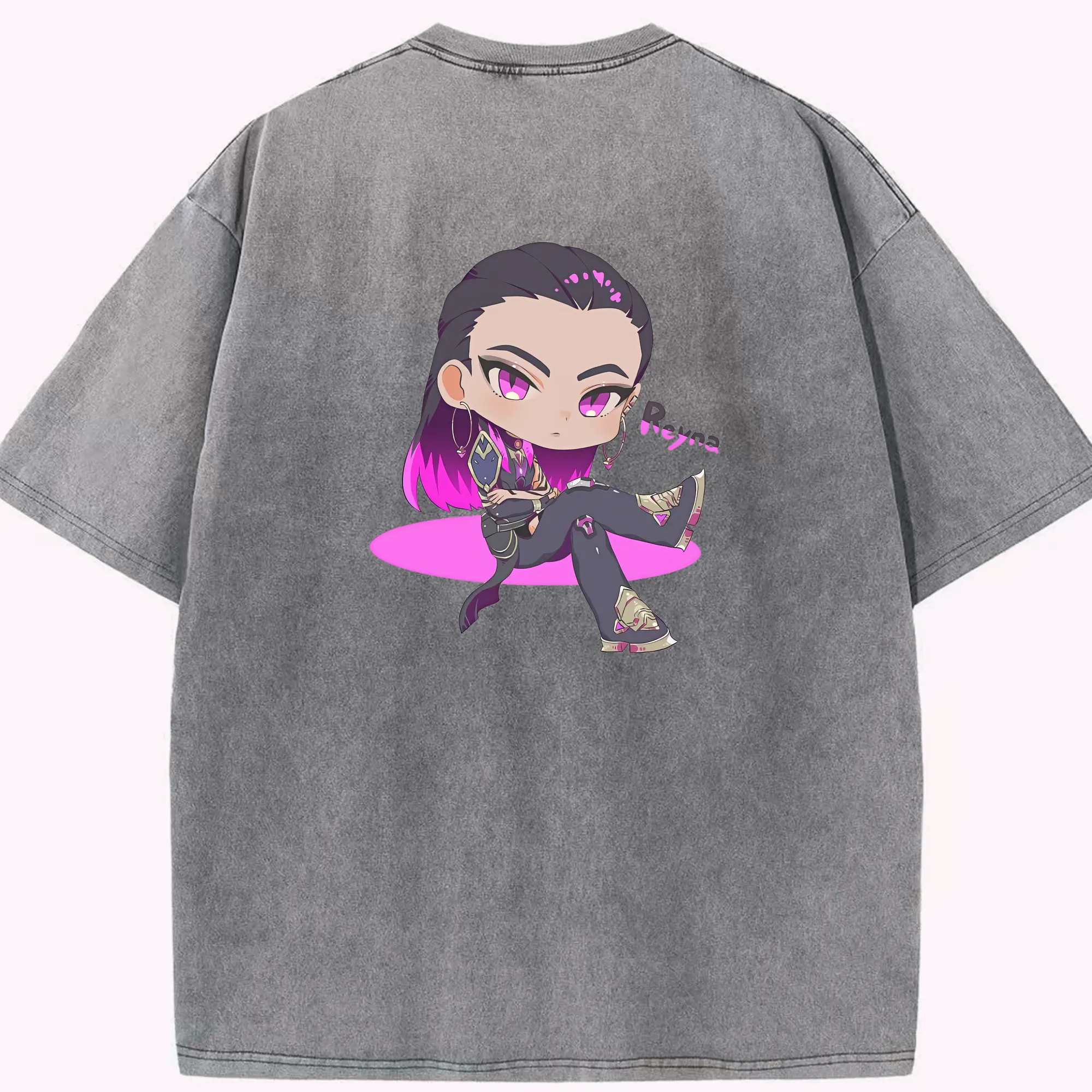VALORANT グッズ,レイナ - 綿100% ヴィンテージ風 半袖Tシャツ ・ フロントプリント ・ 柔らか肌触り ・ 通気性 快適 ・ スポーツ カジュアル 外出用